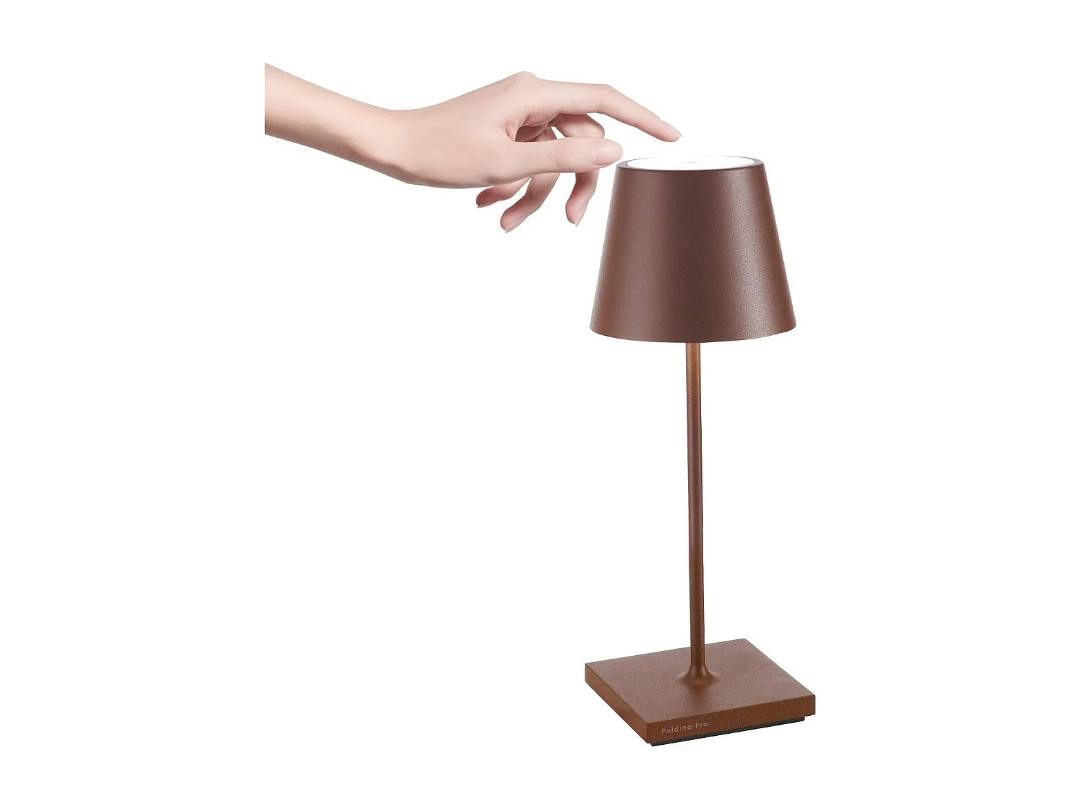 Lampa stołowa LED Zafferano Poldina Pro Mini Corten z możliwością ładowania i ściemniania, z czasem pracy baterii do 12 godzin