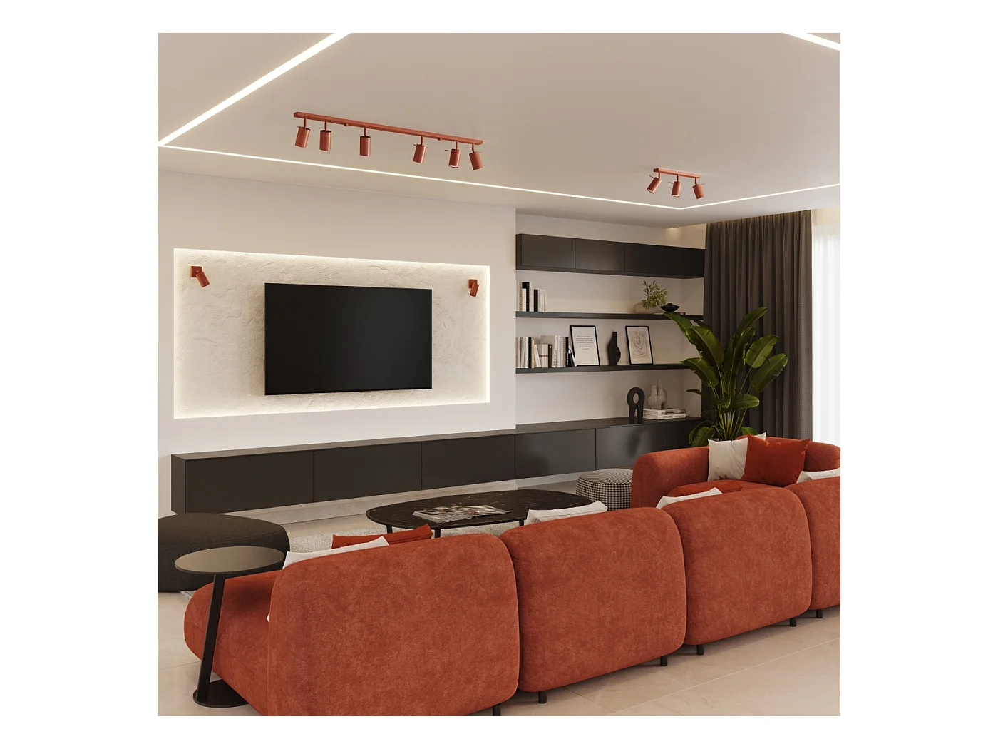 Lampa sufitowa nowoczesny Briix, stal - 6 źródło światła 4000K - L.117 x H.17 cm - ochra czerwona