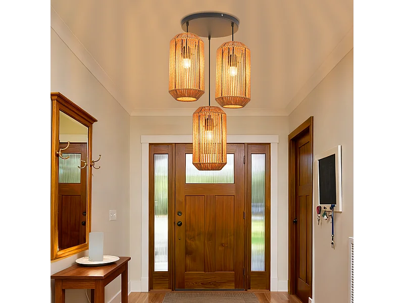 Lampa wisząca Nettlife Boho Rattan na stół jadalny – 3 żarówki E27, regulowana wysokość, styl retro, do salonu/sypialni (żarówki nie są dołączone)
