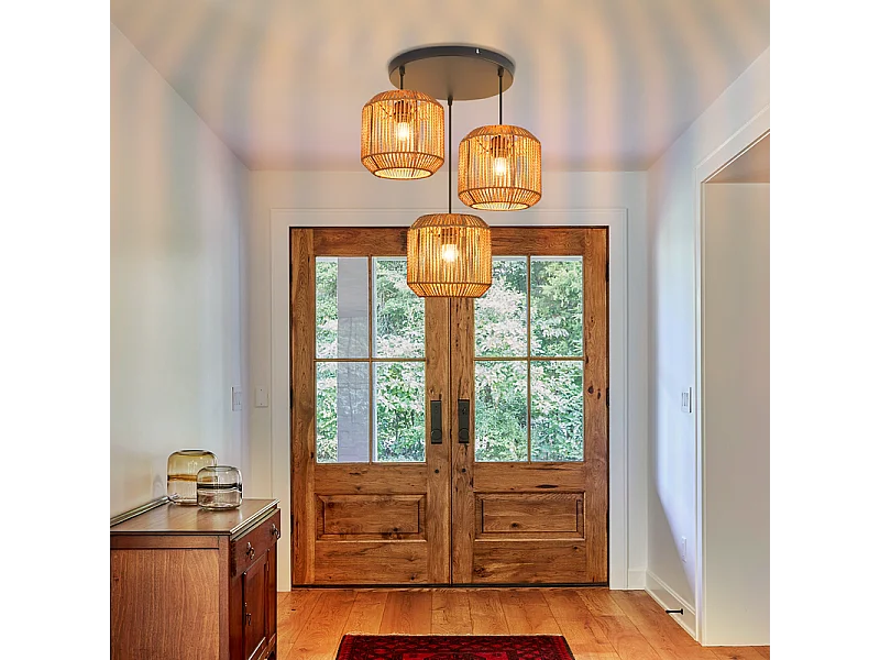 Lampa wisząca Nettlife Boho Rattan na stół jadalny – 3 żarówki E27, regulowana wysokość, styl retro, do salonu/sypialni (żarówki nie są dołączone)