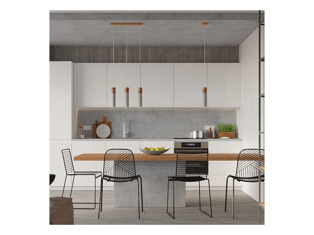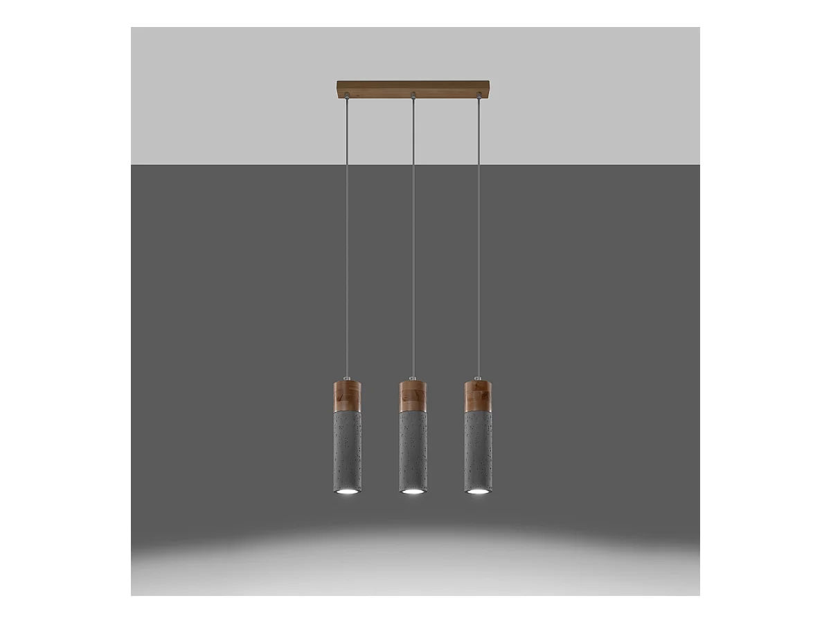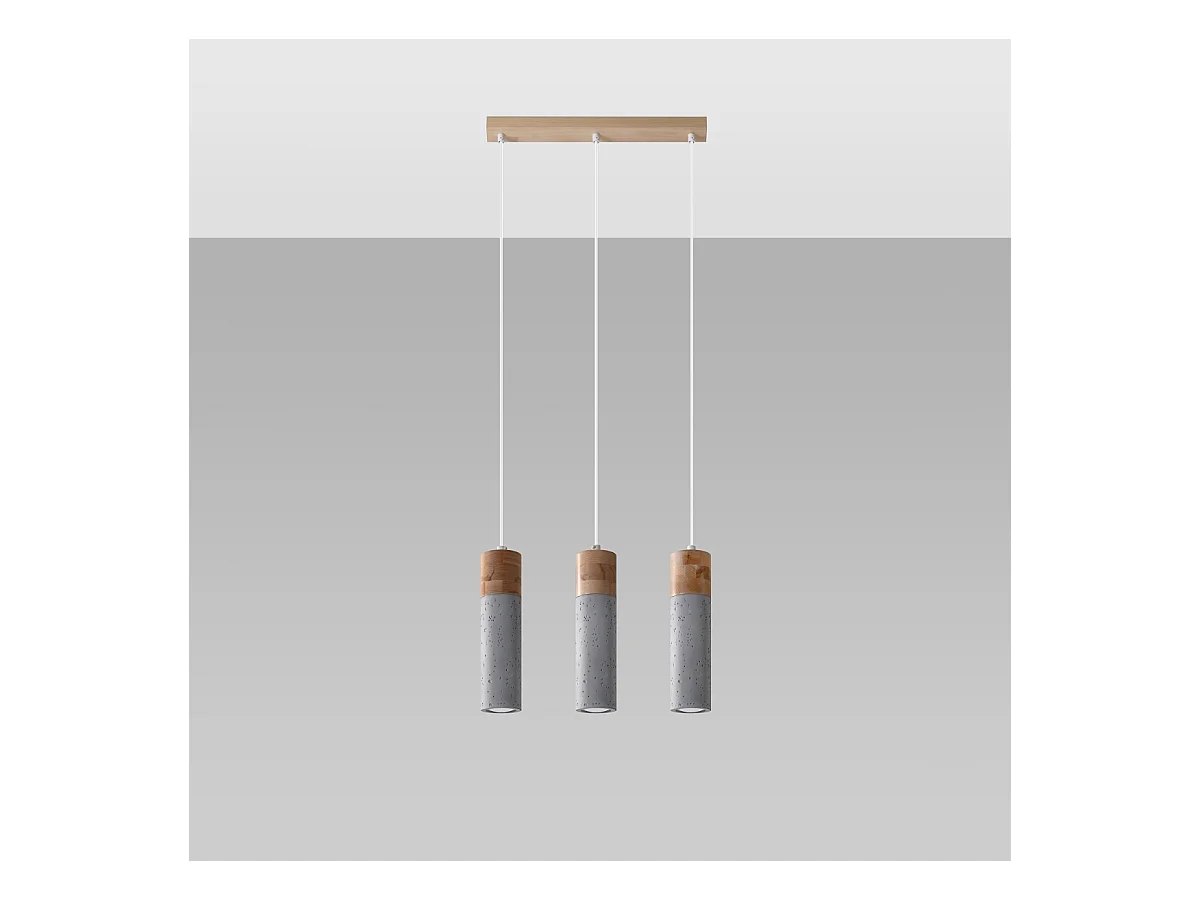 Lampy wiszące industrialny Avier, beton - 3 źródło światła 4000K - L.45 x H.120 cm - szary/naturalne drewno