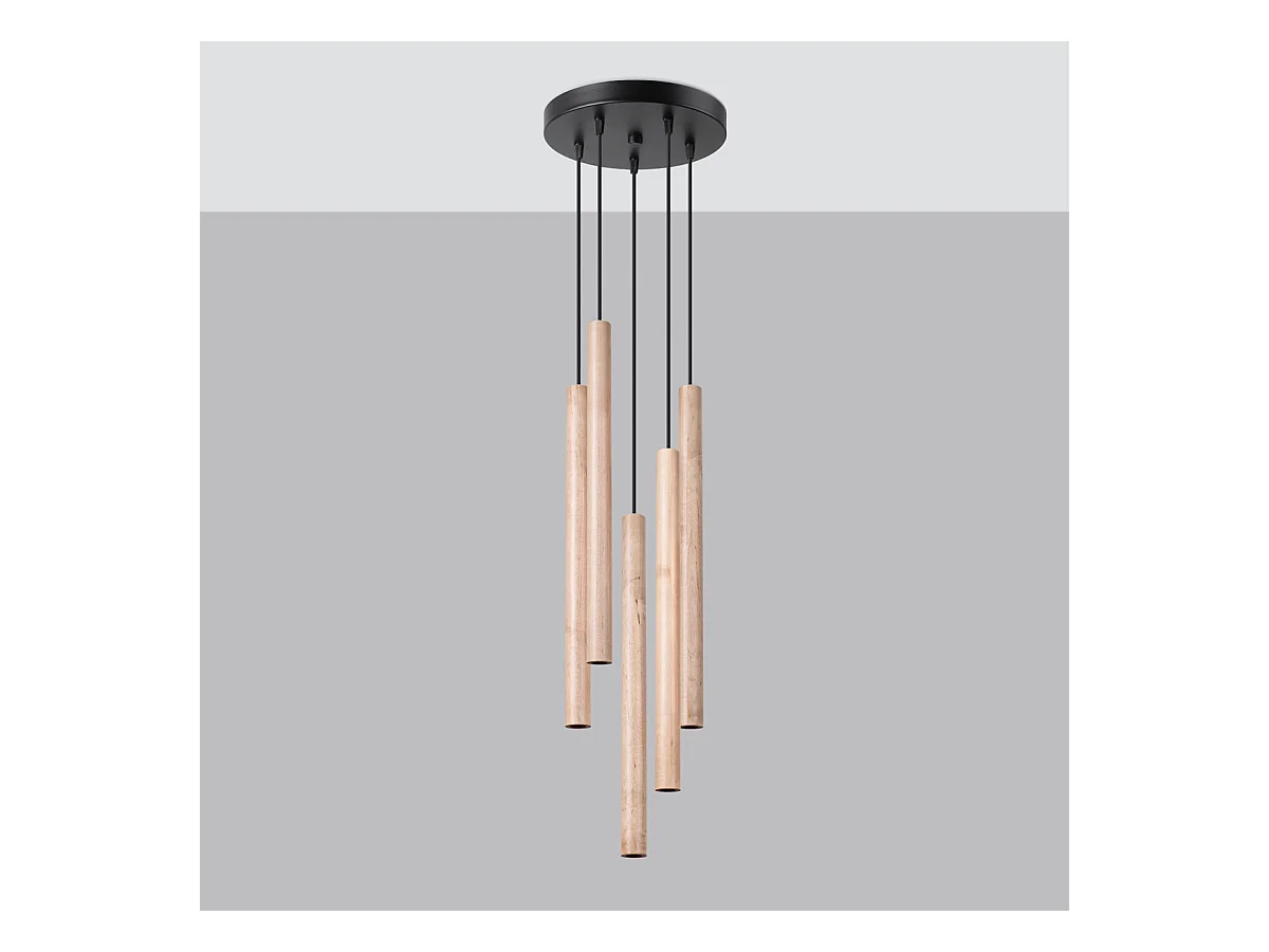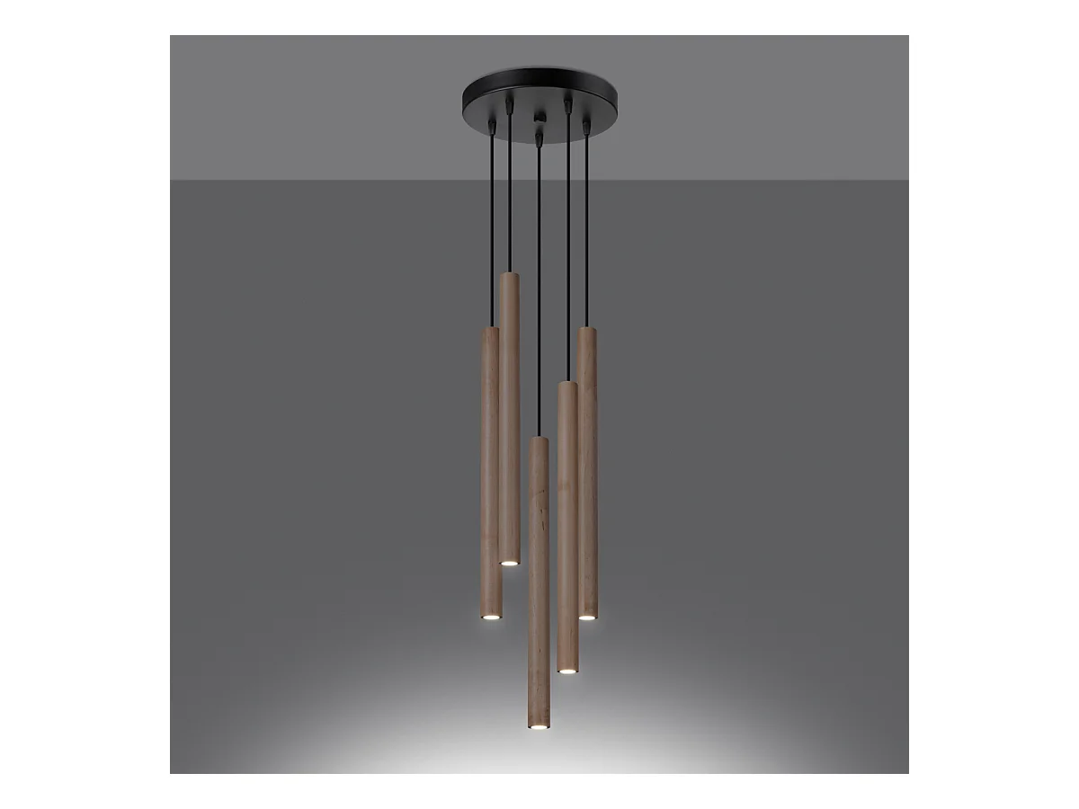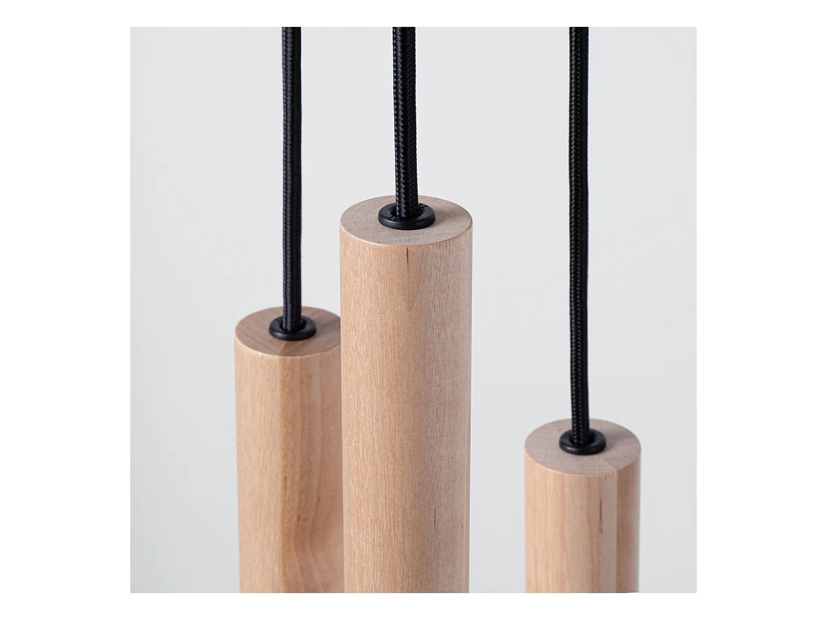 Lampy wiszące nowoczesny Brill, stal/drewno - 5 źródło światła 3000K - L.25 x H.110 cm - drewno