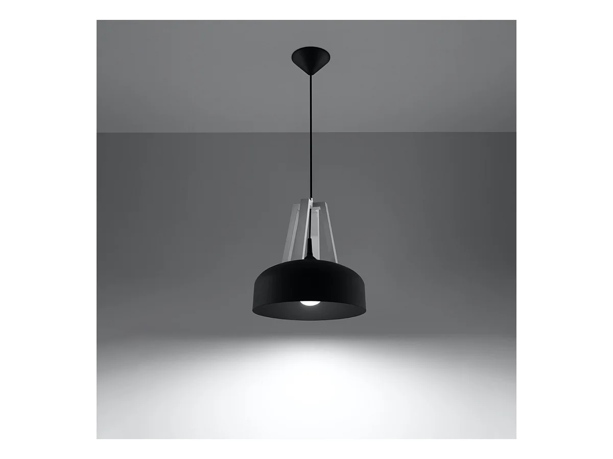 Lampy wiszące nowoczesny Solivo, stal/drewno - 1 źródło światła 3000K - L.30 x H.85 cm - czarny/biały