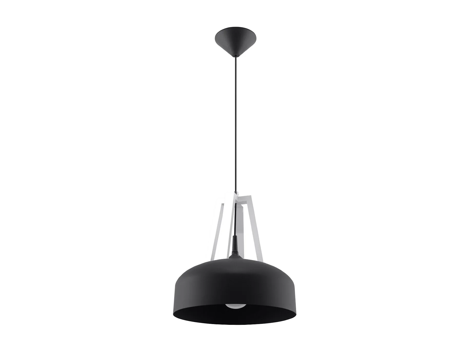 Lampy wiszące nowoczesny Solivo, stal/drewno - 1 źródło światła 4000K - L.30 x H.85 cm - czarny/biały