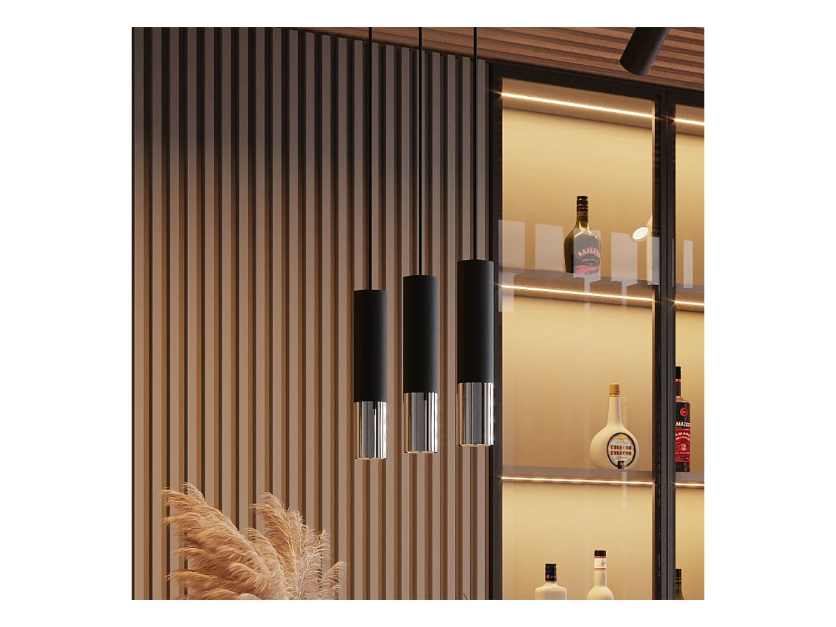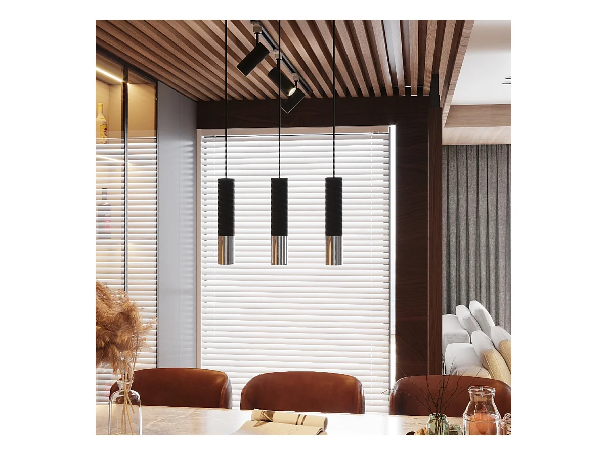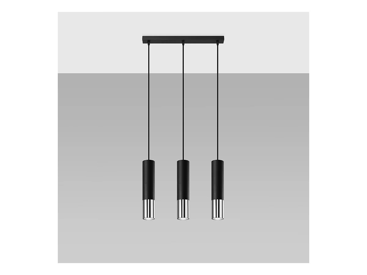 Lampy wiszące nowoczesny Zarpex, stal - 3 źródło światła 3000K - L.20 x H.90 cm - czarny/chrom