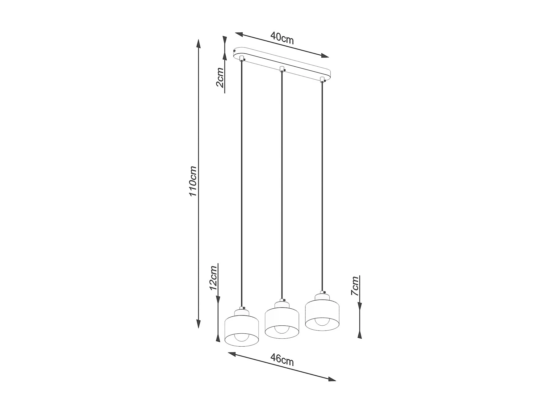 Lampy wiszące nowoczesny Zavros, stal - 3 źródło światła 4000K - L.46 x H.110 cm - czarny