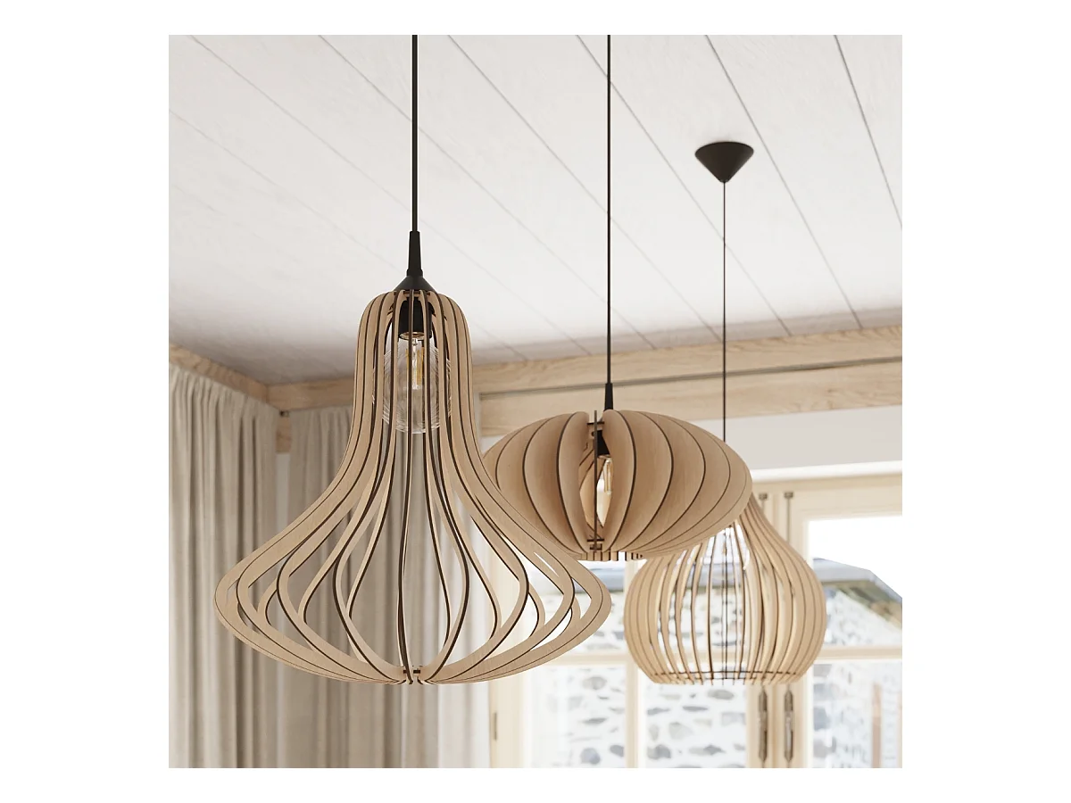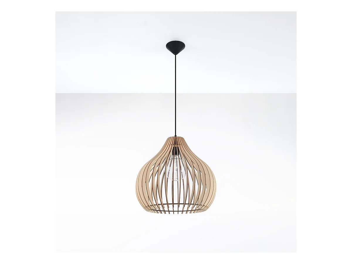 Lampy wiszące skandynawski Novidera, drewno - 1 źródło światła 3000K - L.40 x H.110 cm - naturalne drewno