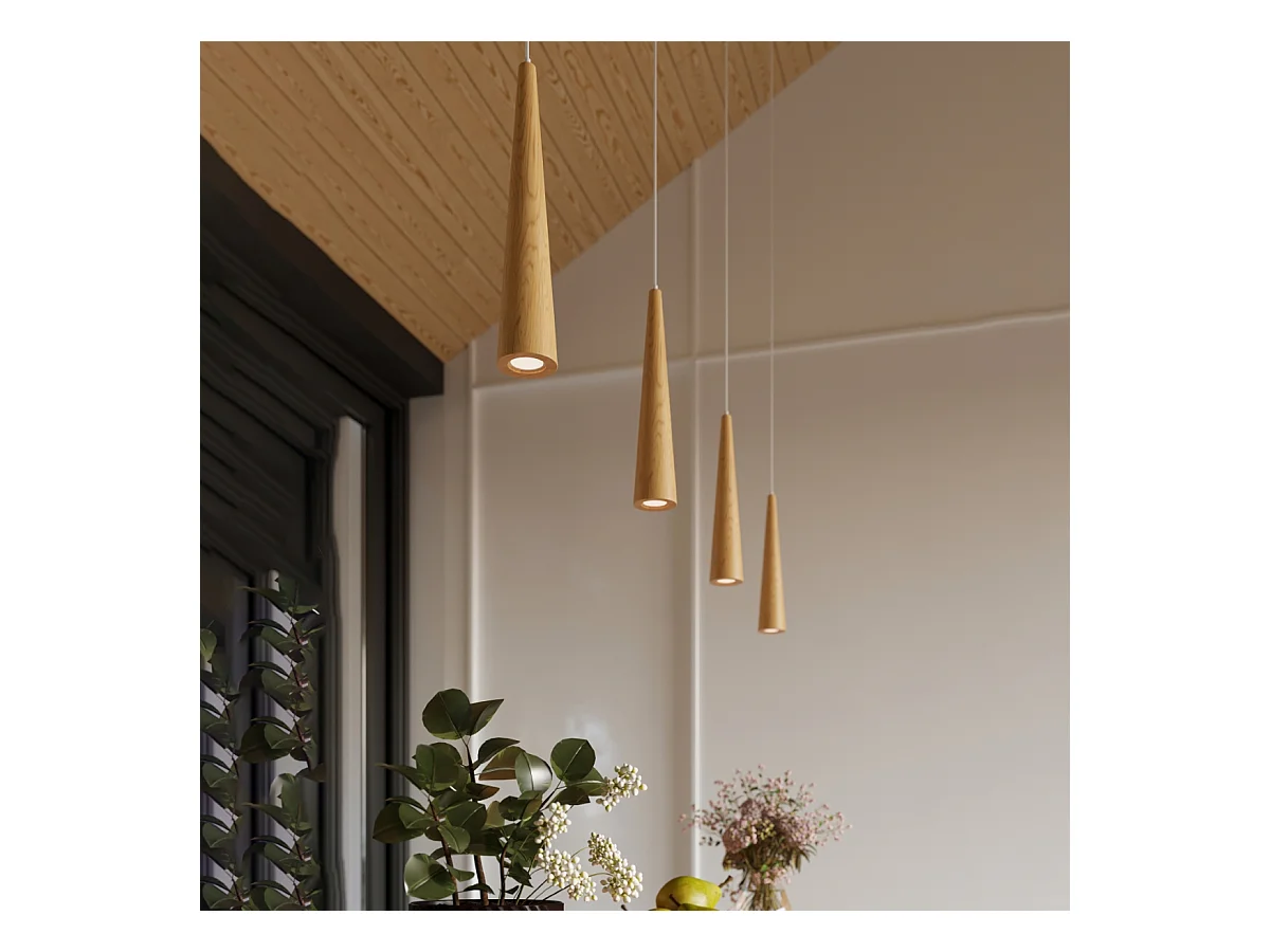 Lampy wiszące skandynawski Ravo, drewno - 1 źródło światła 3000K - L.8 x H.120 cm - naturalne drewno