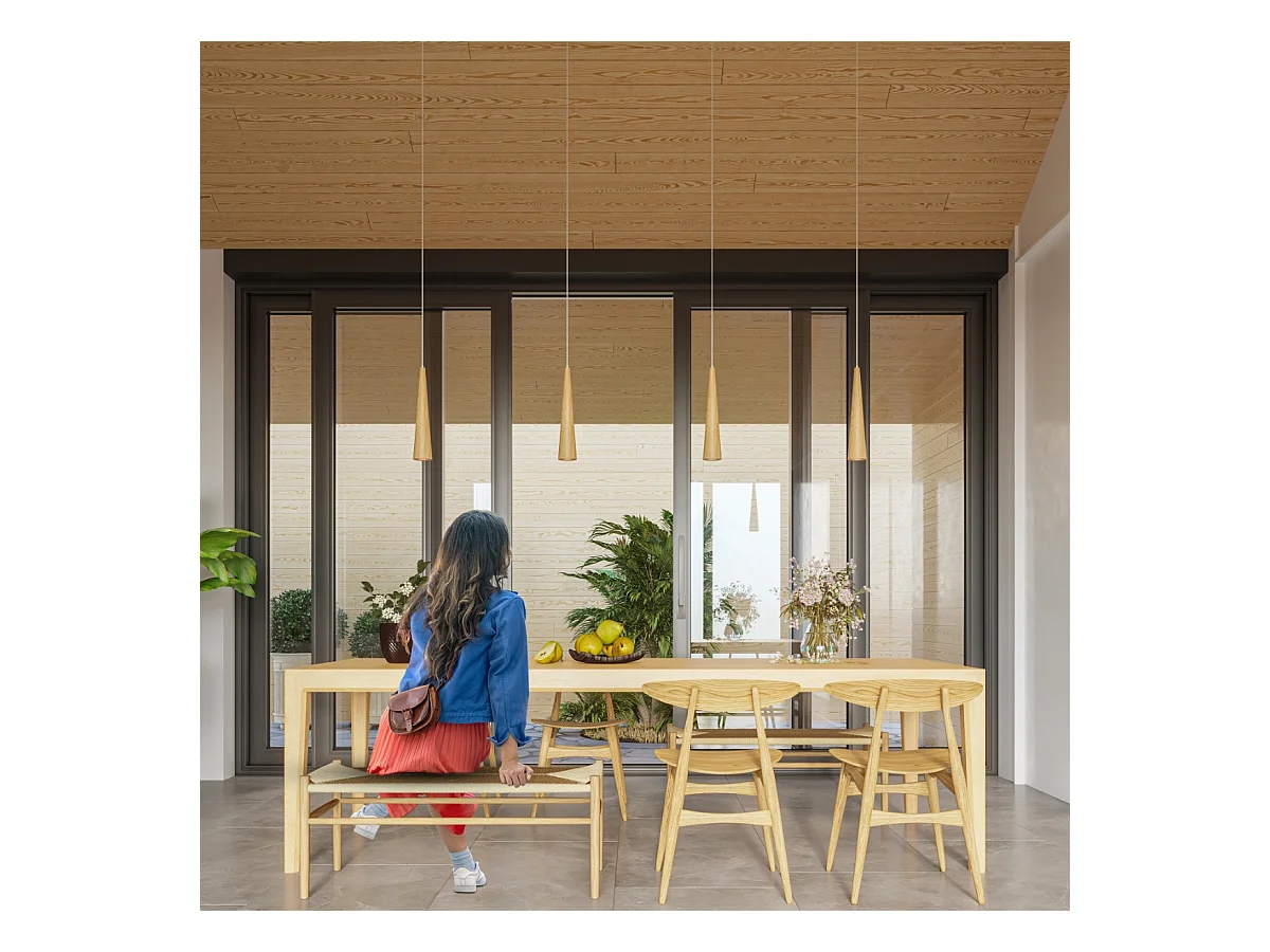 Lampy wiszące skandynawski Ravo, drewno - 1 źródło światła 4000K - L.8 x H.120 cm - naturalne drewno