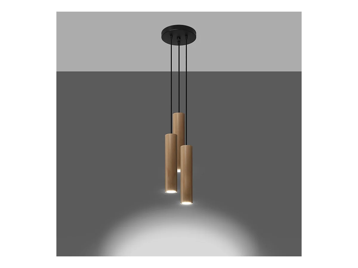 Lampy wiszące skandynawski Silno, drewno - 3 źródło światła 4000K - L.20 x H.100 cm - naturalne drewno