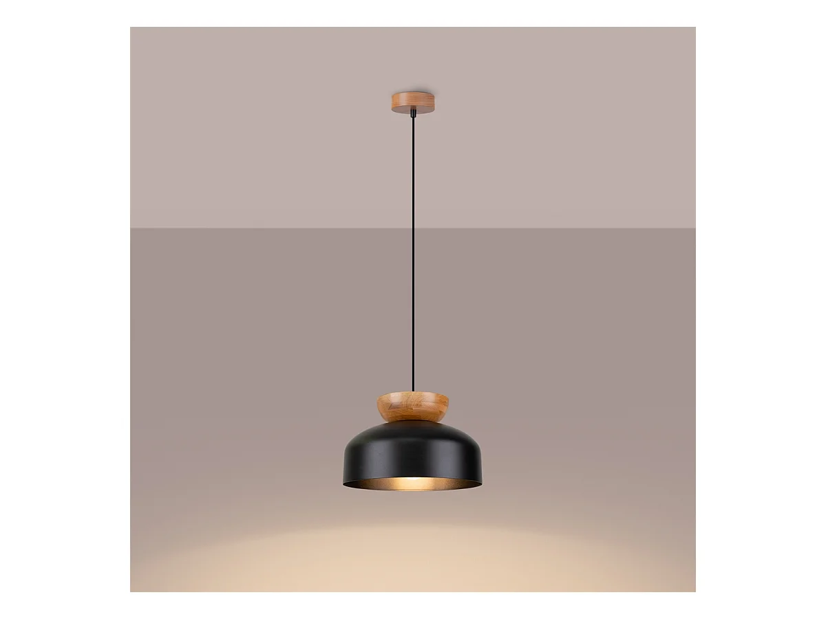 Lampy wiszące skandynawski Zeleron, drewno/stal - 1 źródło światła 4000K - L.29.5 x H.130 cm - czarny/naturalne drewno