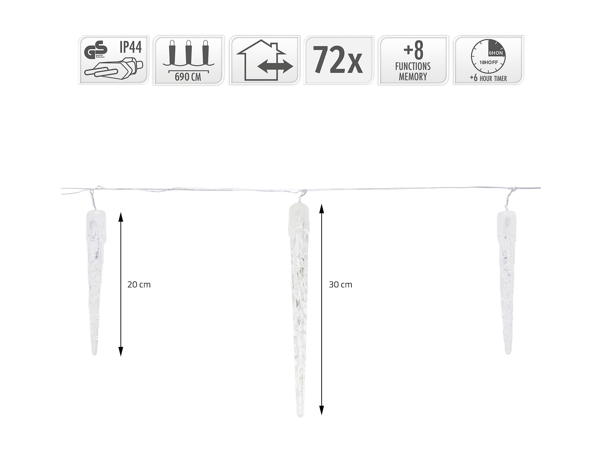 Łańcuch świetlny LED z soplami lodu Deszcz lodowy Dekoracje świąteczne Na zewnątrz W kolorze zimnym białym Z timerem 6,9 m