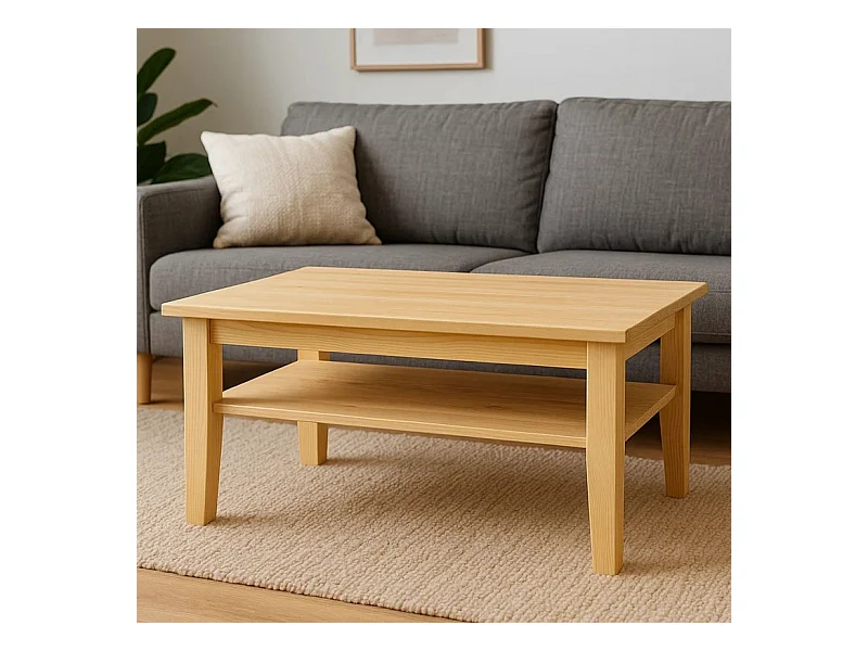 Ława 110x60 pokojowa z półką z drewna litego, kolor sosnowy