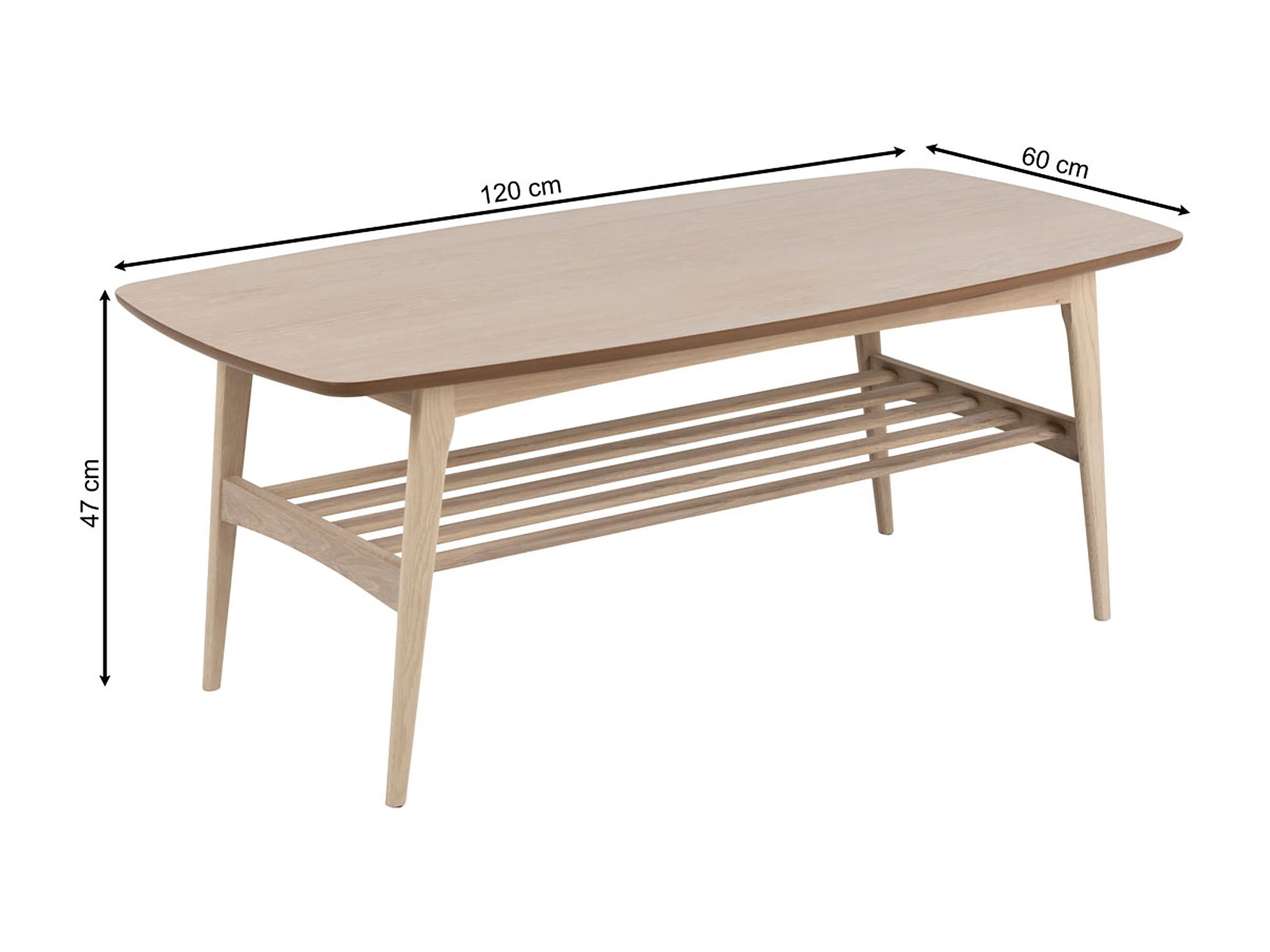 Ława Arco wood 120 cm z półką, kolor dębowy bielony olejowany