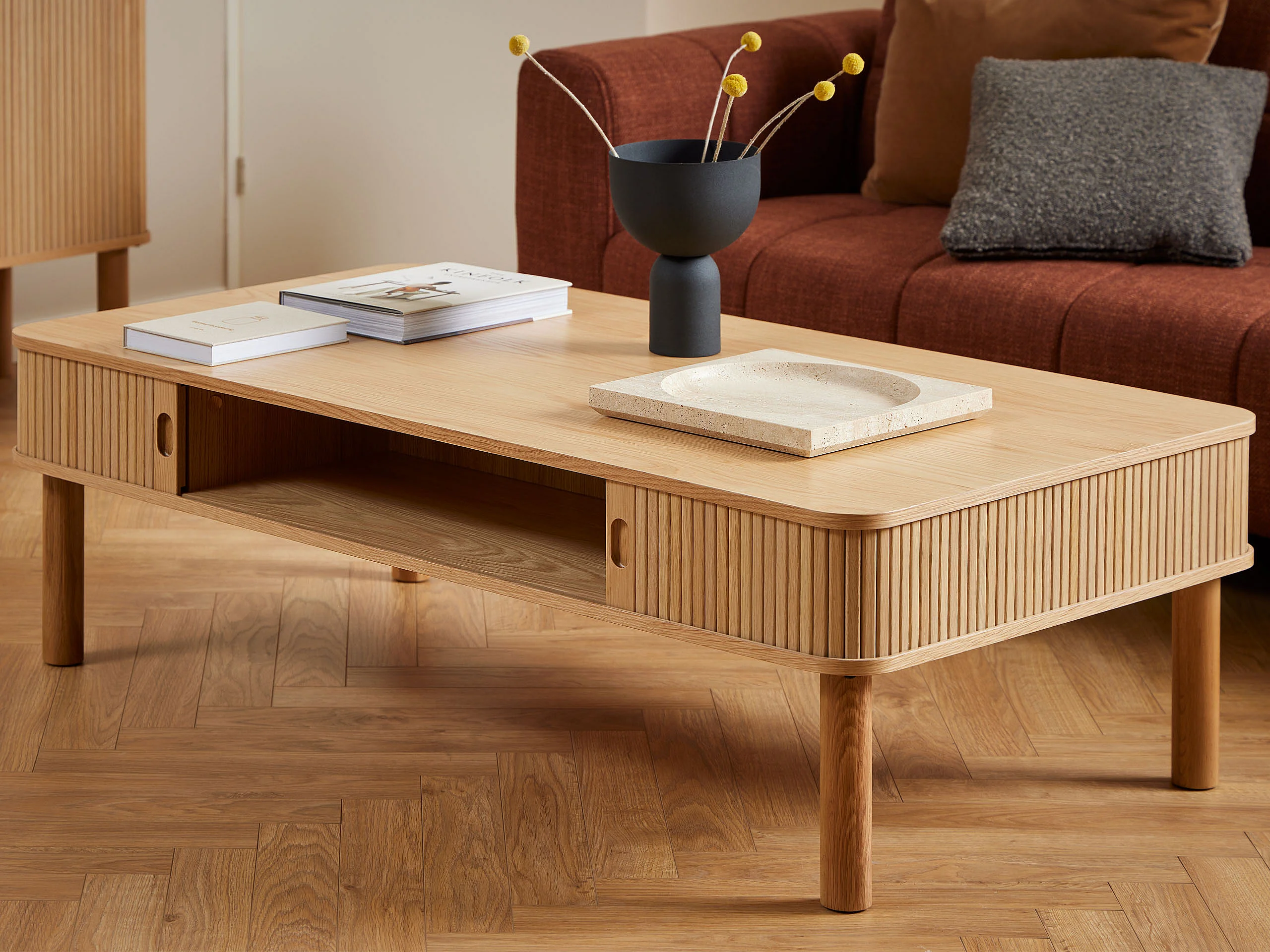 Ława Freja wood 130 cm z półką i szufladą, kolor dębowy olejowany