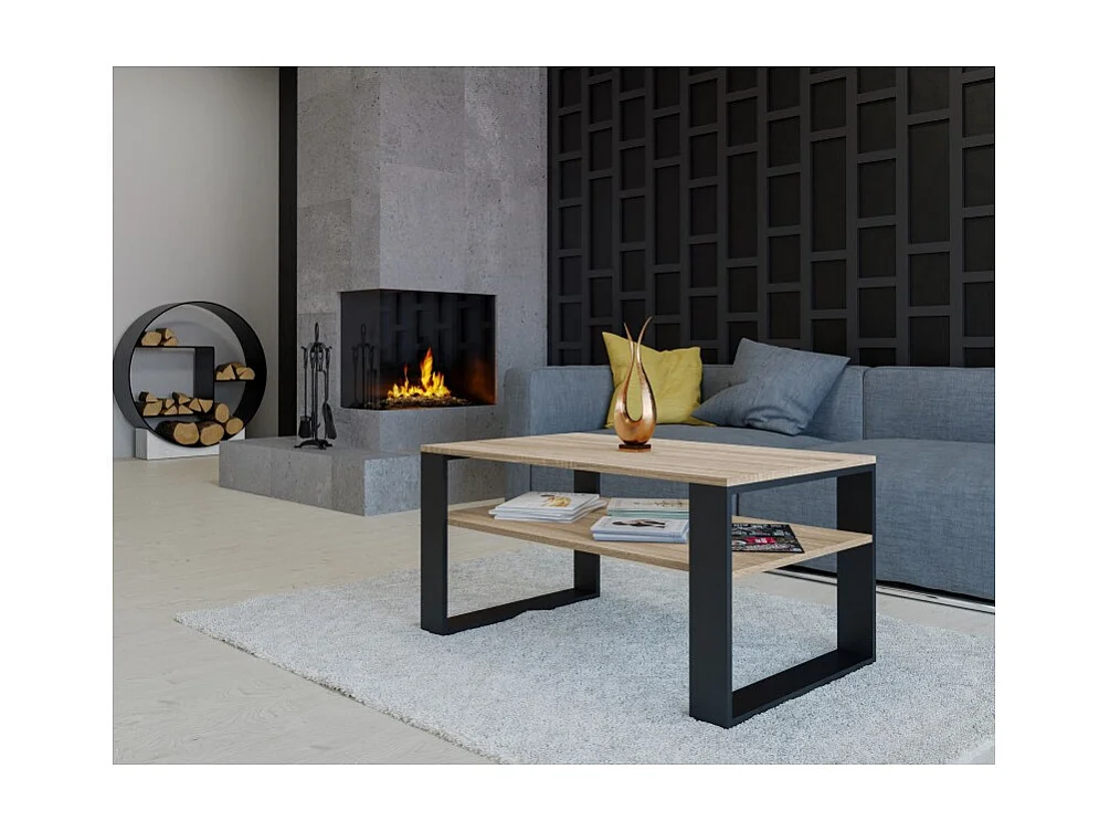 Ława Modern 1P | Stolik Kawowy Dąb Sonoma Czarny | 90x58x50 cm | Nowoczesny Design