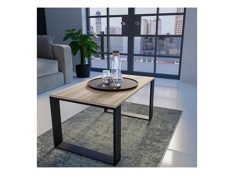 Stolik kawowy Genk T576, Wygląd czarnego dębu, ciemne metalowe nogi