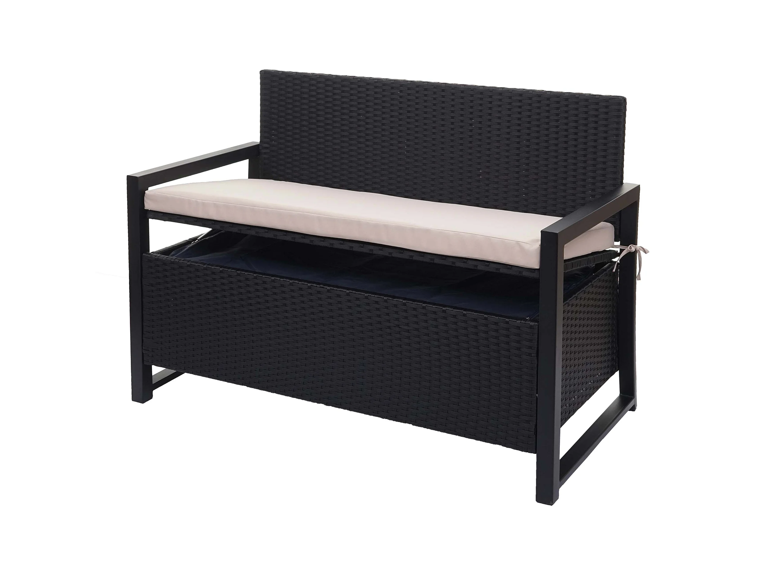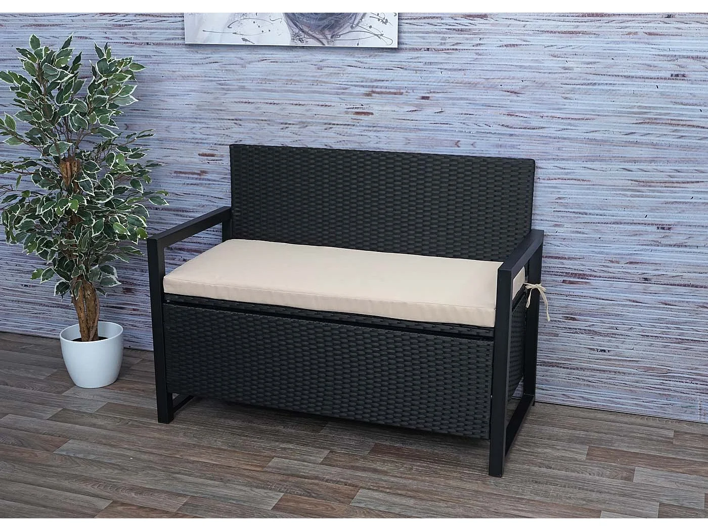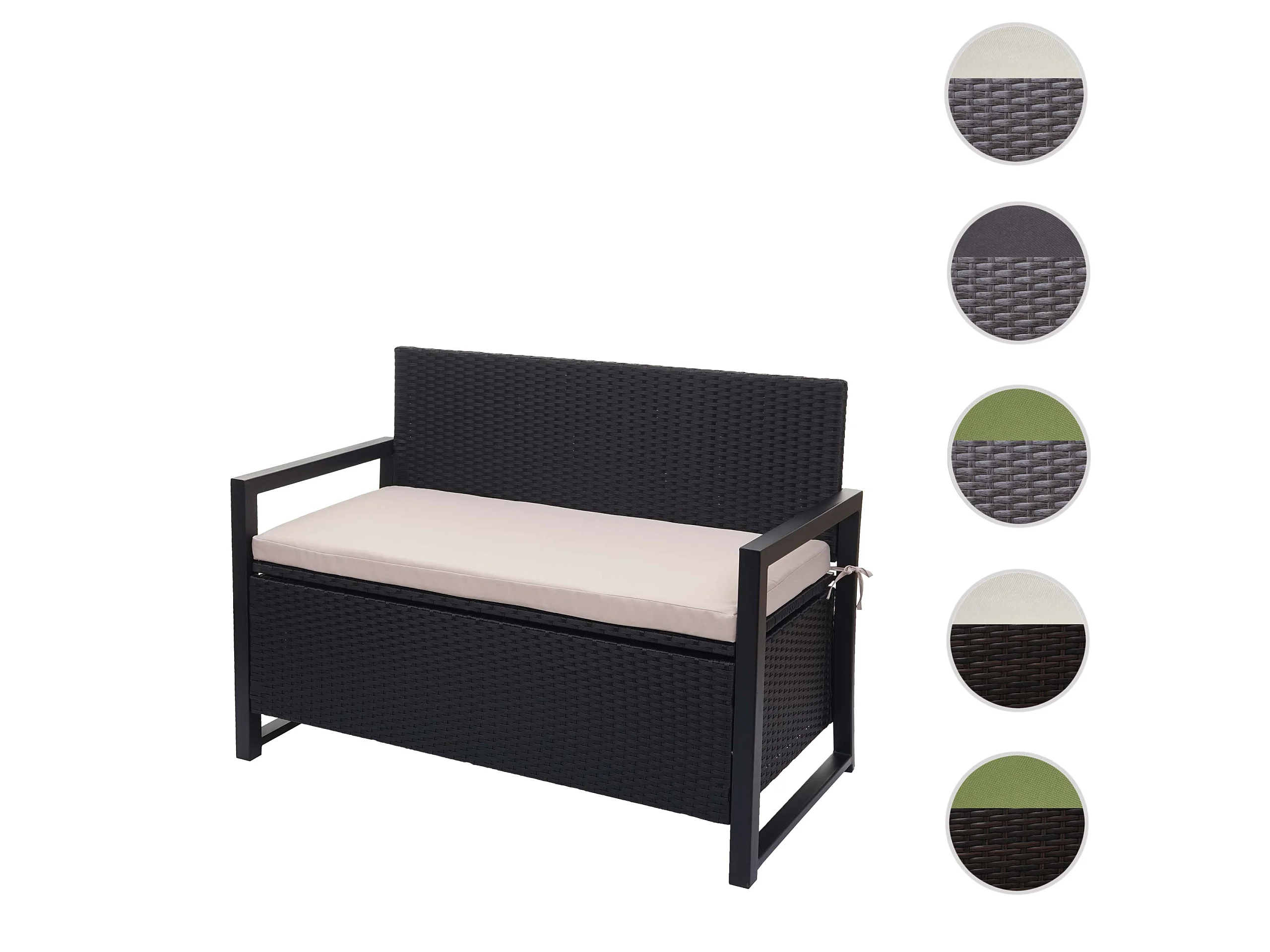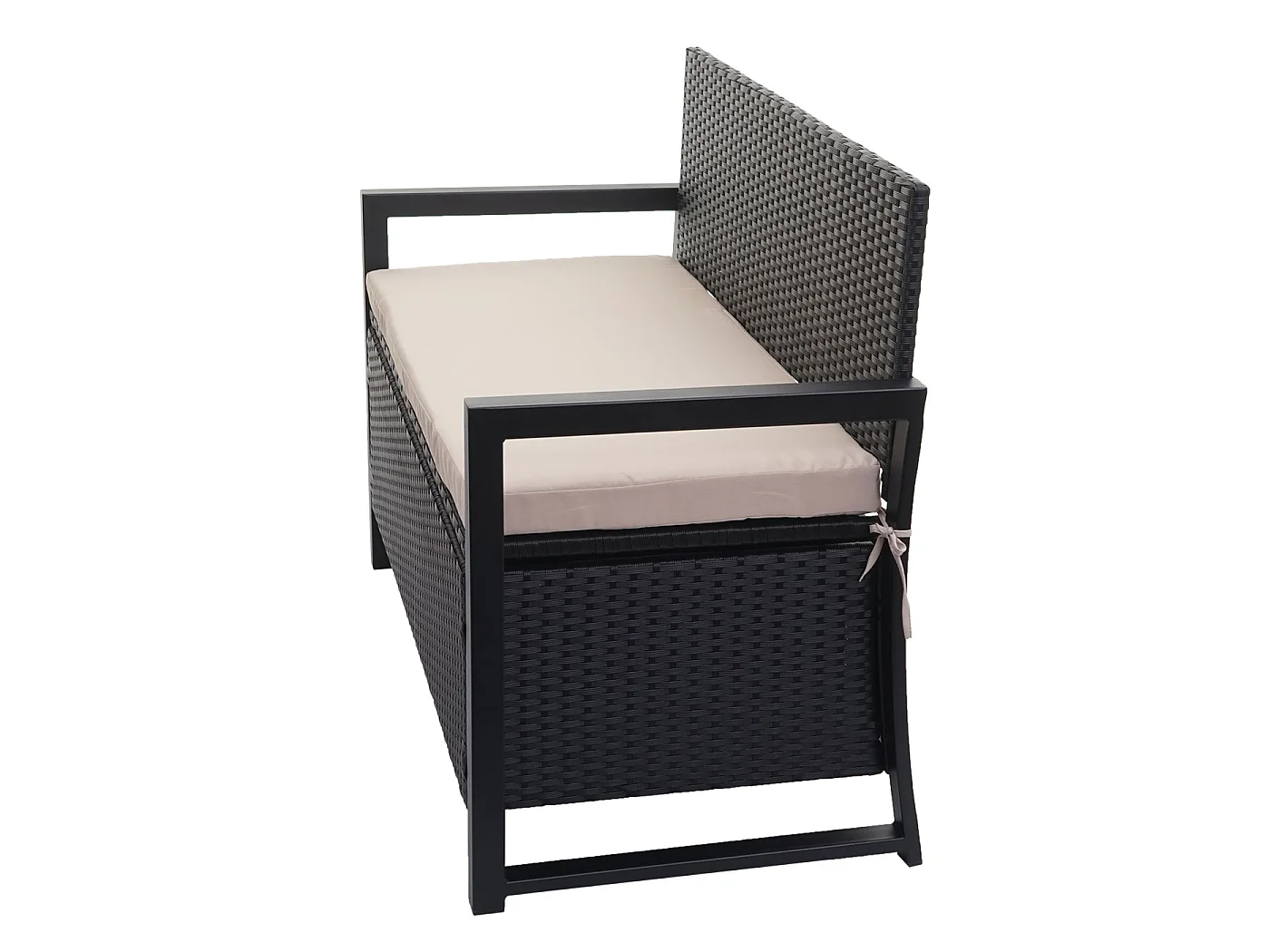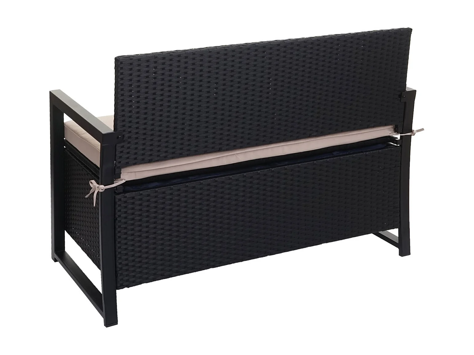 Ławka 2-osobowa z polirattanu MCW-F39, antracyt, poduszki beżowe