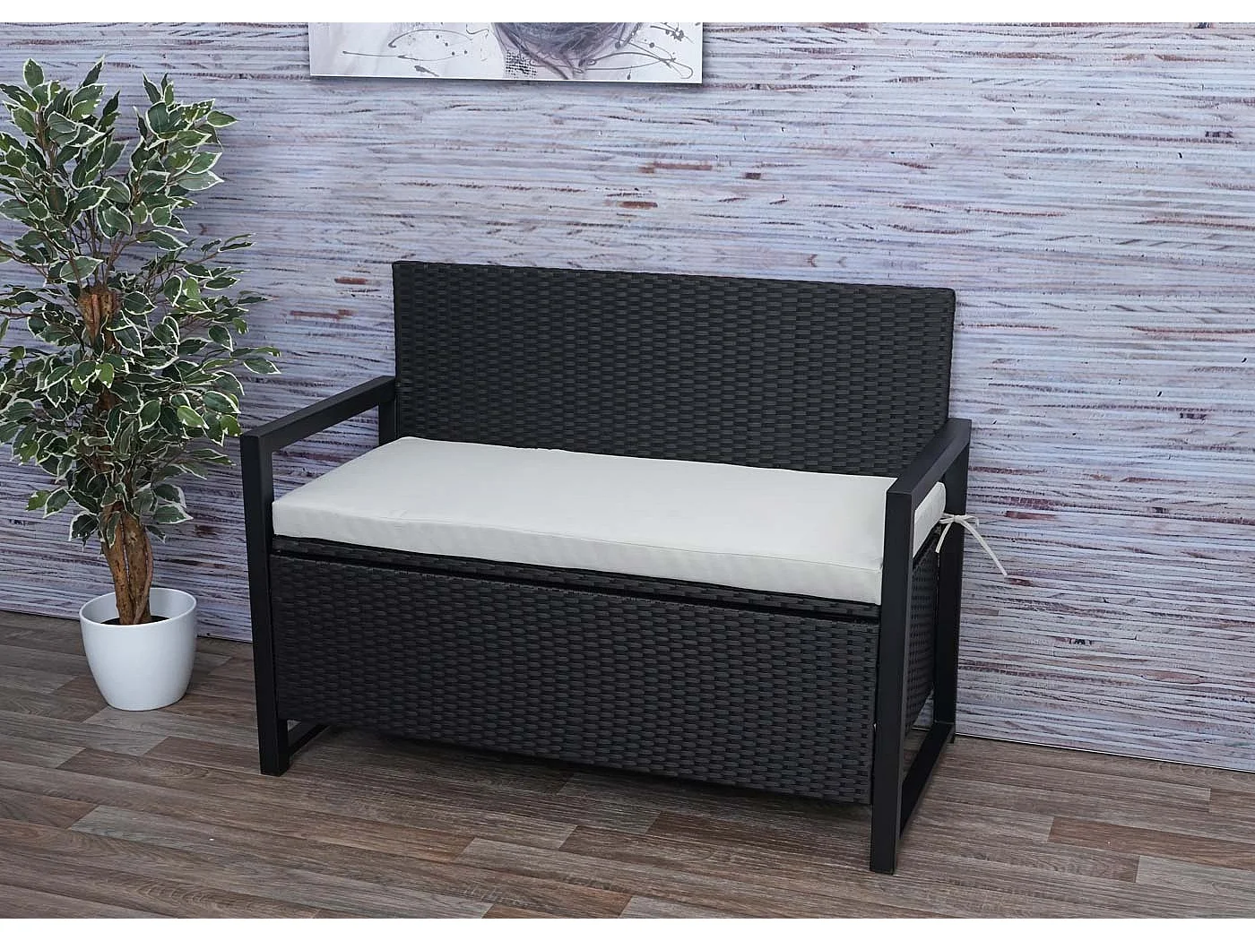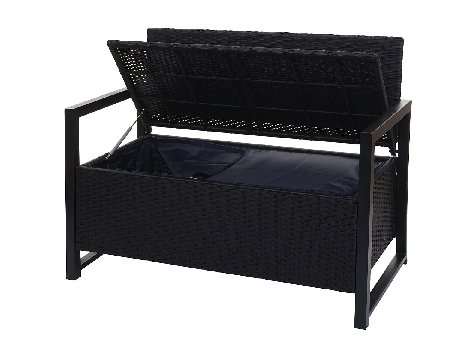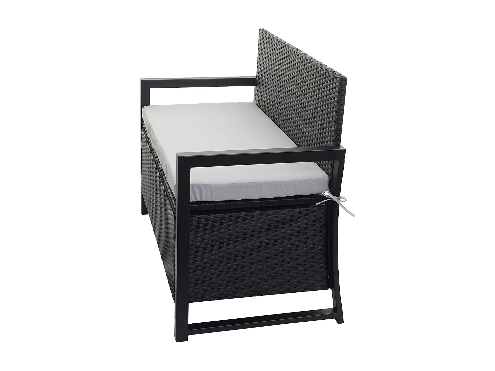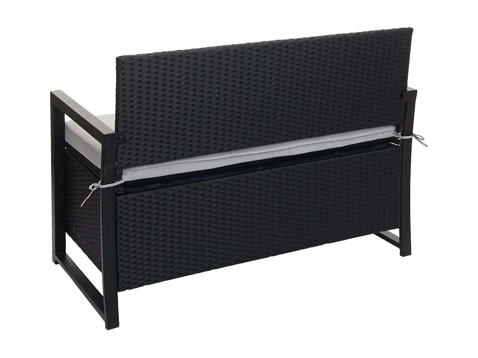 Ławka 2-osobowa z polirattanu MCW-F39, antracyt, szare poduszki