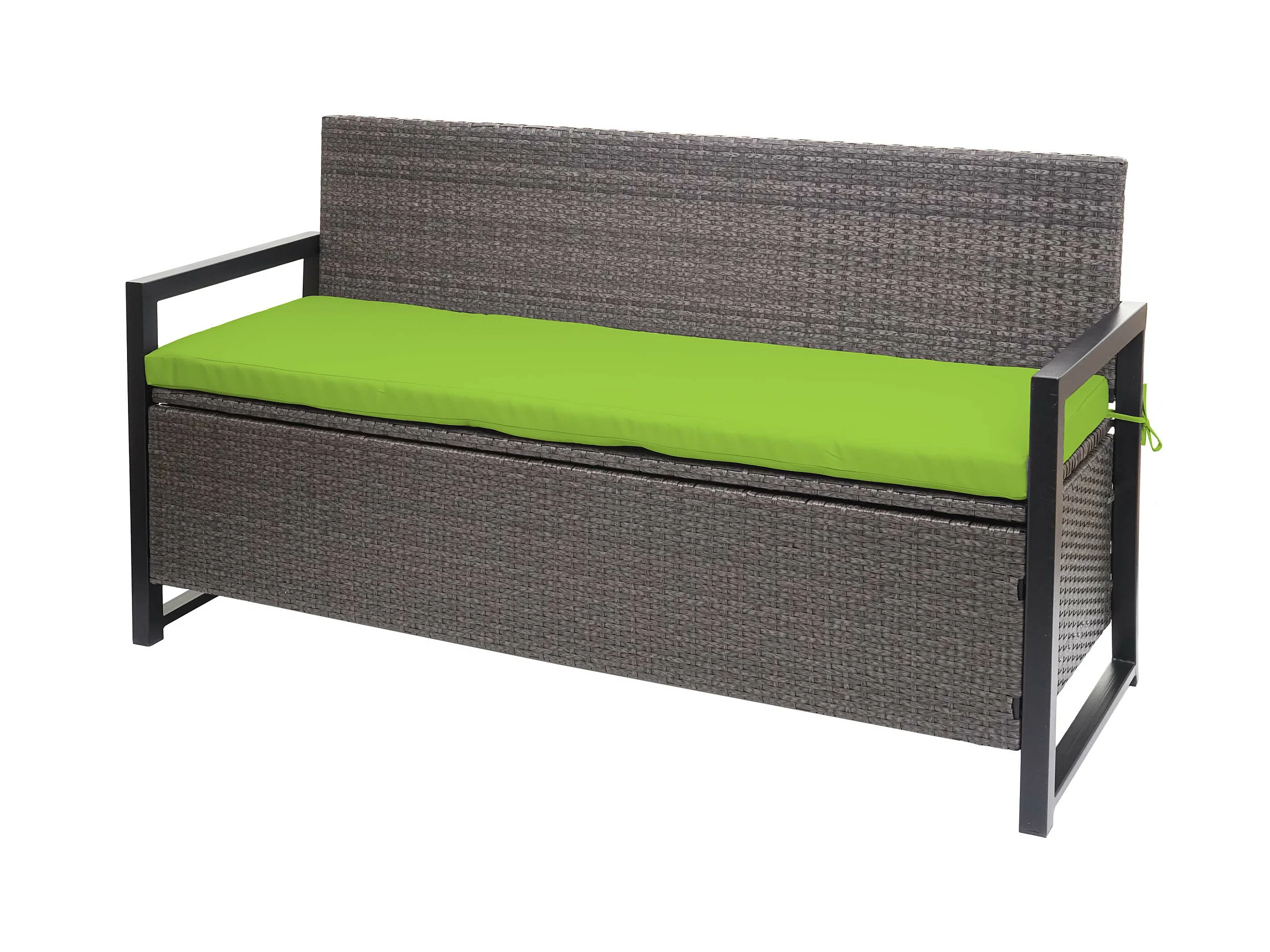 Ławka 3-osobowa z polirattanu MCW-F39, szaro-motylkowy, poduszki zielone