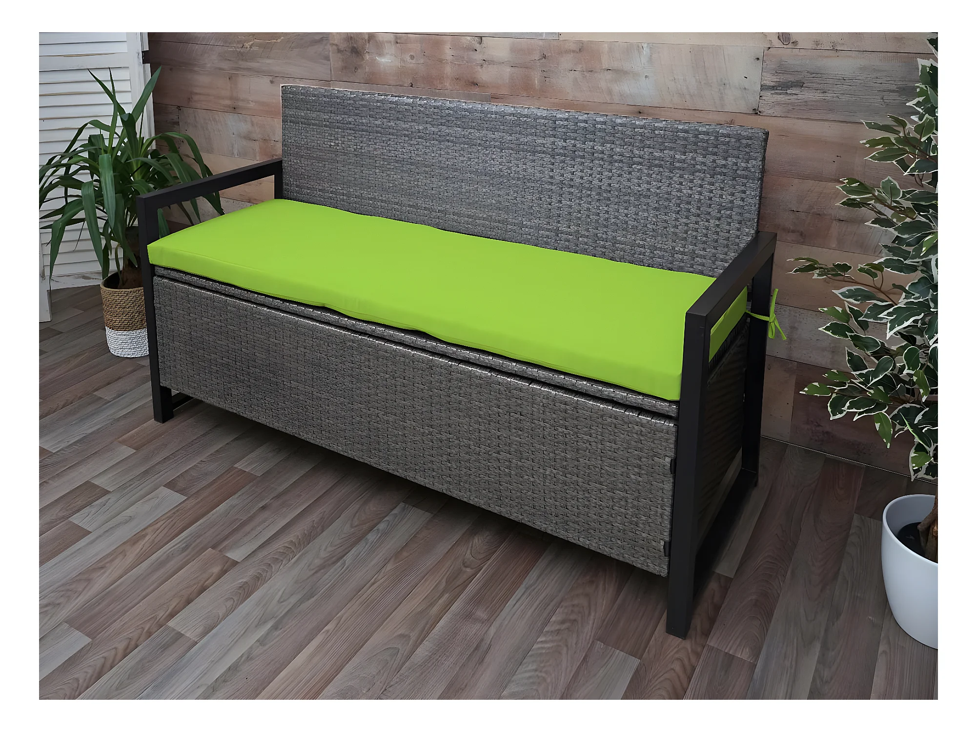 Ławka ogrodowa z szarym poduszka 110x30x40,5 cm z plecionej żywicy - Wygodna i trwała