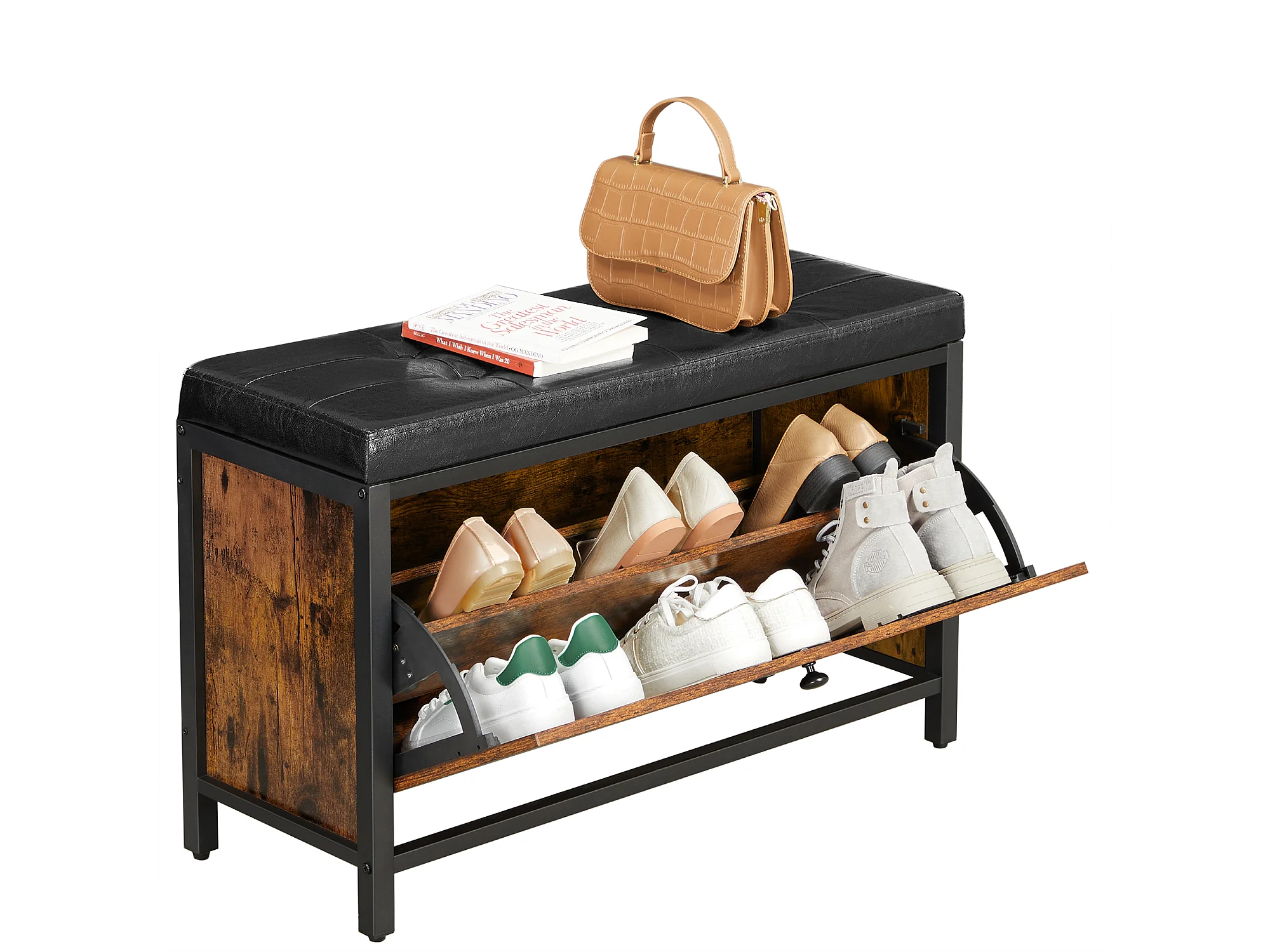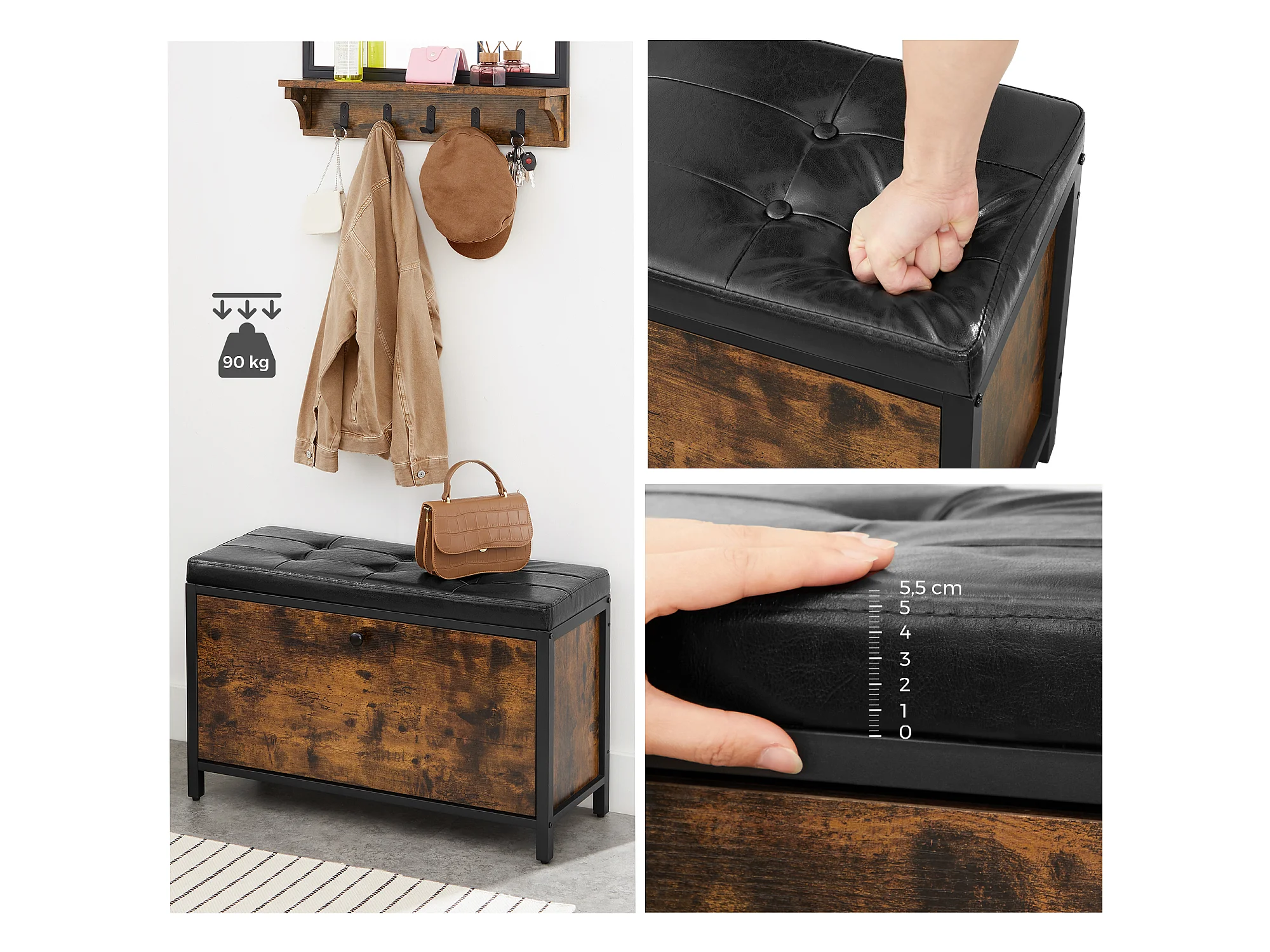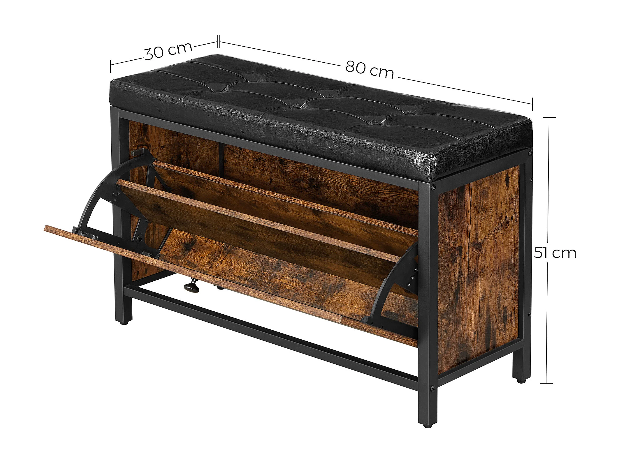 Ławka na buty 80x30x51 cm czarna vintage brązowa