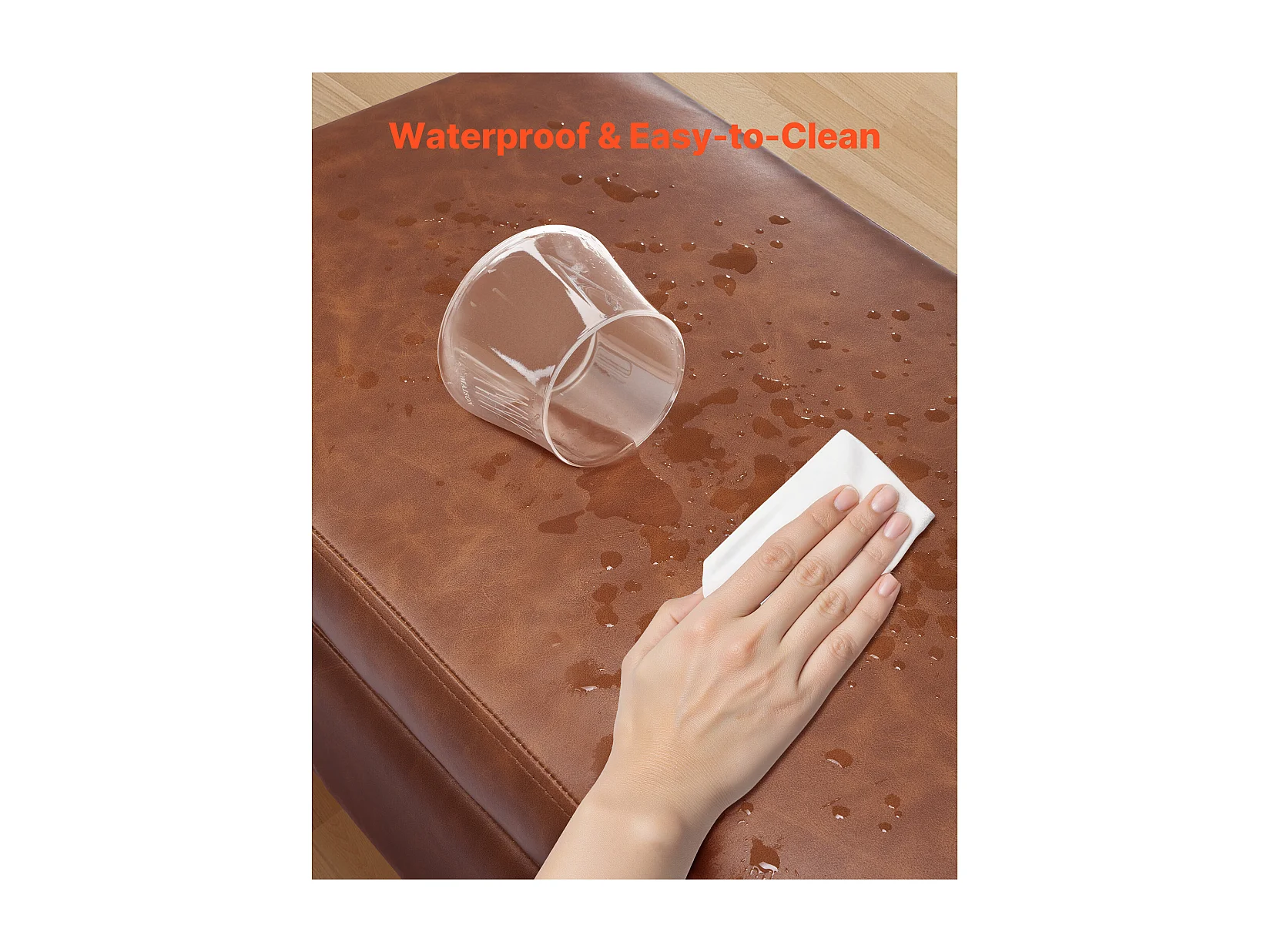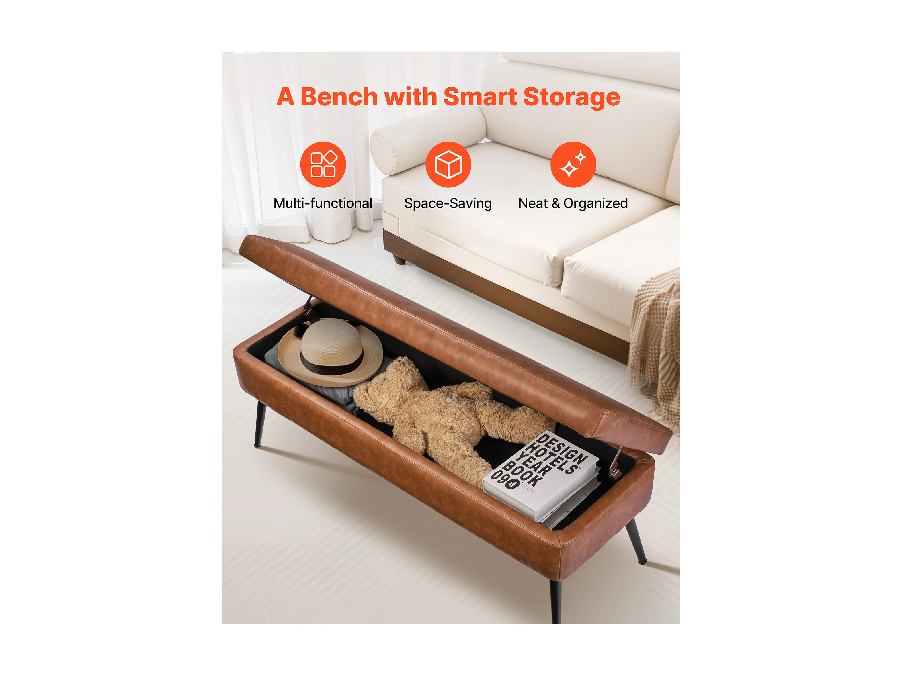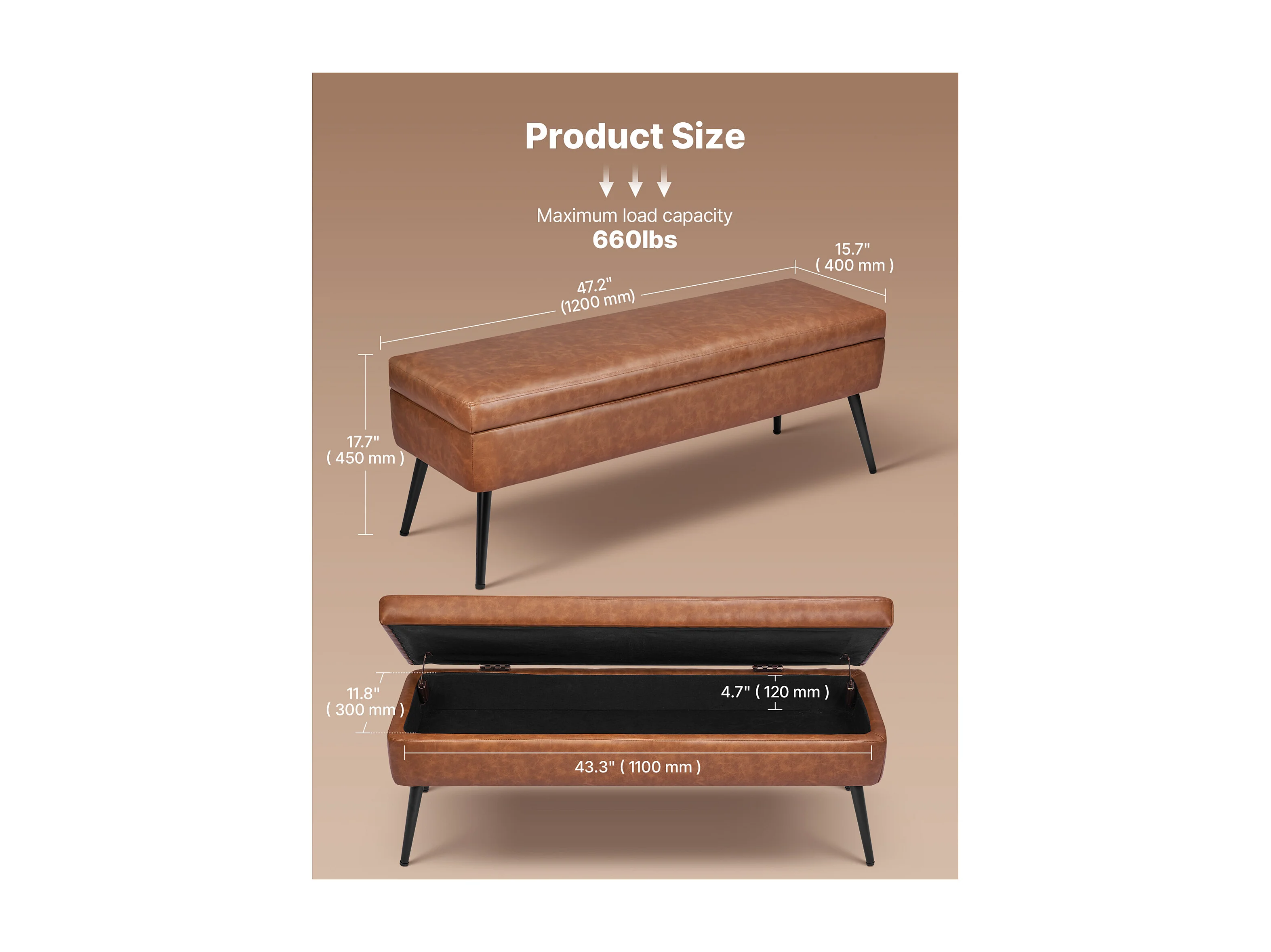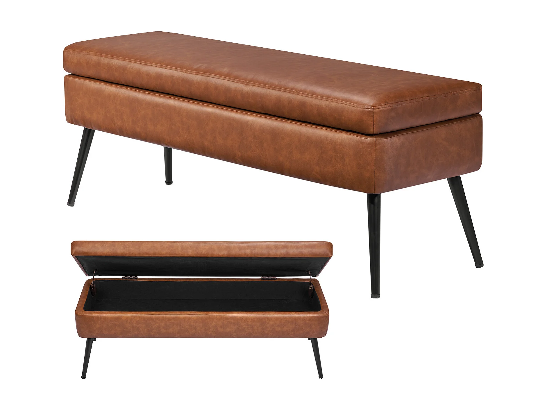 Ławka na Koniec Łóżka Succebuy Ławka ze Schowkiem ze Skóry PU 120 cm z Metalowymi Nogami, Elegancka i Funkcjonalna Ławka do Sypialni, Przedpokoju, Brązowa
