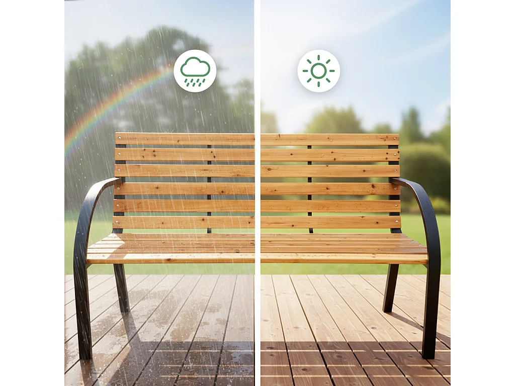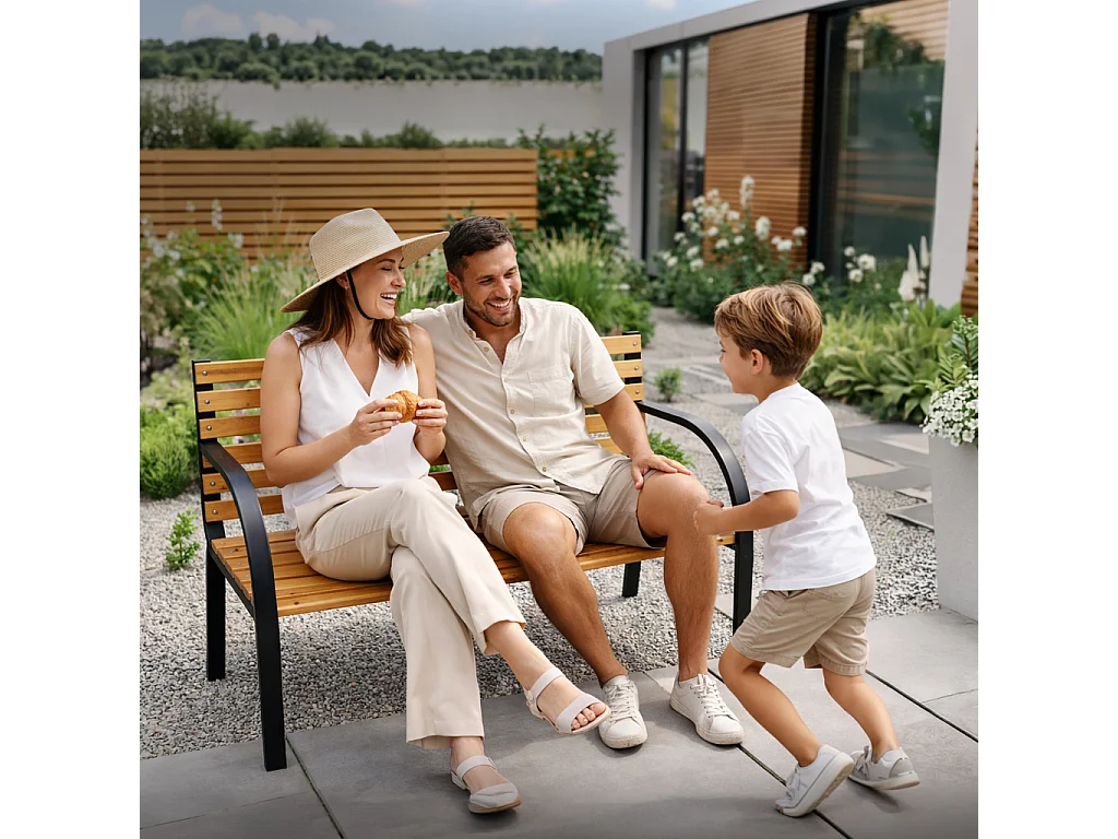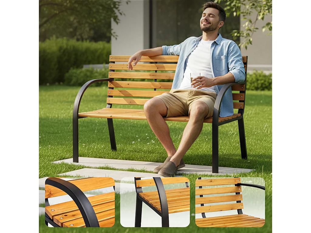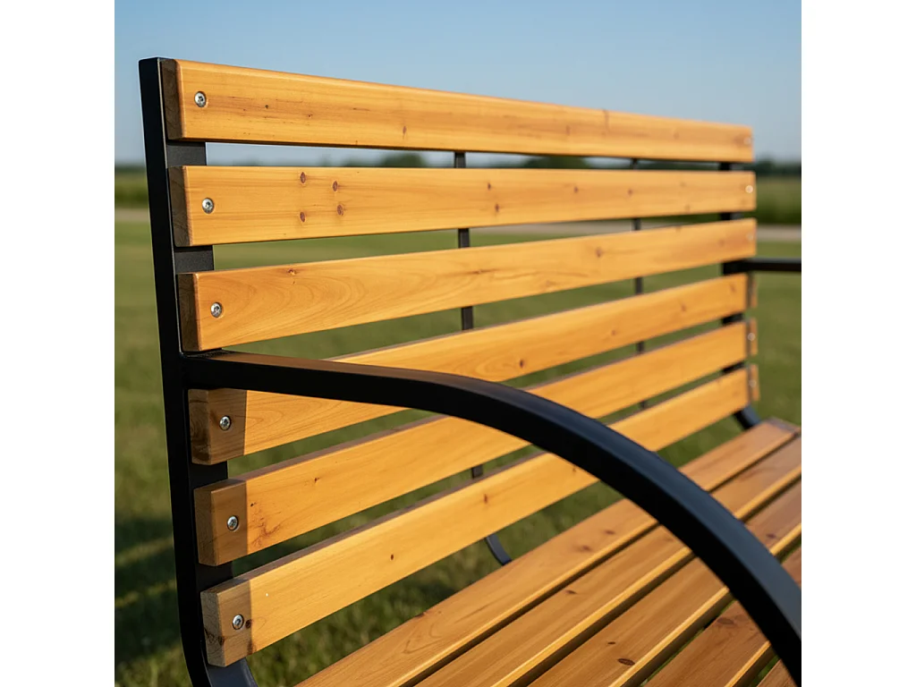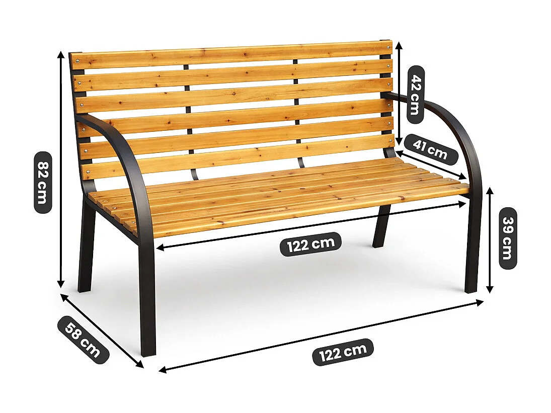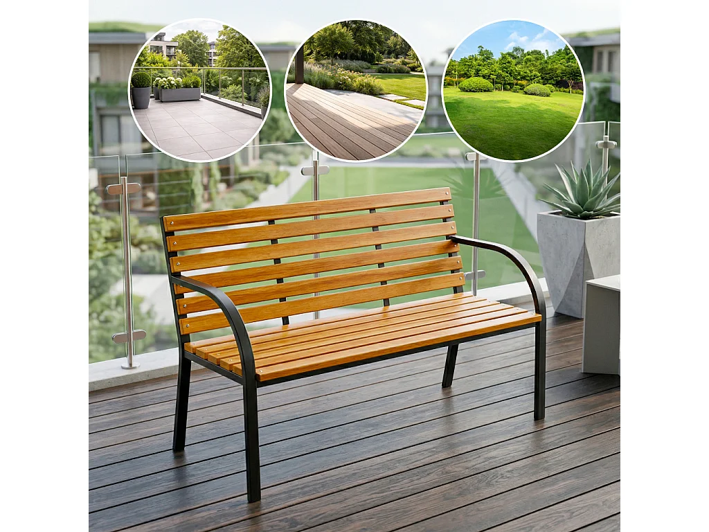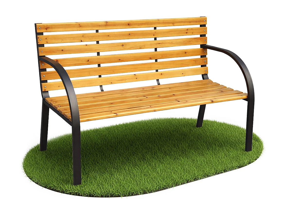 Ławka ogrodowa DALIA z lakierowanego drewna stalowe nogi szerokość 122 cm