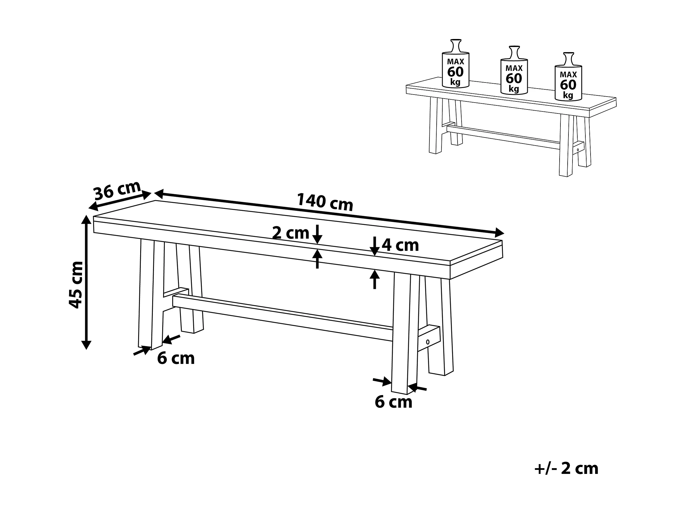 Ławka ogrodowa SCANIA 140 cm Drewno akacjowe Biały