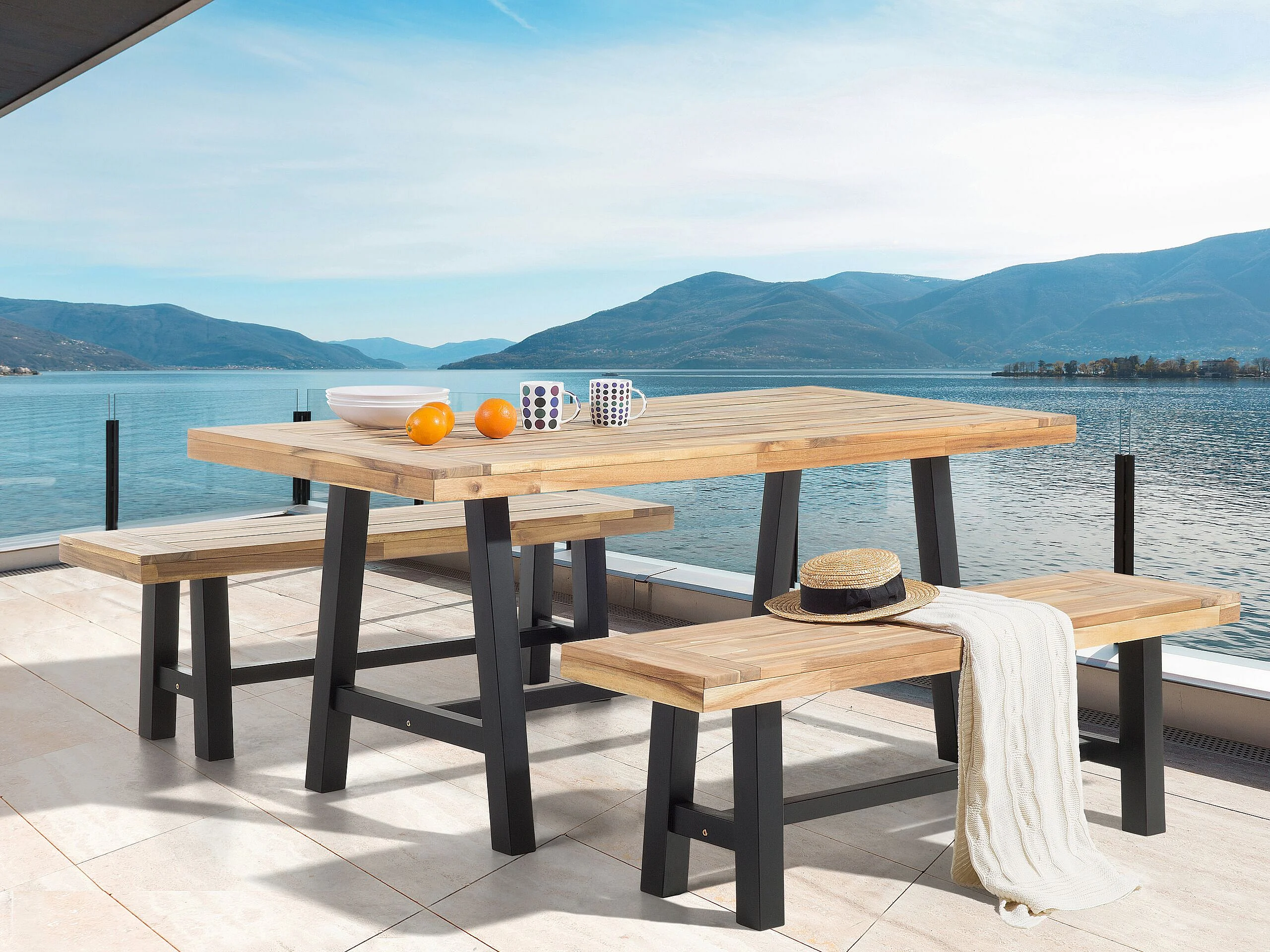 Ławka ogrodowa SCANIA 140 cm Drewno akacjowe Czarny