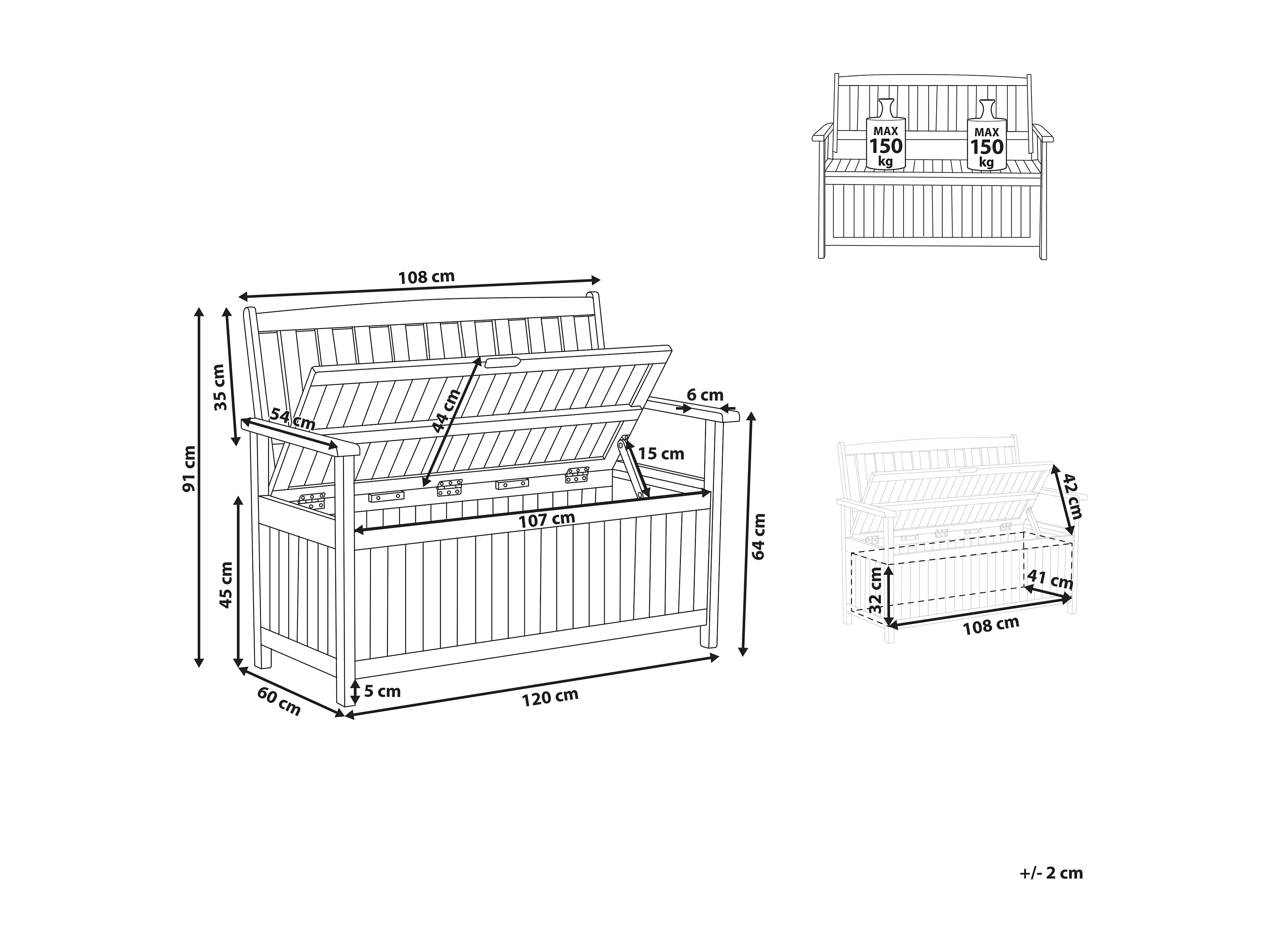 Ławka ogrodowa z poduchą SOVANA 120 cm ze schowkiem Drewno akacjowe Biały