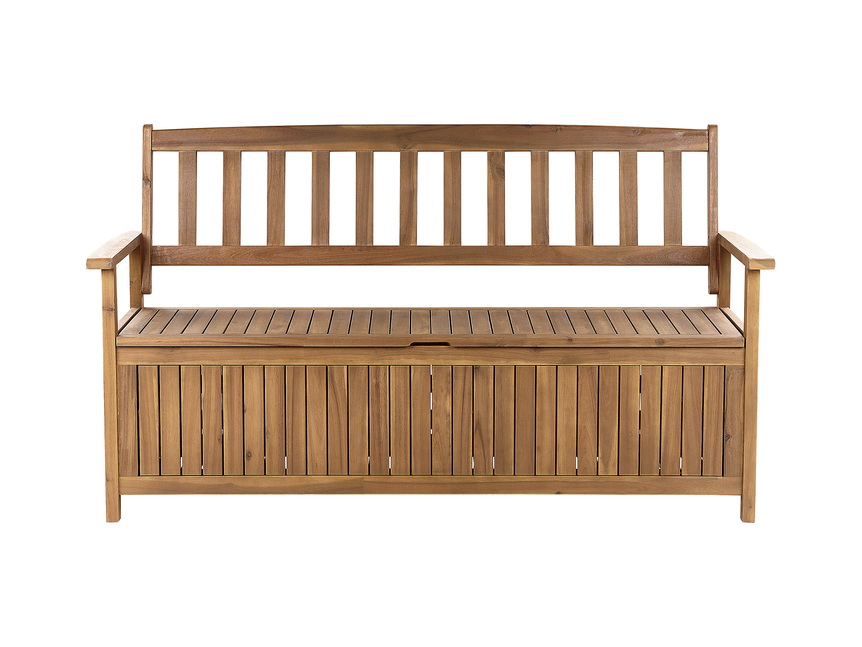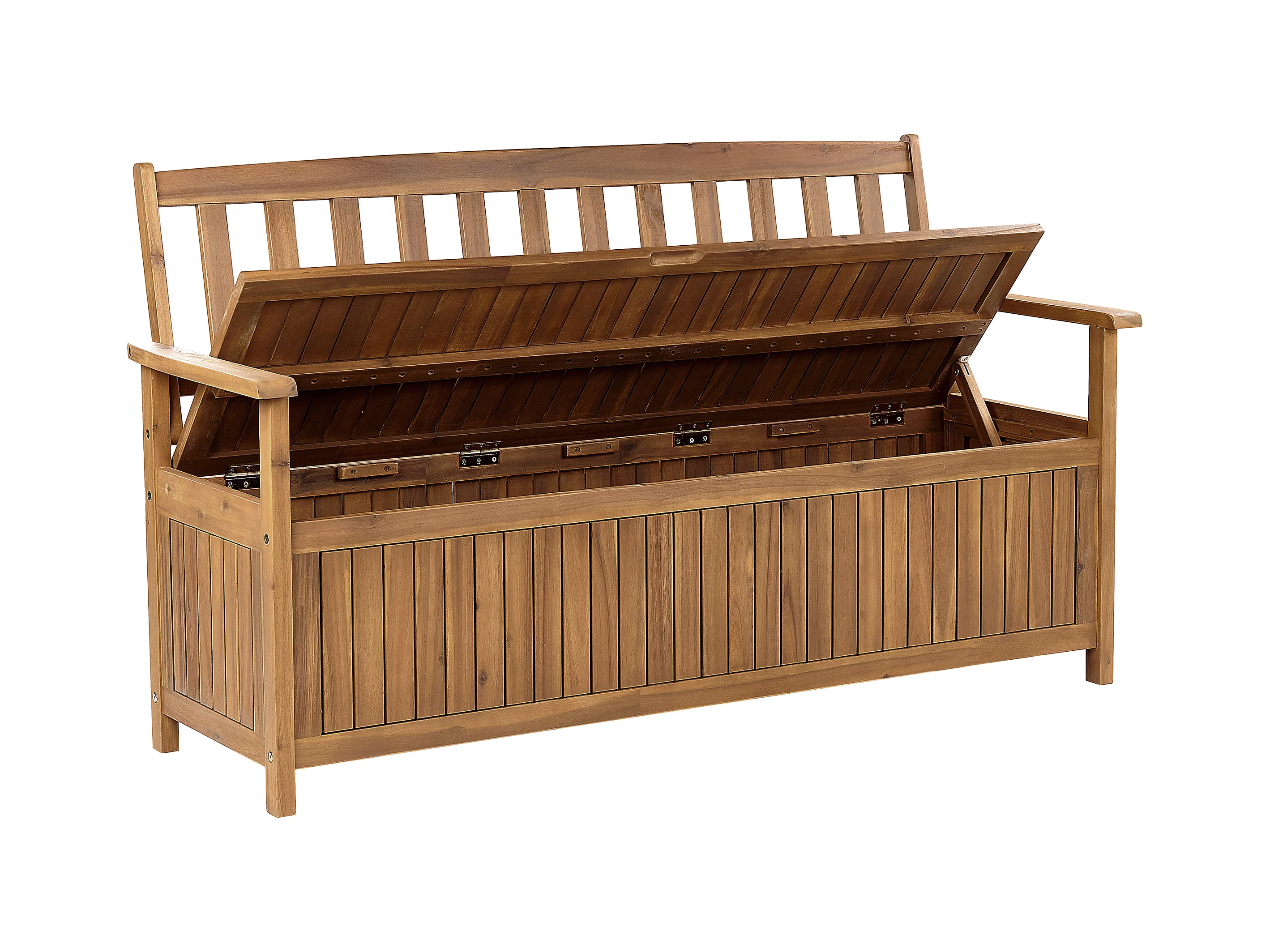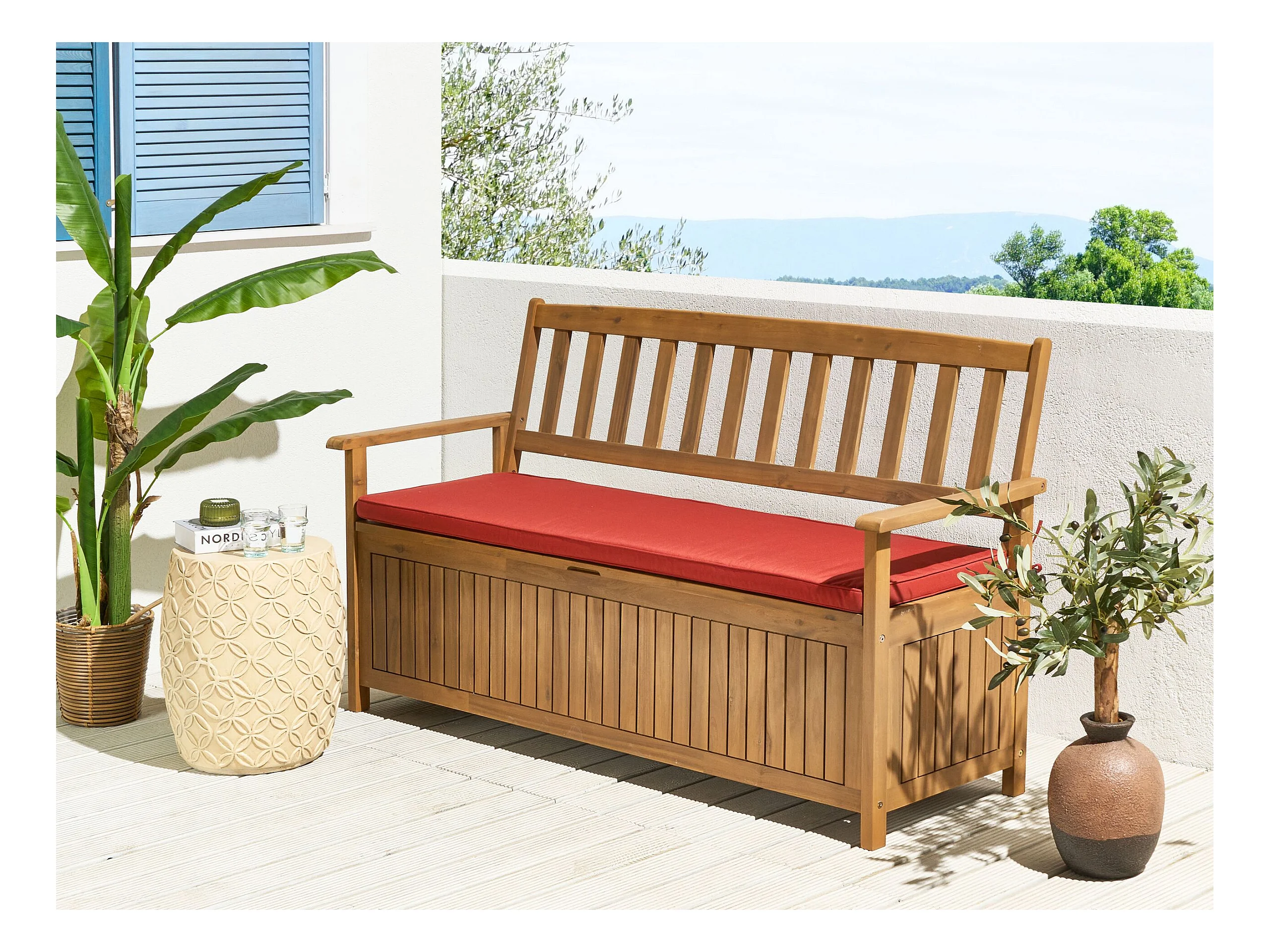 Ławka ogrodowa z poduchą SOVANA 160 cm ze schowkiem Drewno akacjowe Czerwony