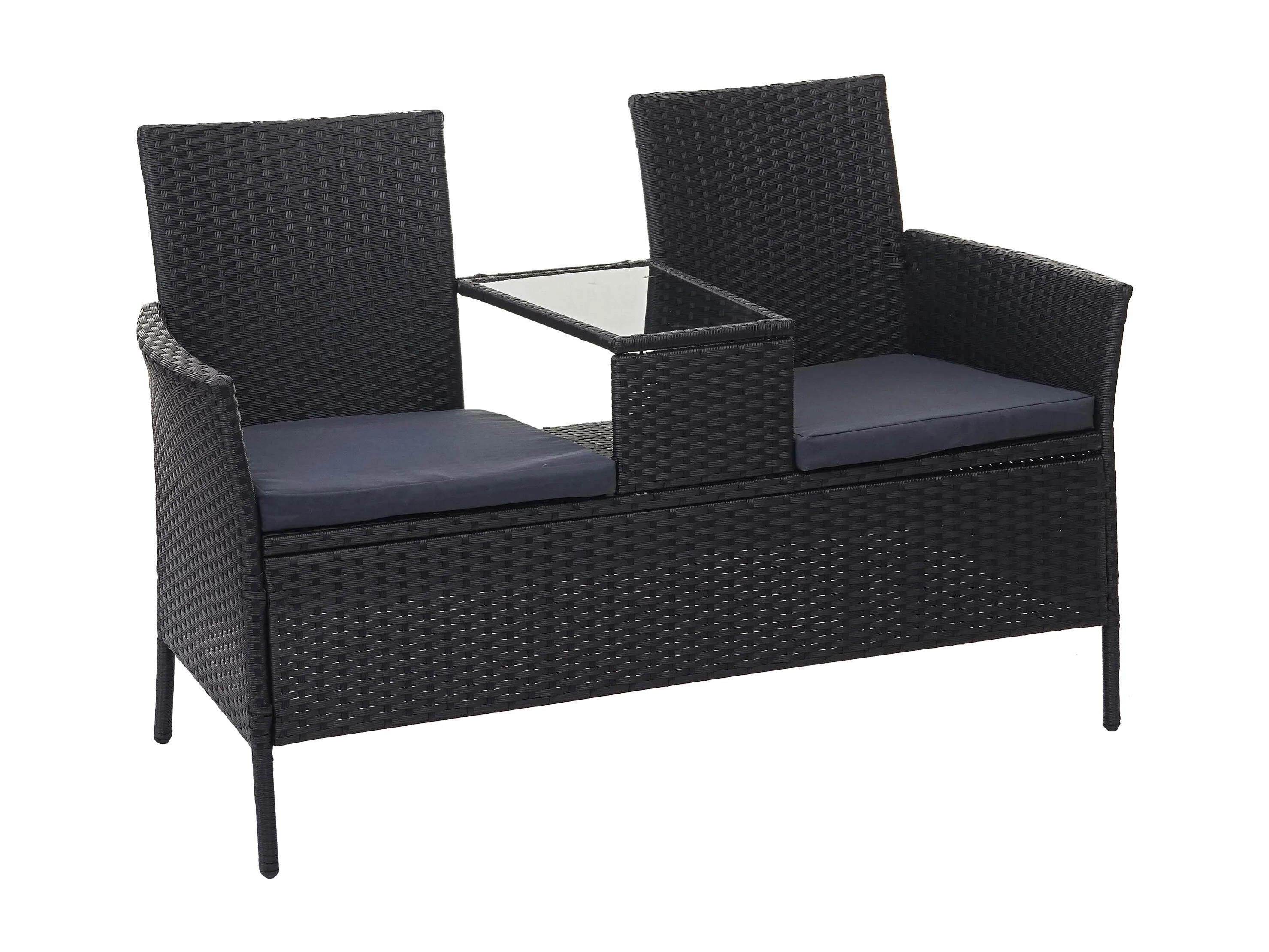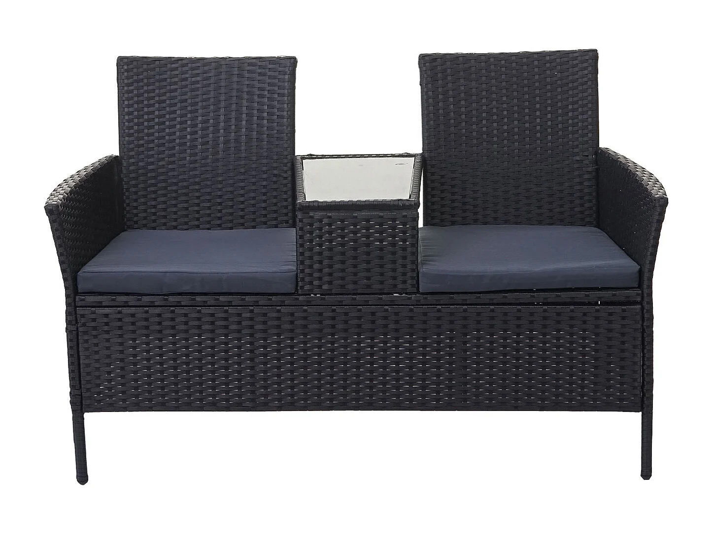 Ławka z polirattanowa MCW-E24, czarna, poduszki ciemnoszare