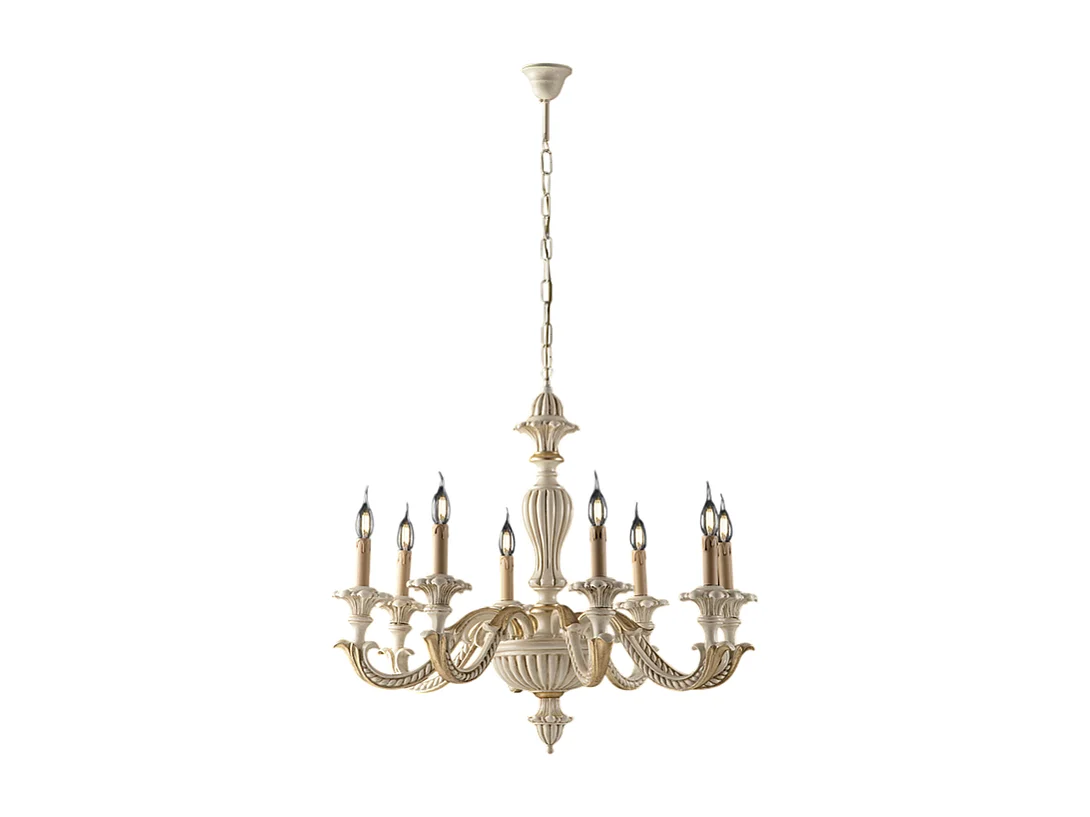 Żyrandol Leonardo z drewna w kolorze kości słoniowej i płatków złota, 6 świateł, 130 Ø74 BL180-6-AV