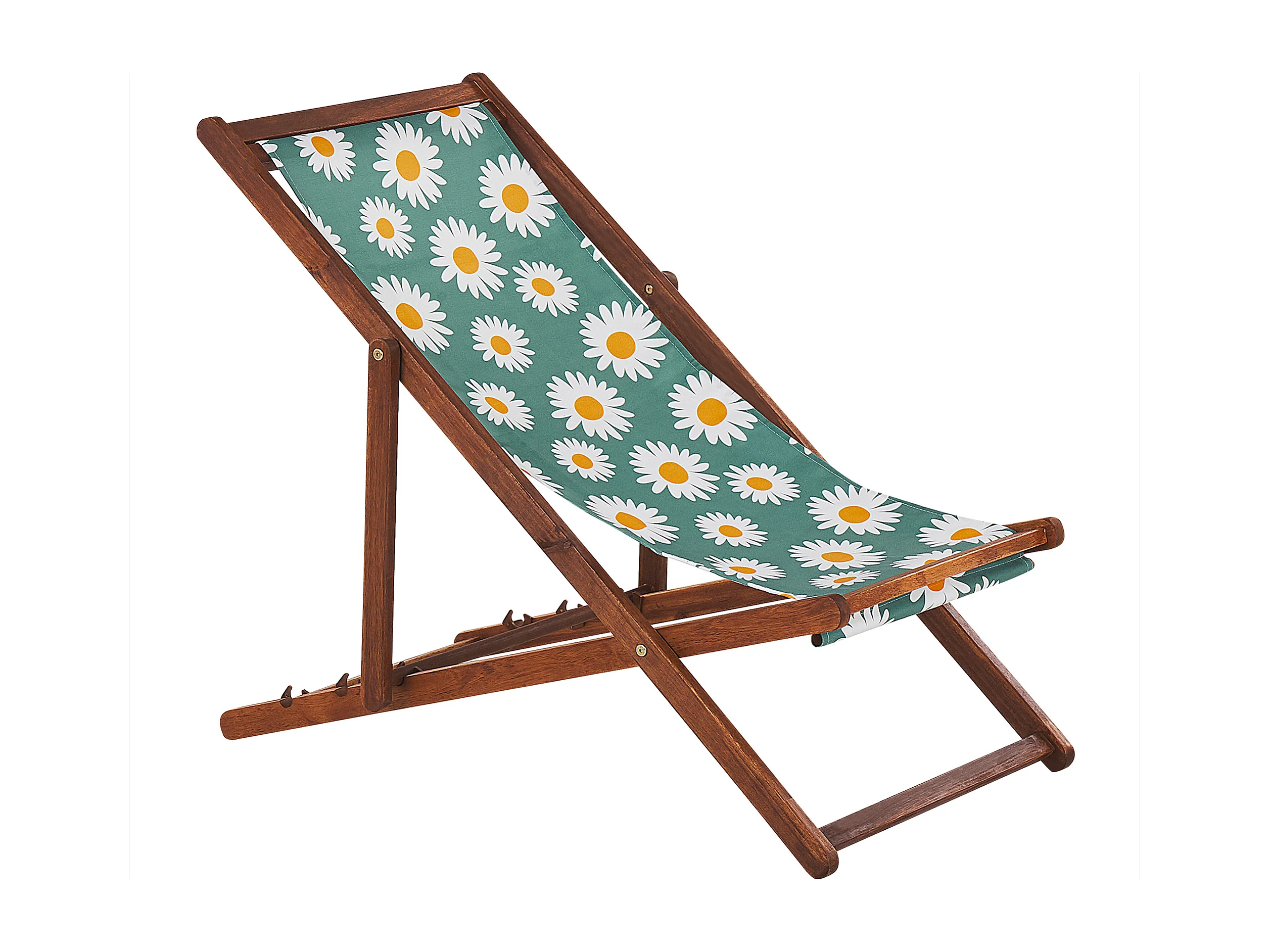 Zestaw 2 leżaków ogrodowych składanych ANZIO z zestawem wymiennych tkanin Motyw kwiatowy Drewno akacjowe Ciemnobrązowy