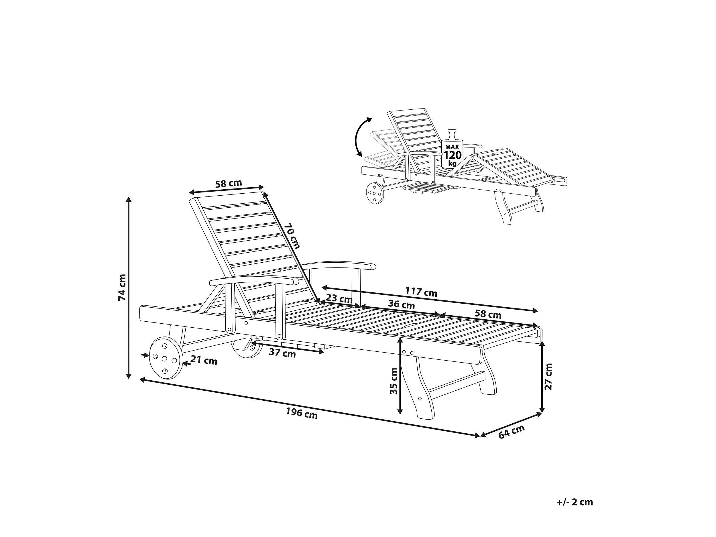 Leżak ogrodowy BELLANO Rozkładany Drewno akacjowe Brązowy