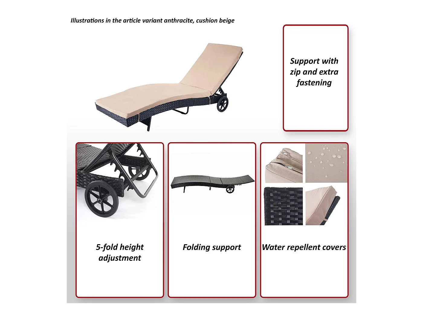 Leżak ogrodowy MCW-D80, antracyt, beżowe poduszki