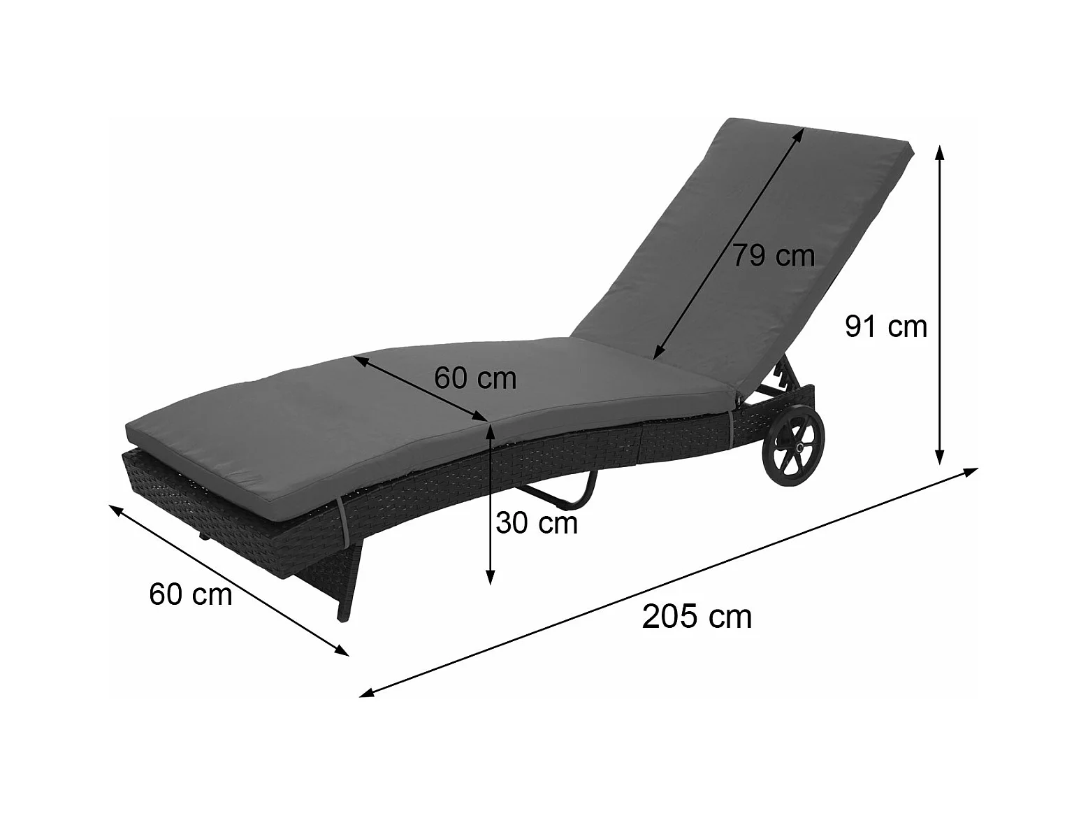 Leżak ogrodowy MCW-D80, antracyt, ciemnoszare poduszki