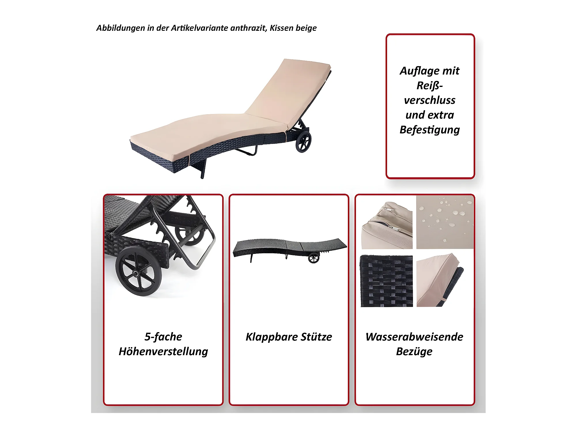 Polirattanowy leżak Cesena, antracyt, poduszki terakota