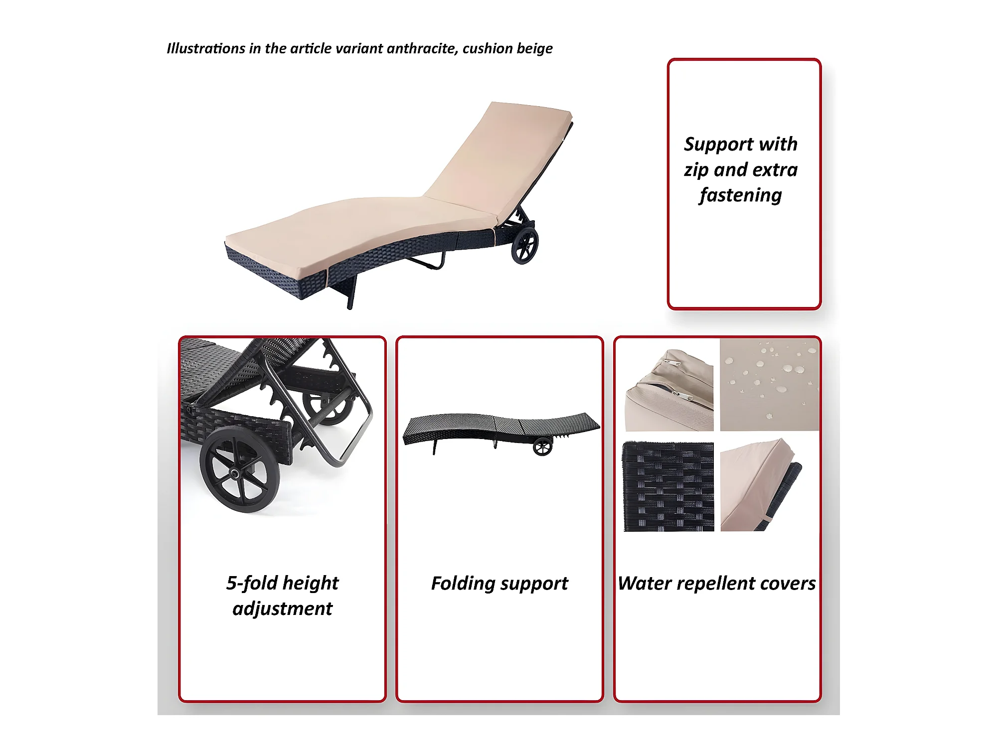 Polirattanowy leżak Cesena, antracyt, poduszki terakota