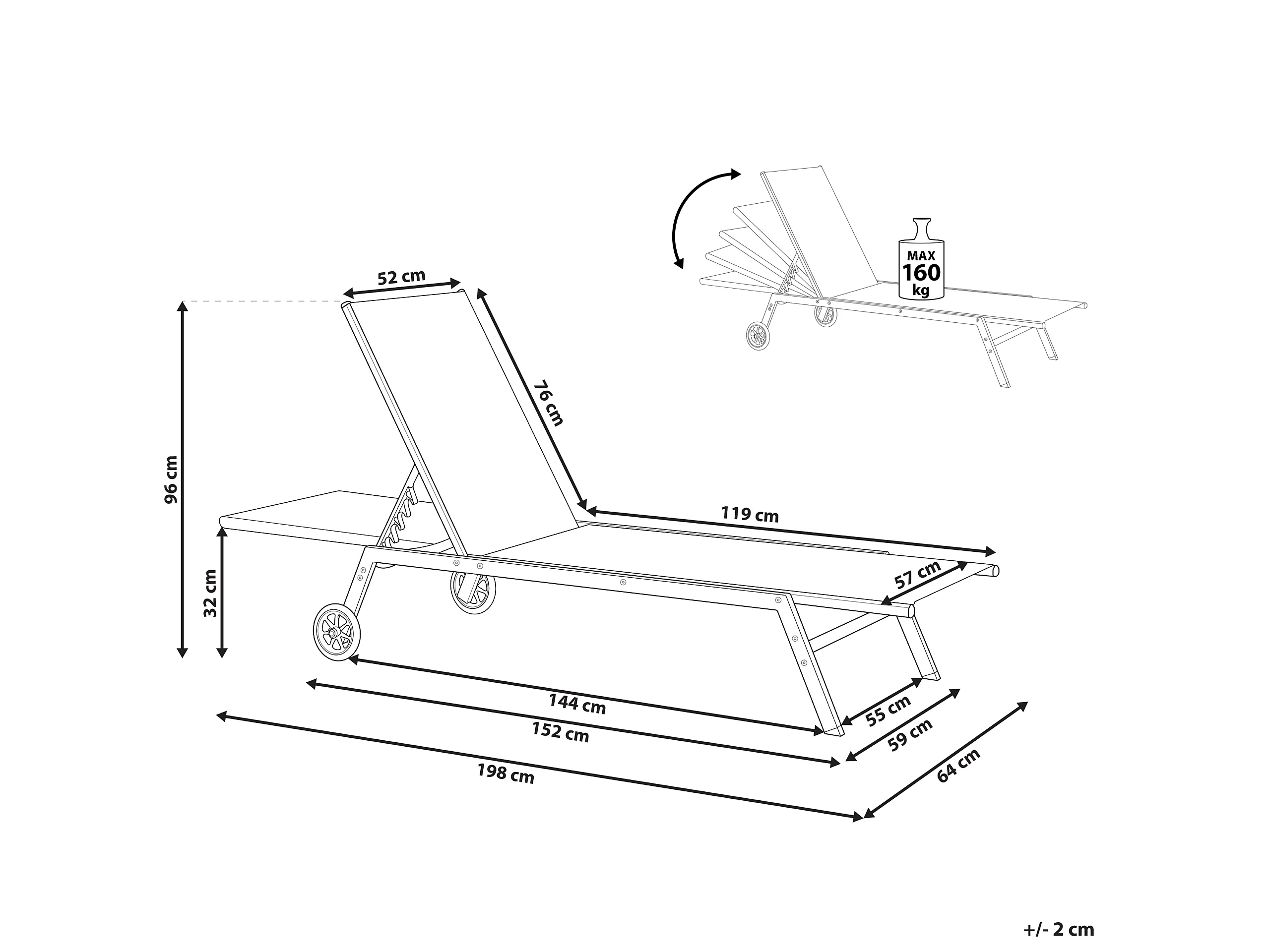 Leżak ogrodowy LEVANZO Rozkładany Metal Czerwony
