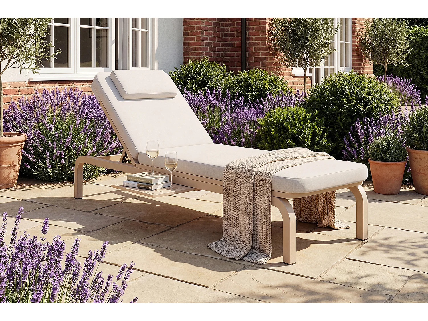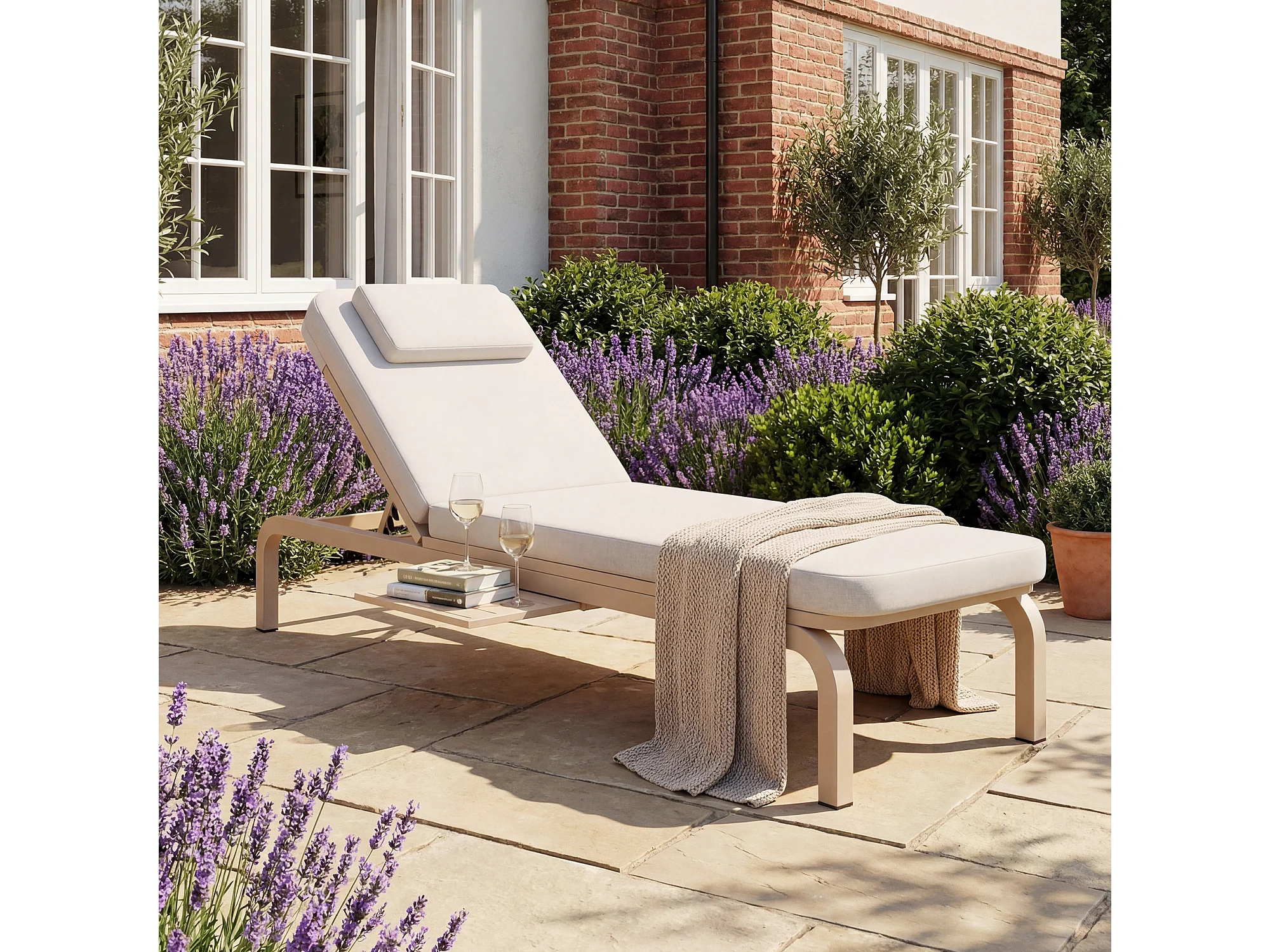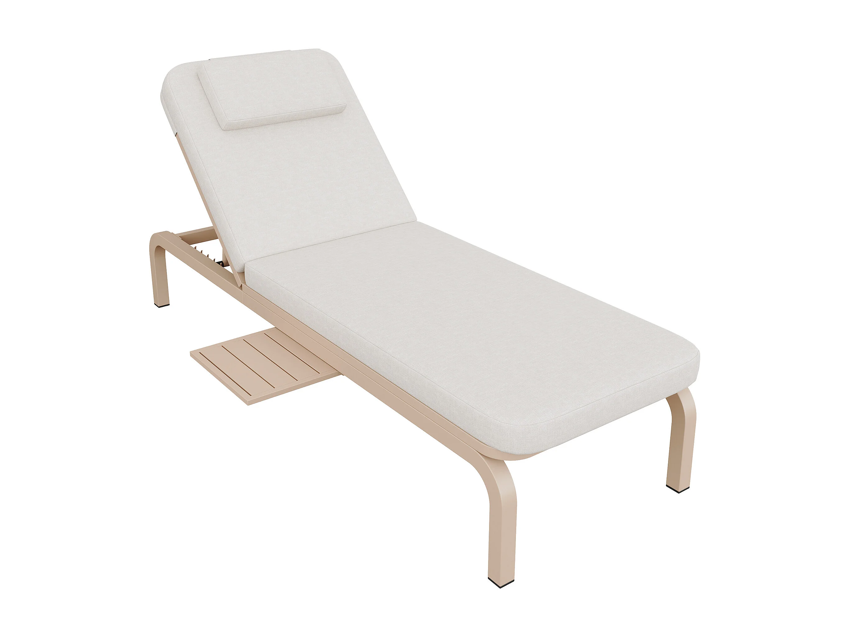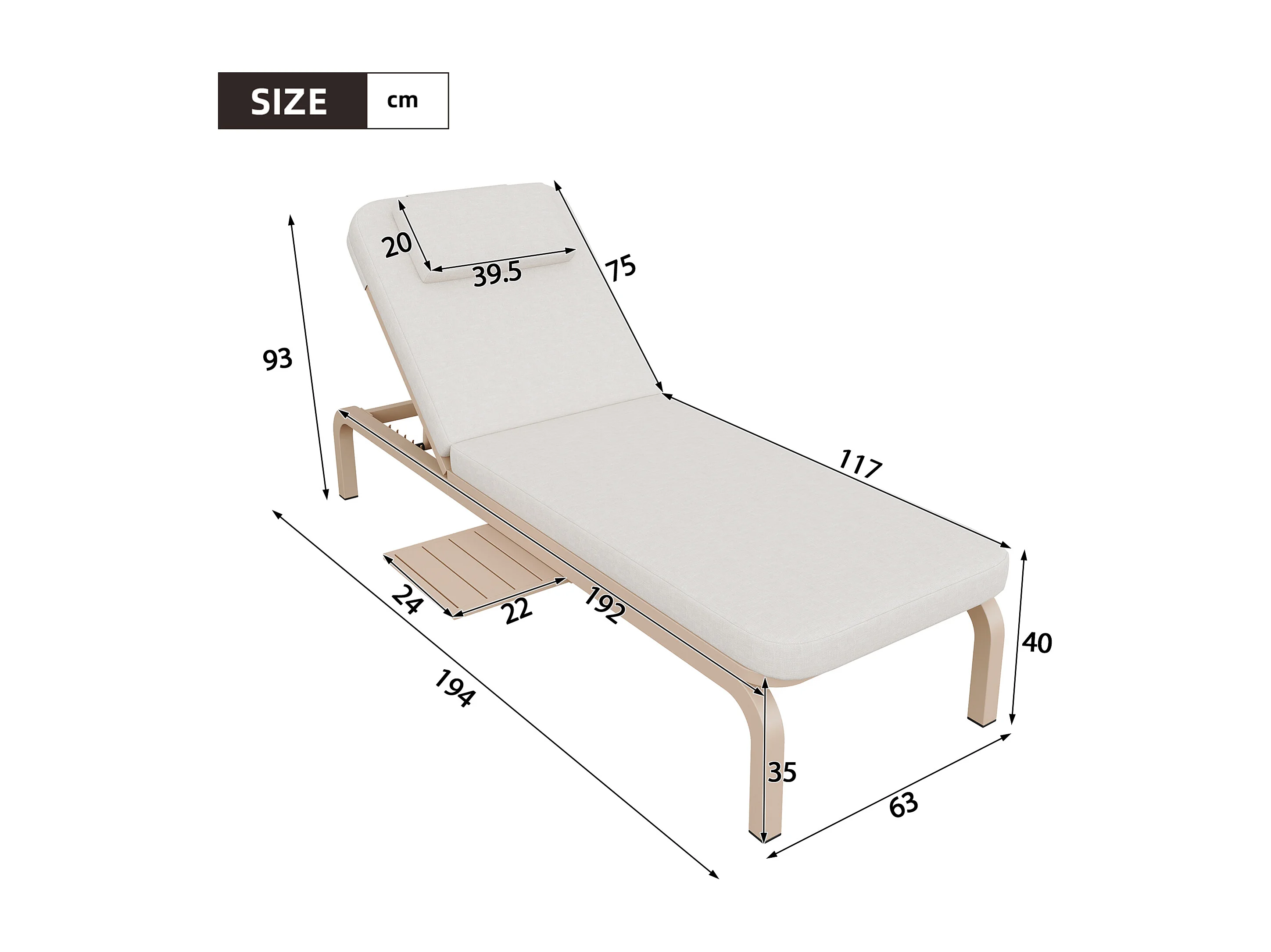 Leżak ogrodowy (1 szt.) - 194 x 63 x 93 cm - Łóżko dzienne ze stołem - Regulowane oparcie - Poliester - Beżowy
