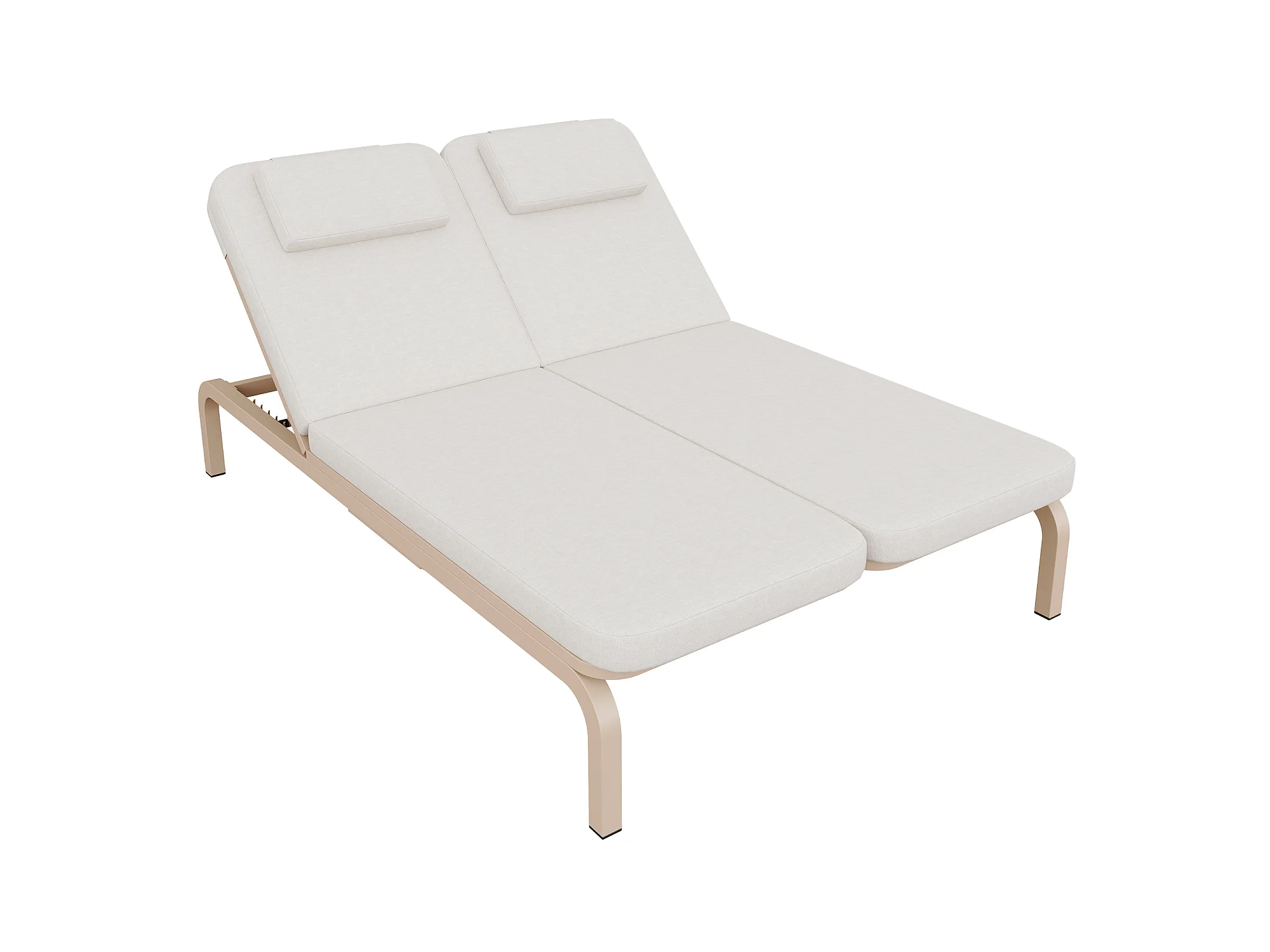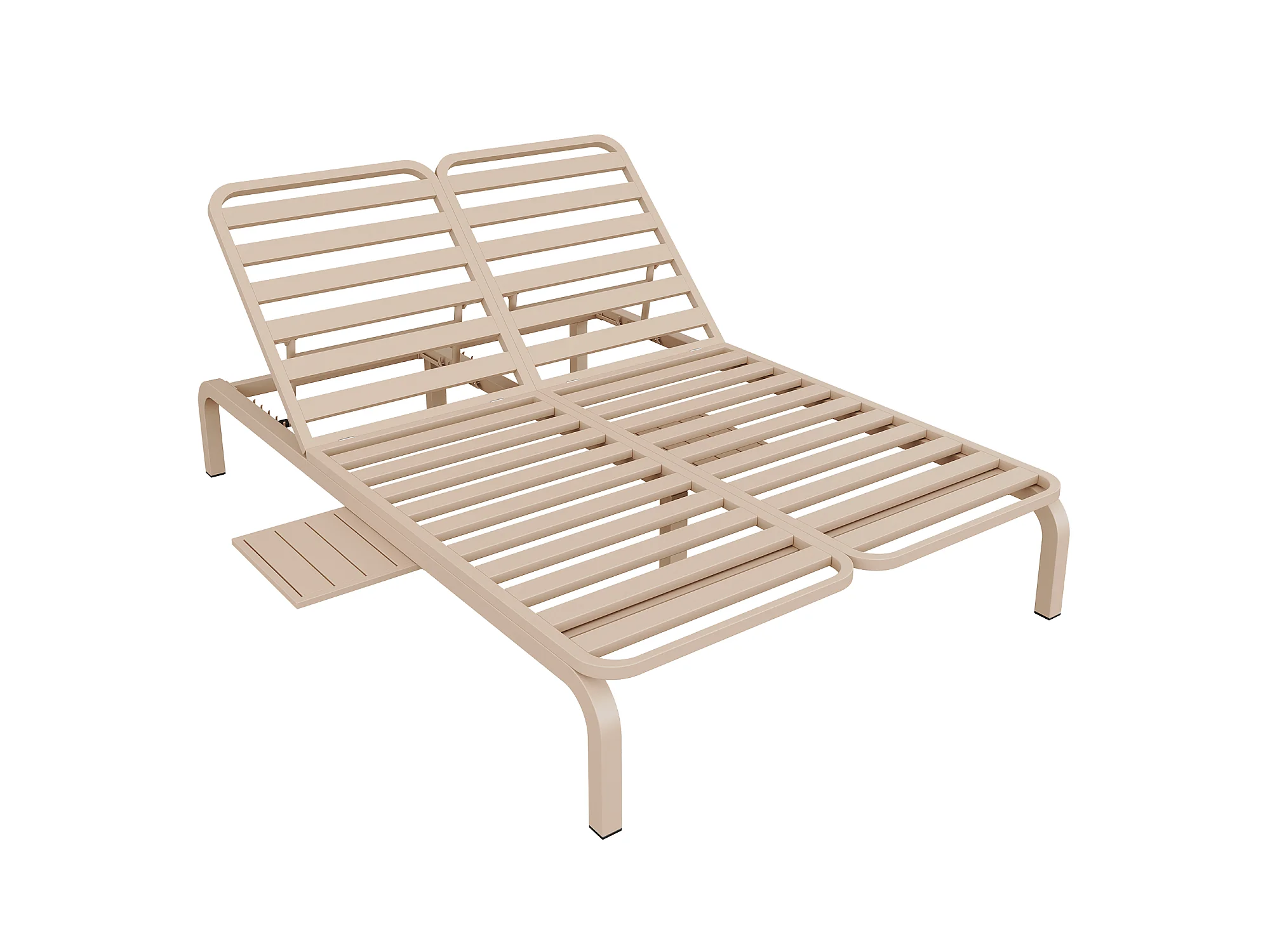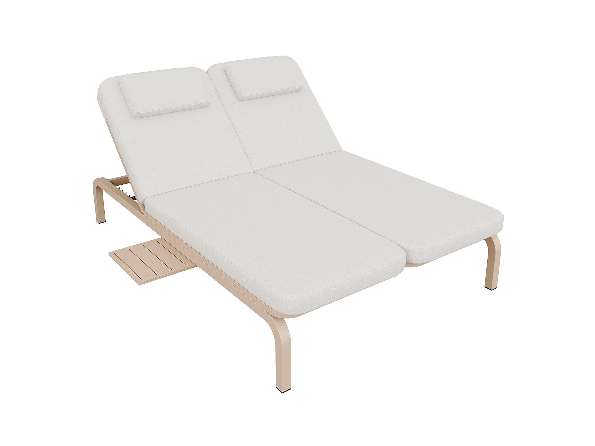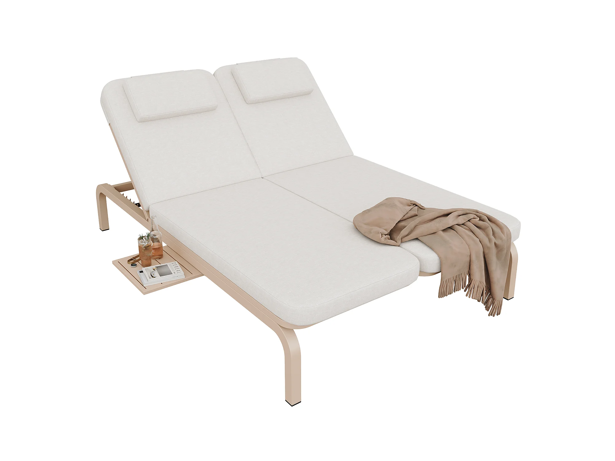 Leżak ogrodowy podwójny - regulowane oparcie (5 pozycji), z rozsuwanym stolikiem bocznym i zagłówkiem - Beżowy