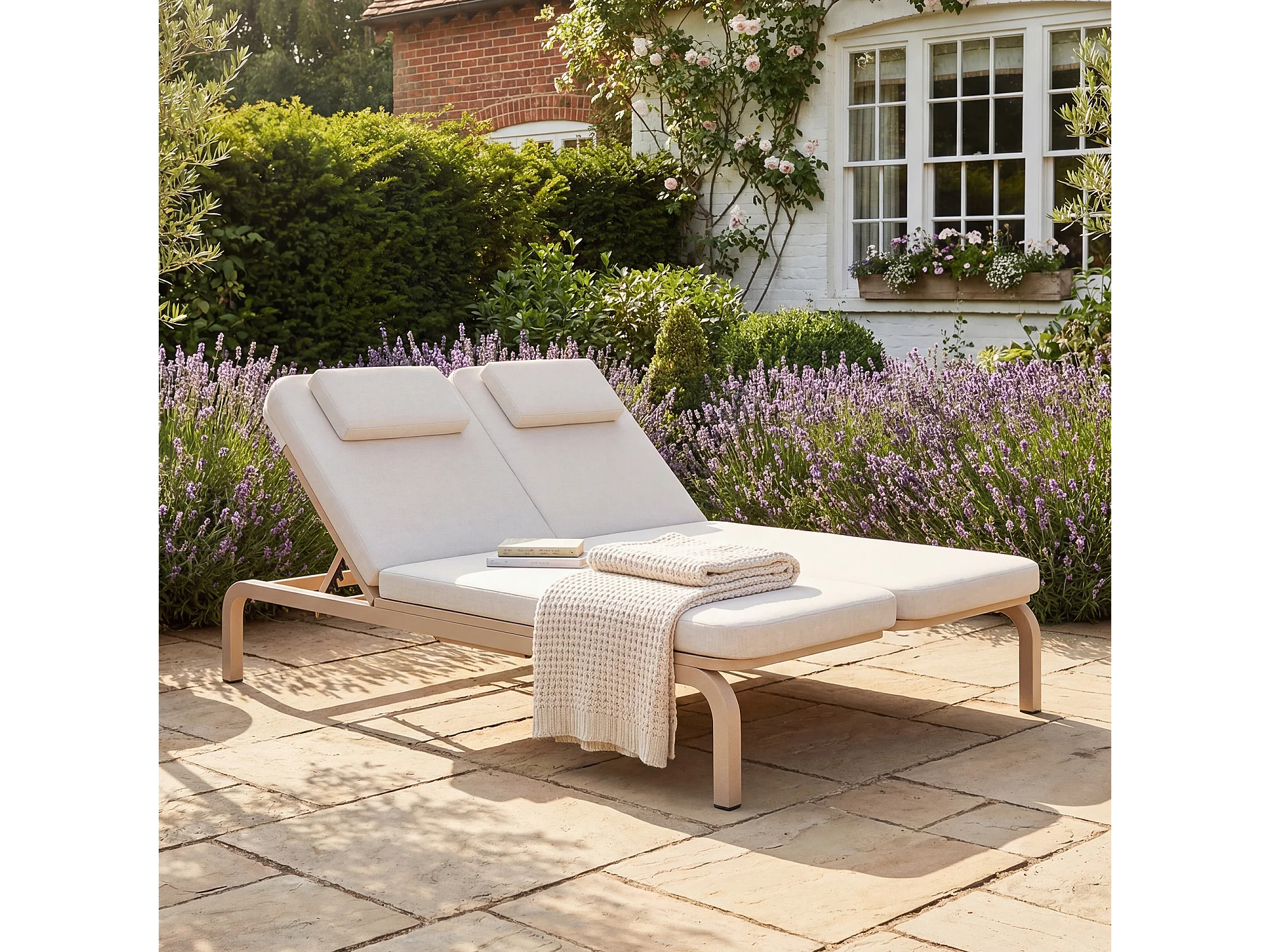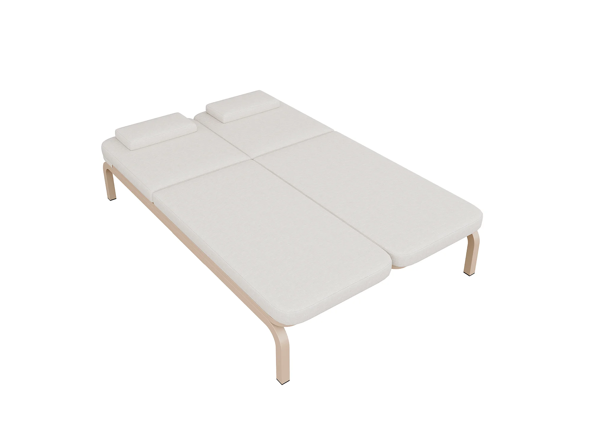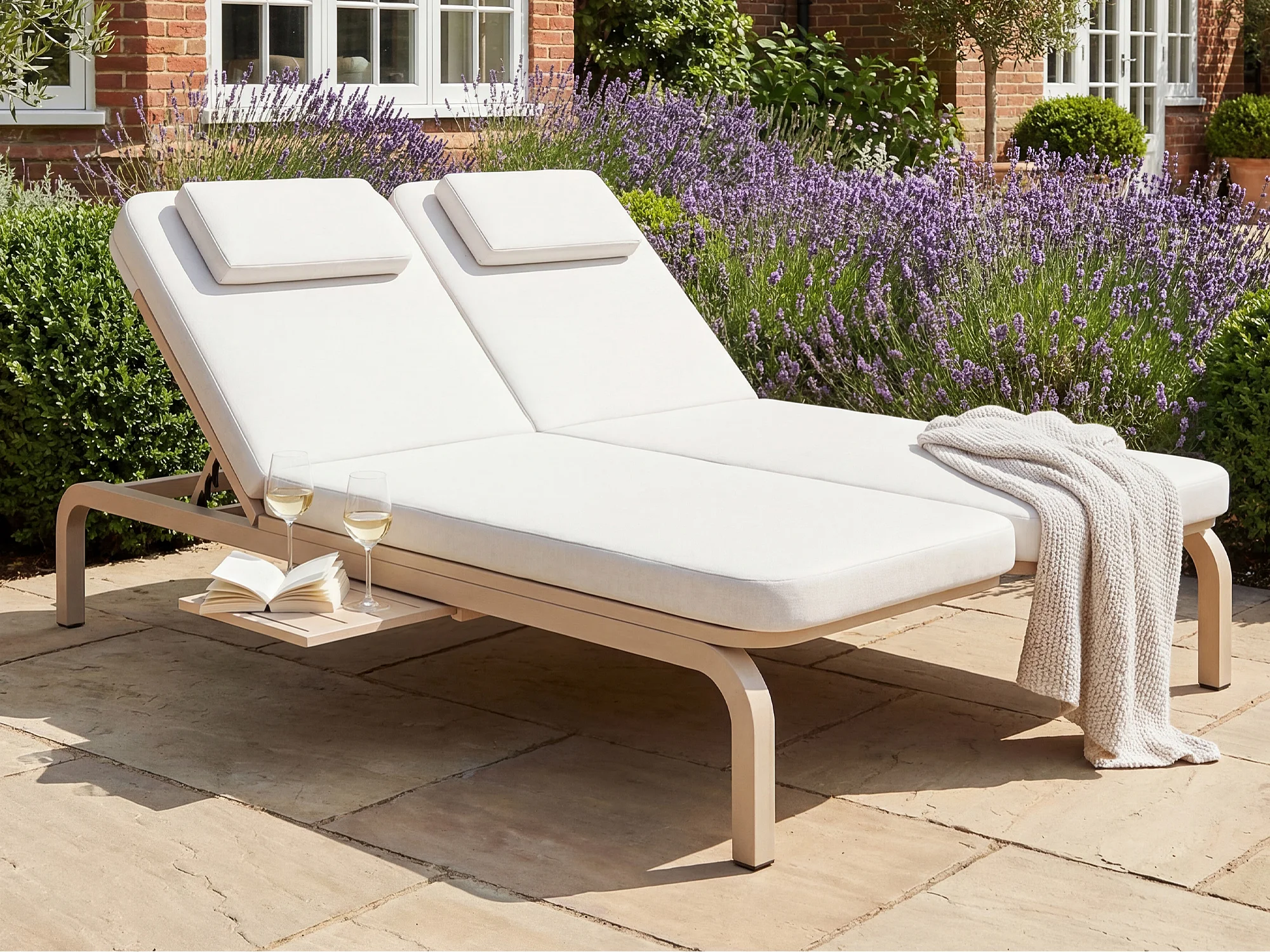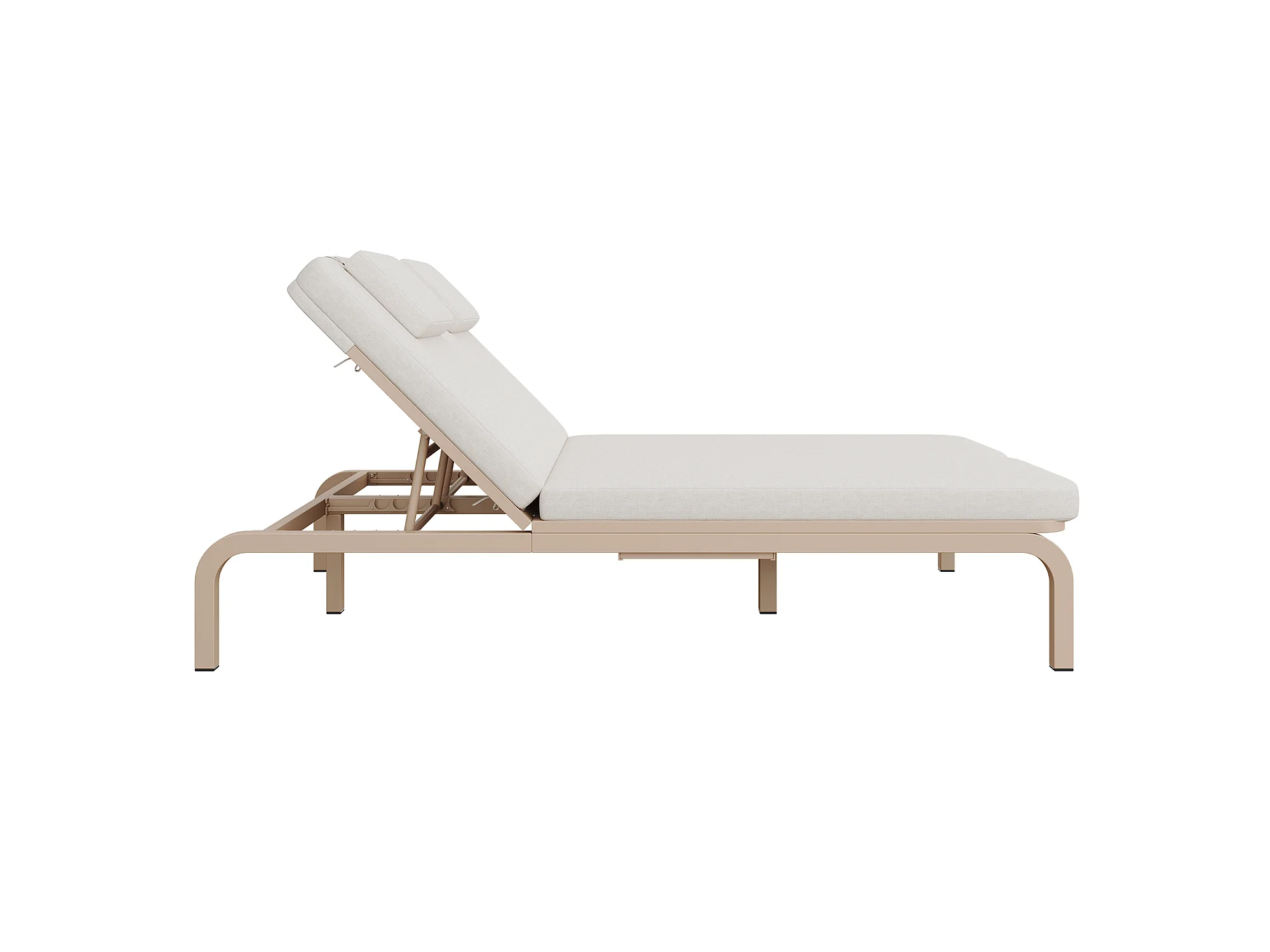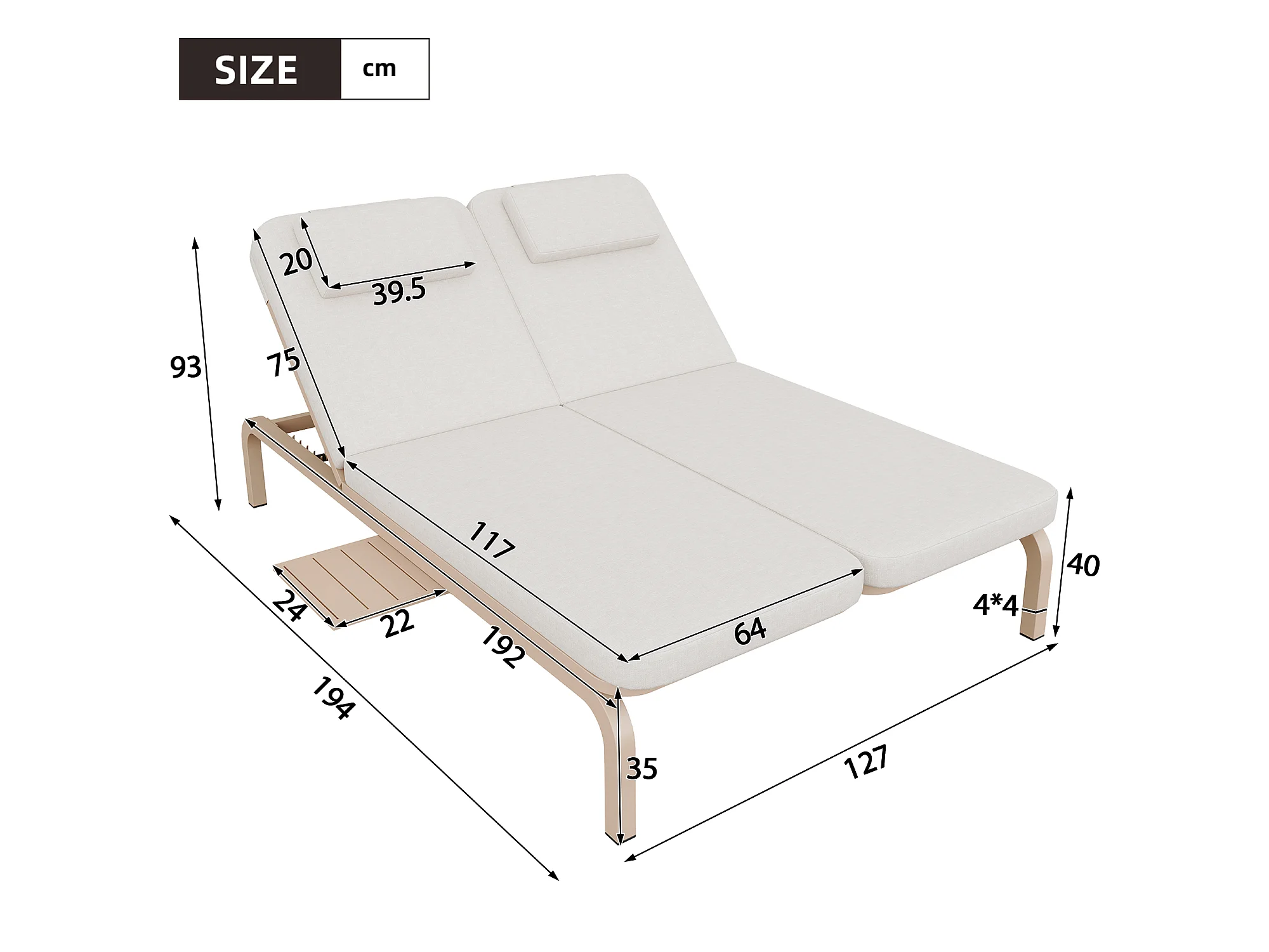 Leżak ogrodowy podwójny - regulowane oparcie (5 pozycji), z rozsuwanym stolikiem bocznym i zagłówkiem - Beżowy