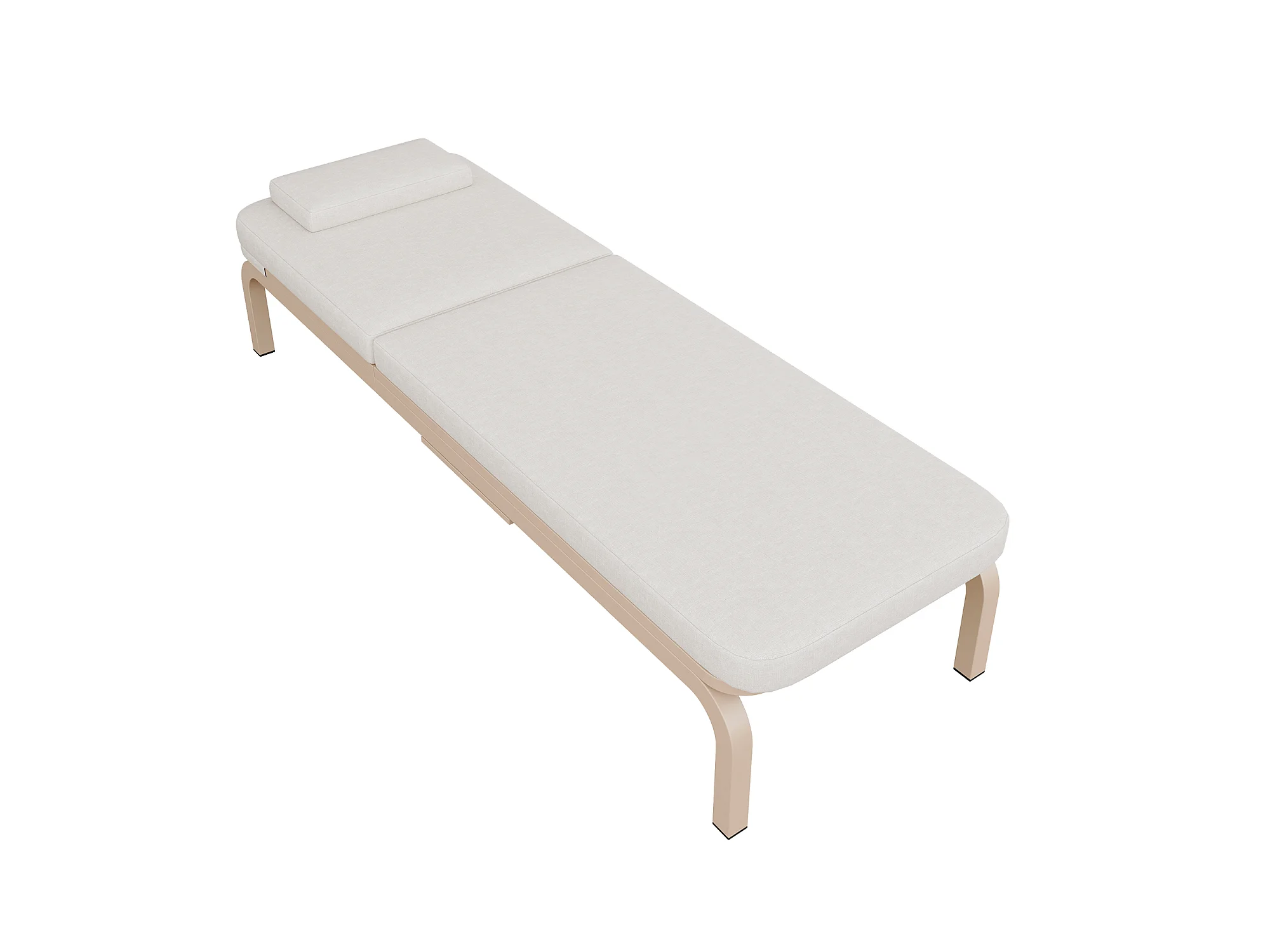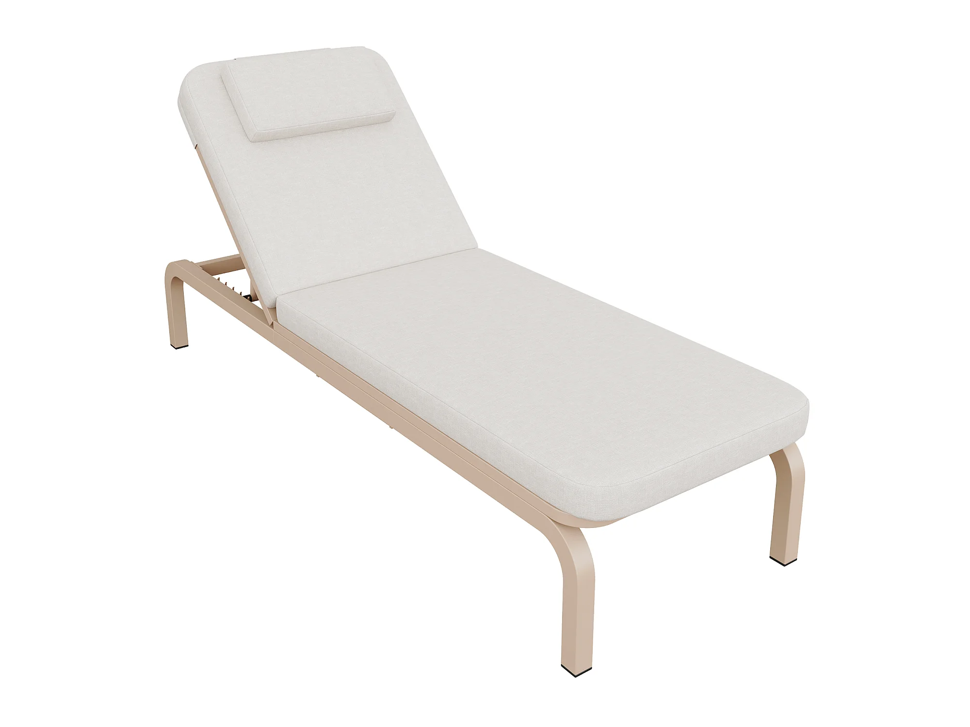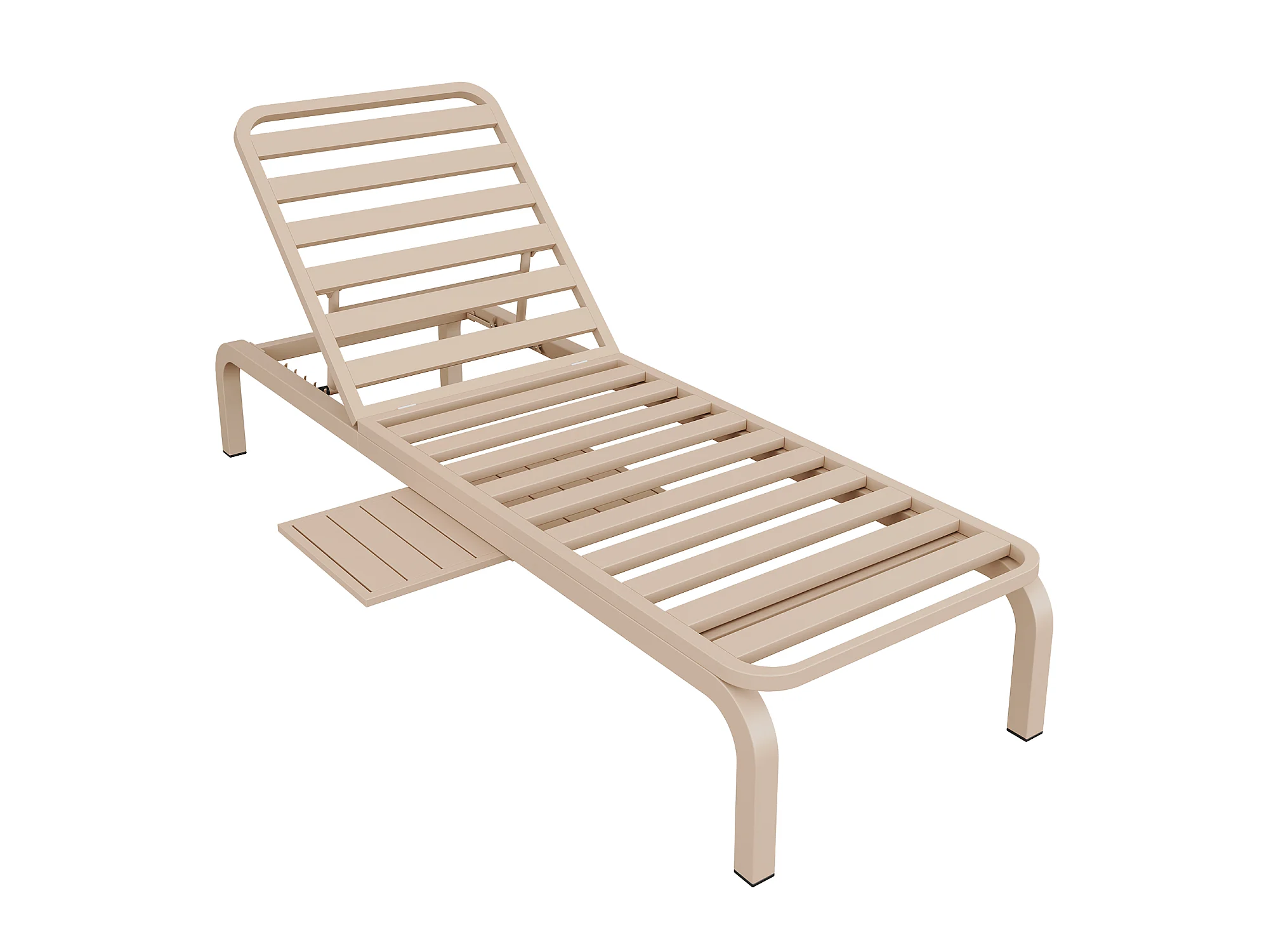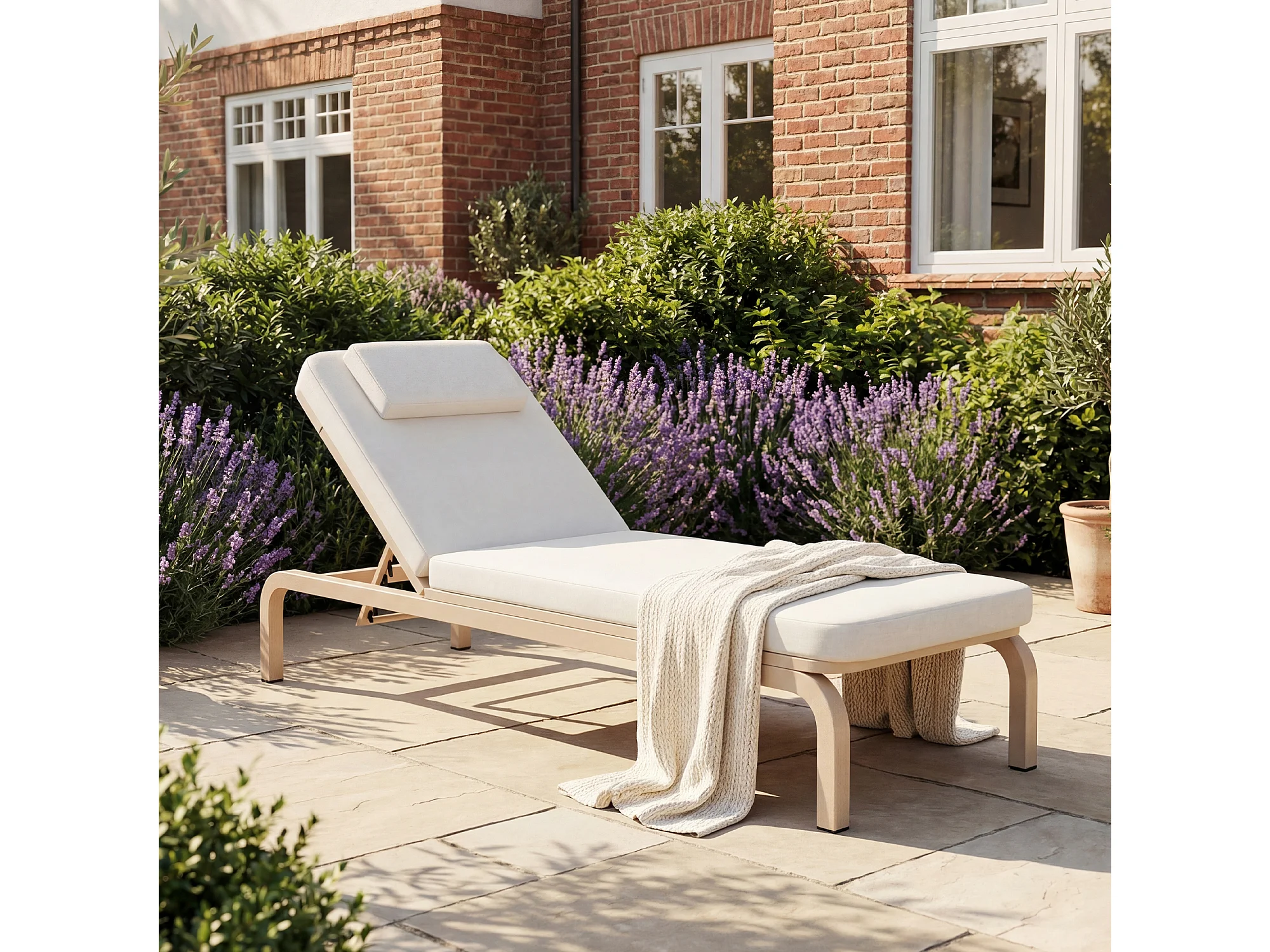 Leżak ogrodowy pojedynczy - regulowane oparcie (5 pozycji), z rozsuwanym stolikiem bocznym i zagłówkiem - Beżowy