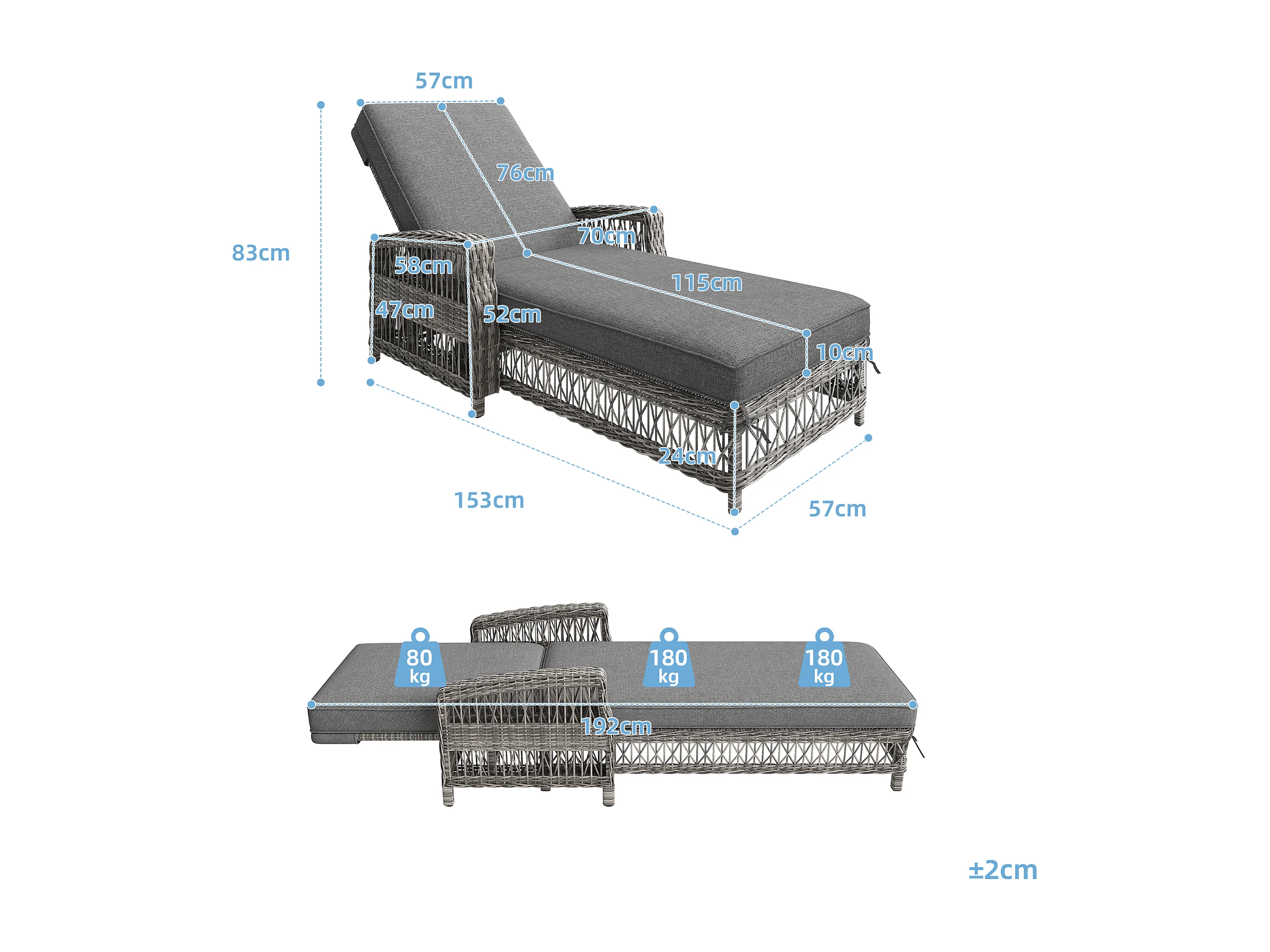 Leżak ogrodowy MCW-D80, antracyt, beżowe poduszki