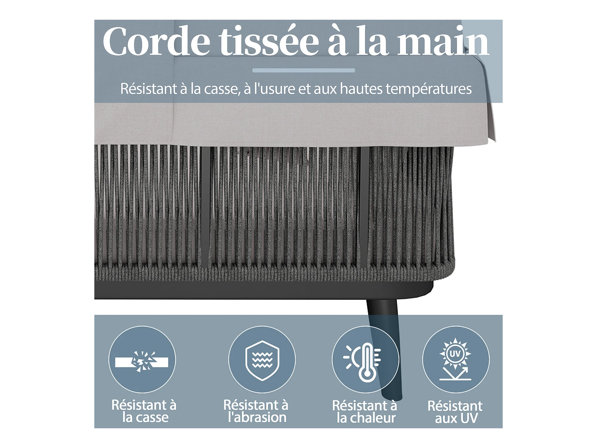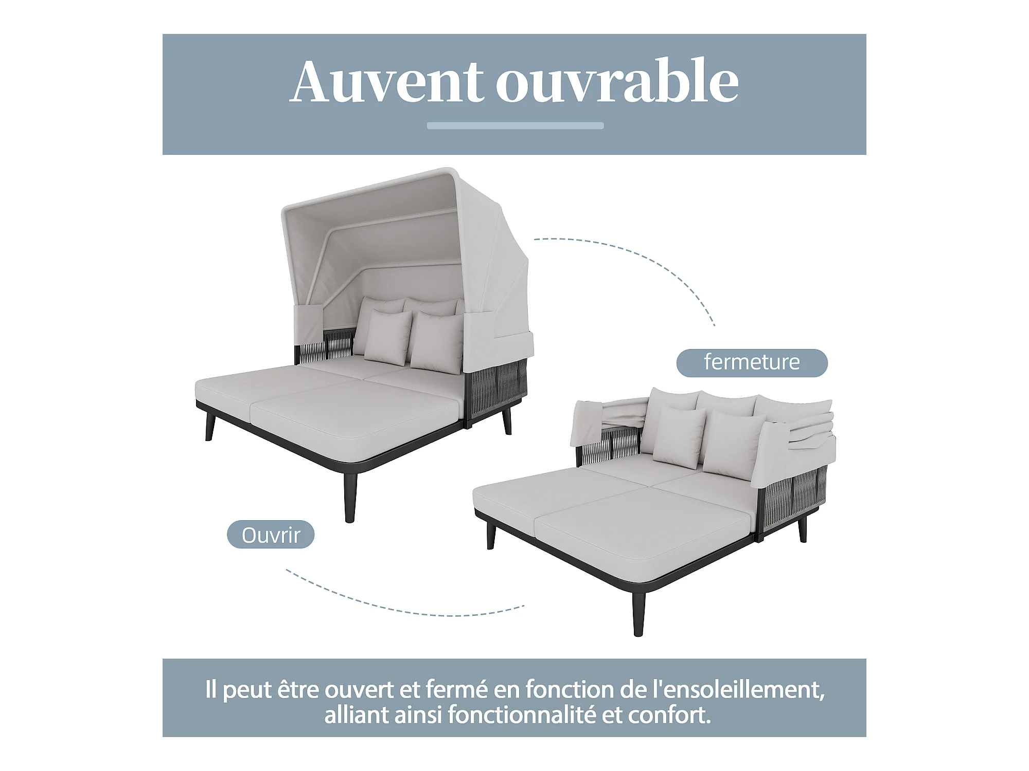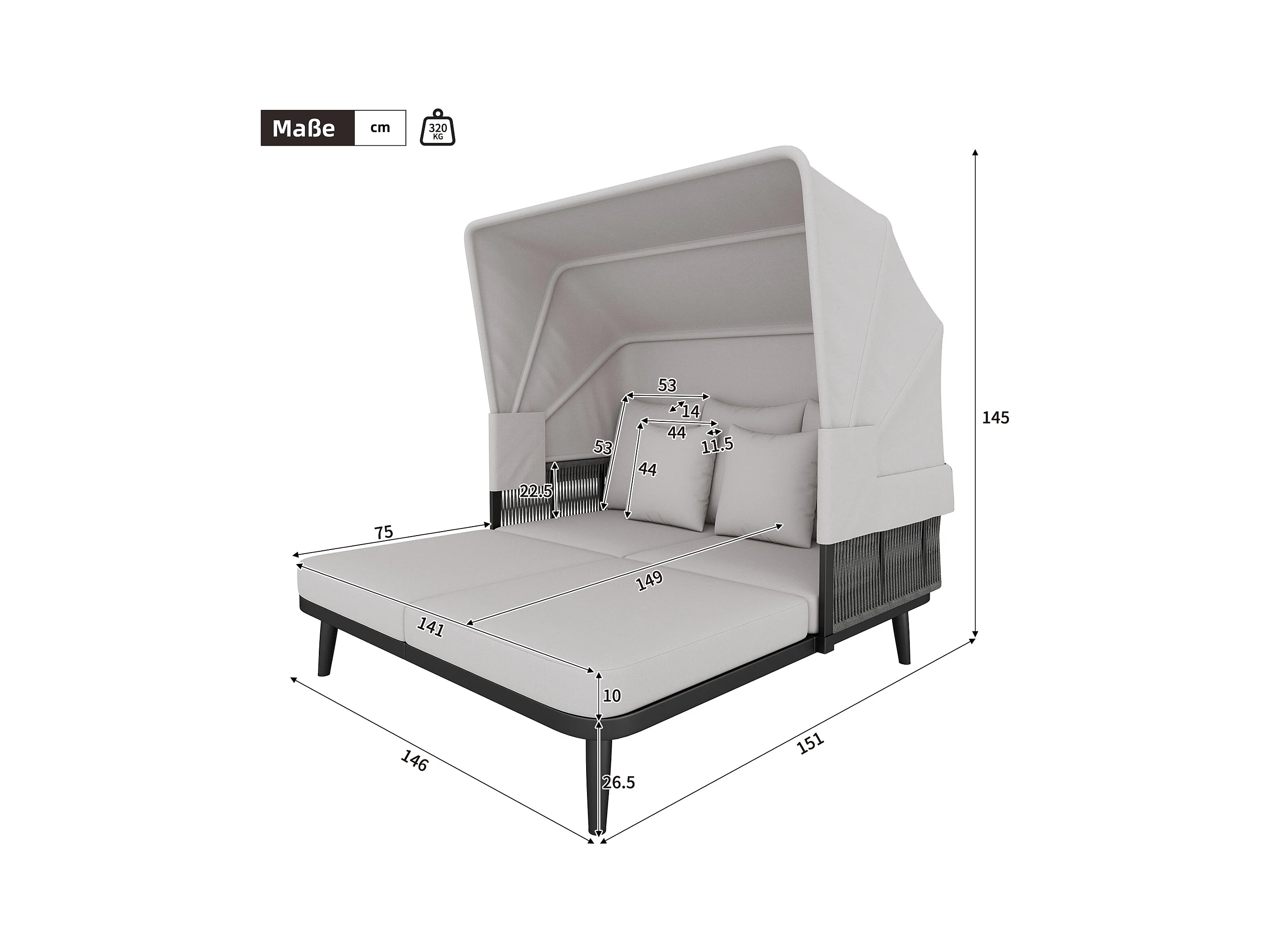 Leżak - Zestaw ogrodowy - kanapa ogrodowa - ze stali ocynkowanej - 2 miejsca - z regulowanym daszkiem - Szary