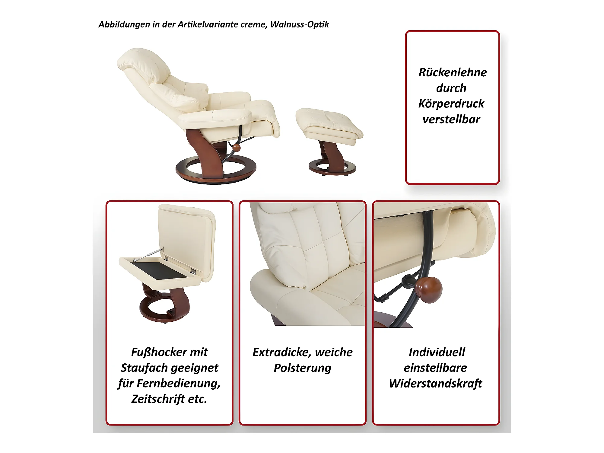 Leżanka Windsor XXL z taboretem, czarny, orzechowy wygląd