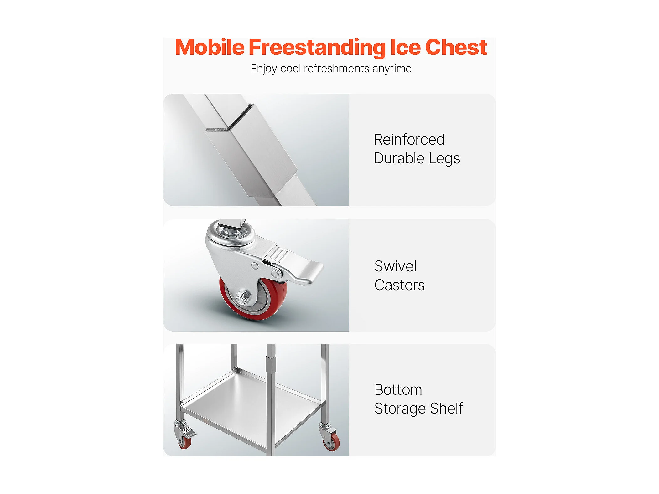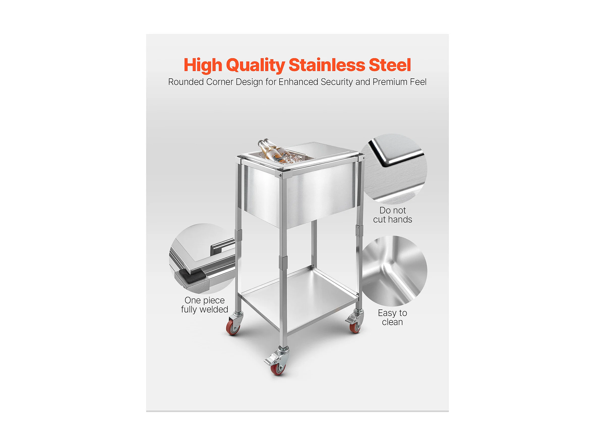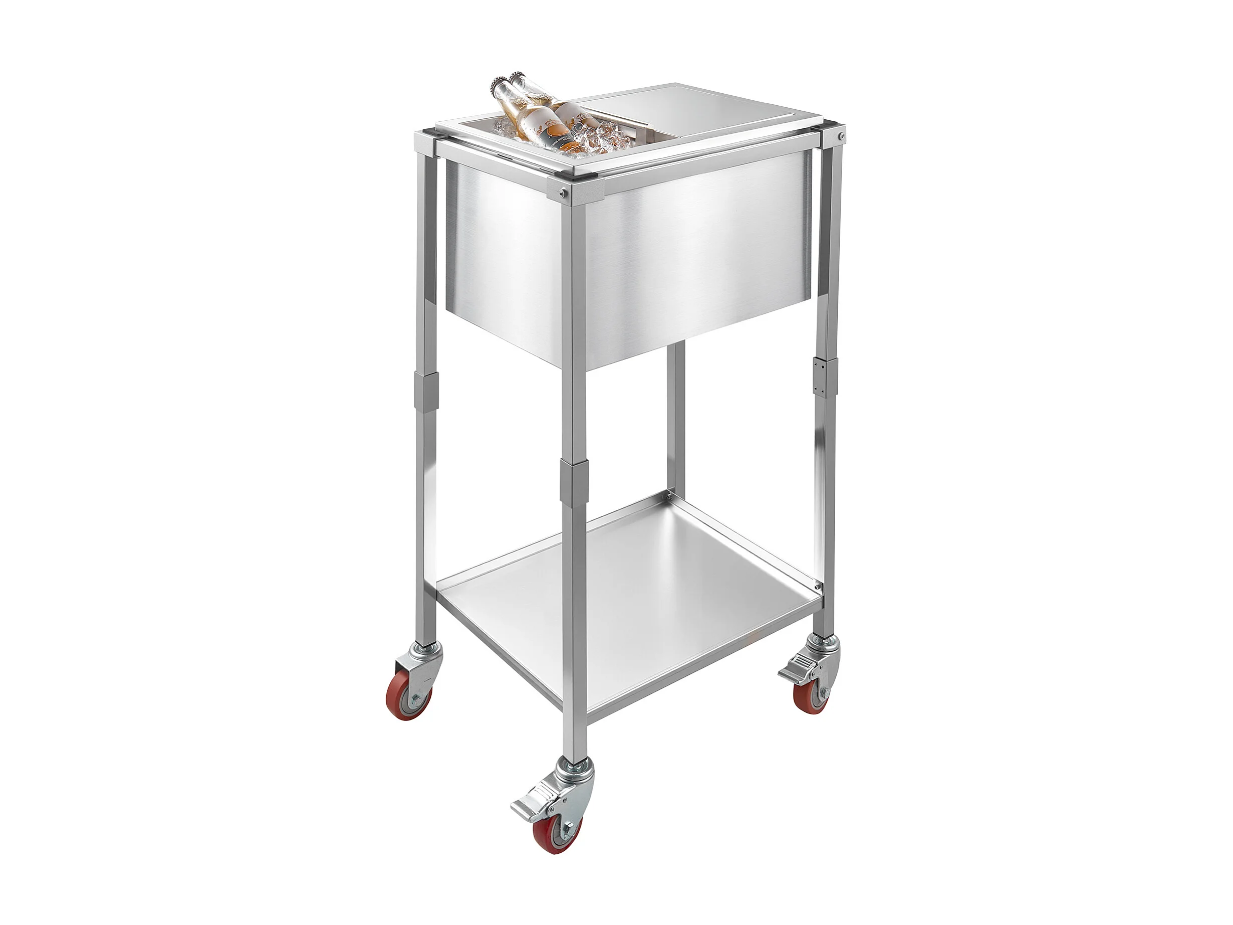 Lodówka na Kółkach SucceBuy, 51 x 36 x 97 cm, Stal Nierdzewna, Wbudowany Pojemnik na Lód z Półką, 28 L, na Patio, do Ogrodu, Baru, Restauracji