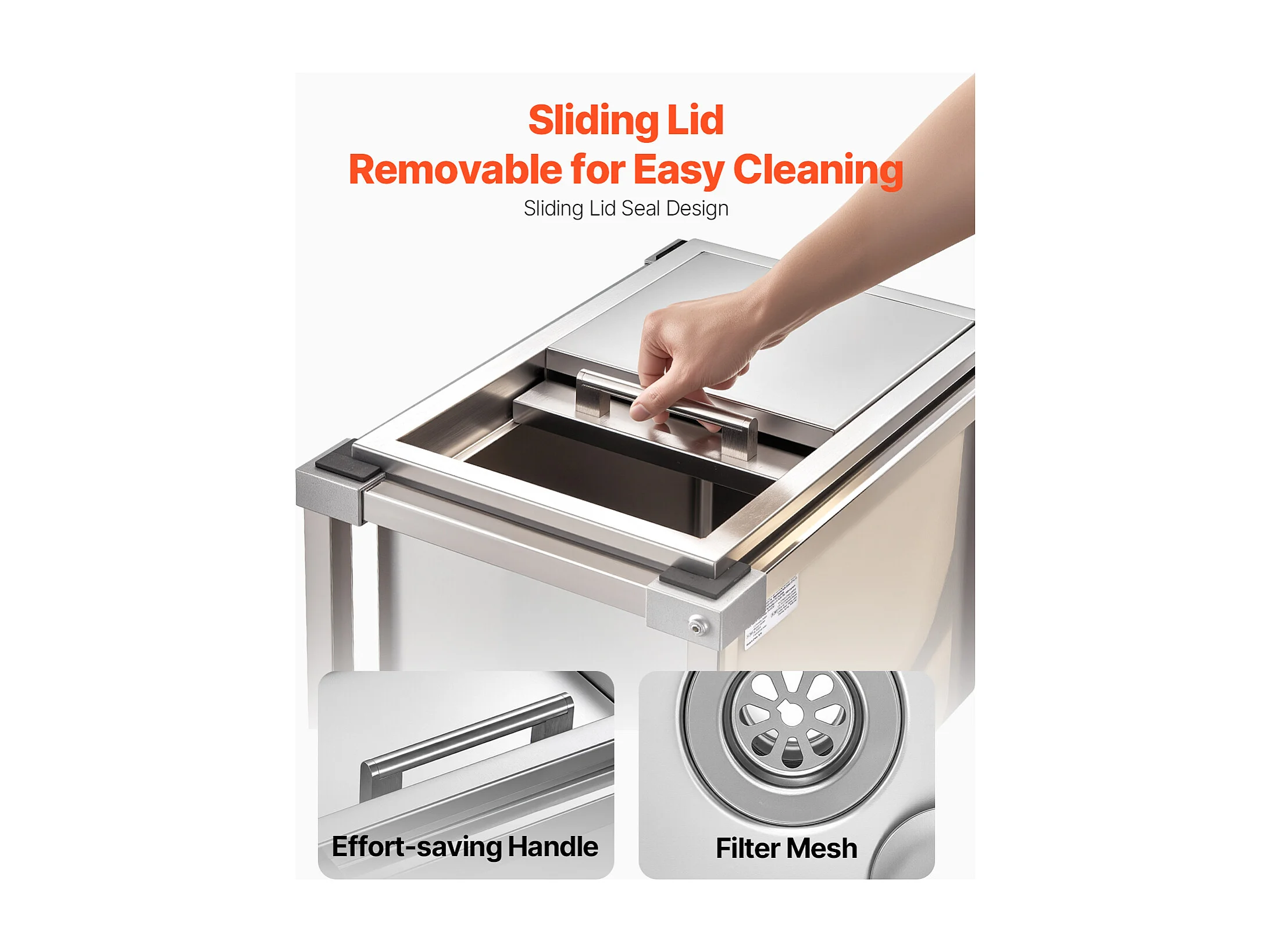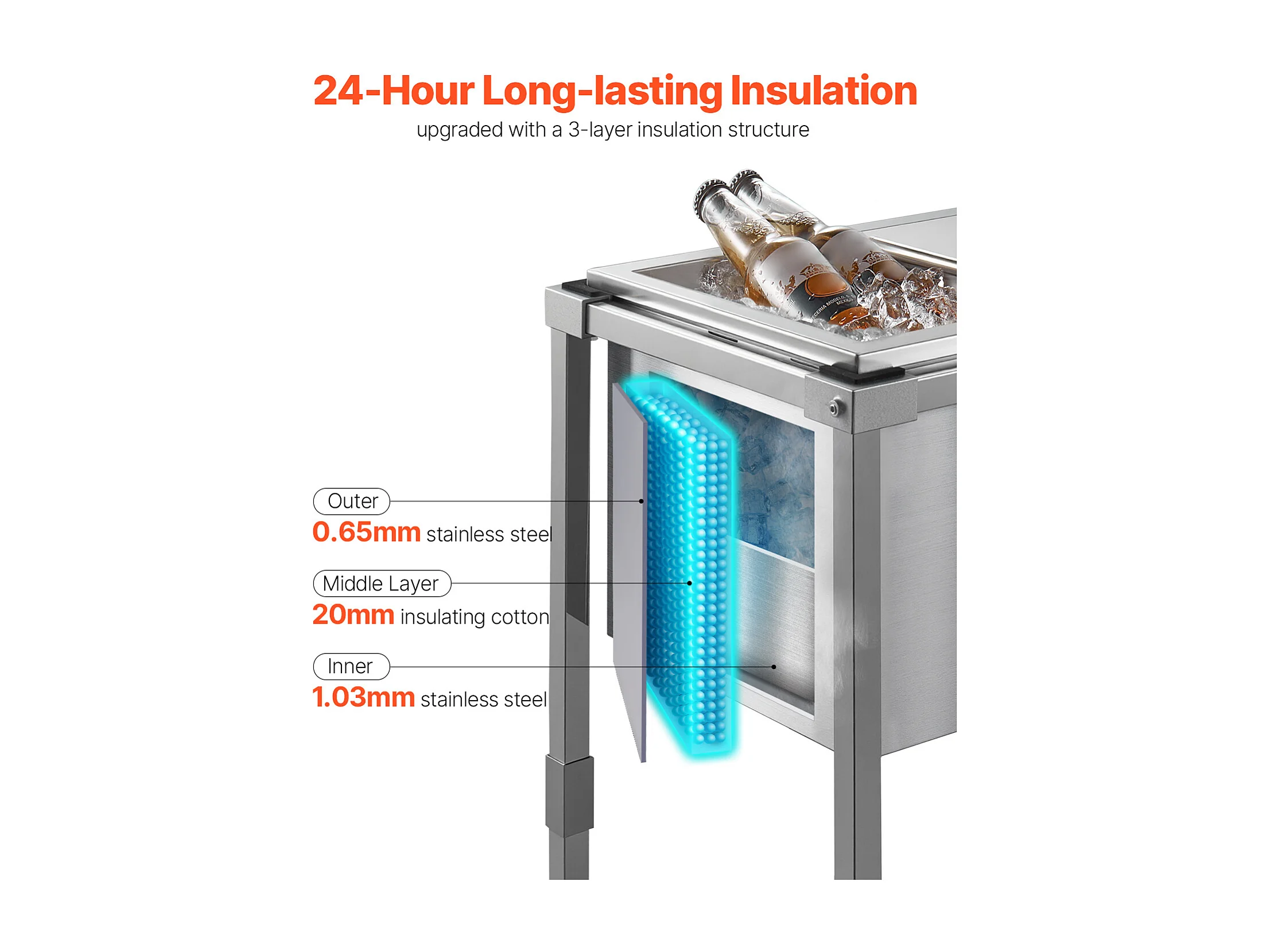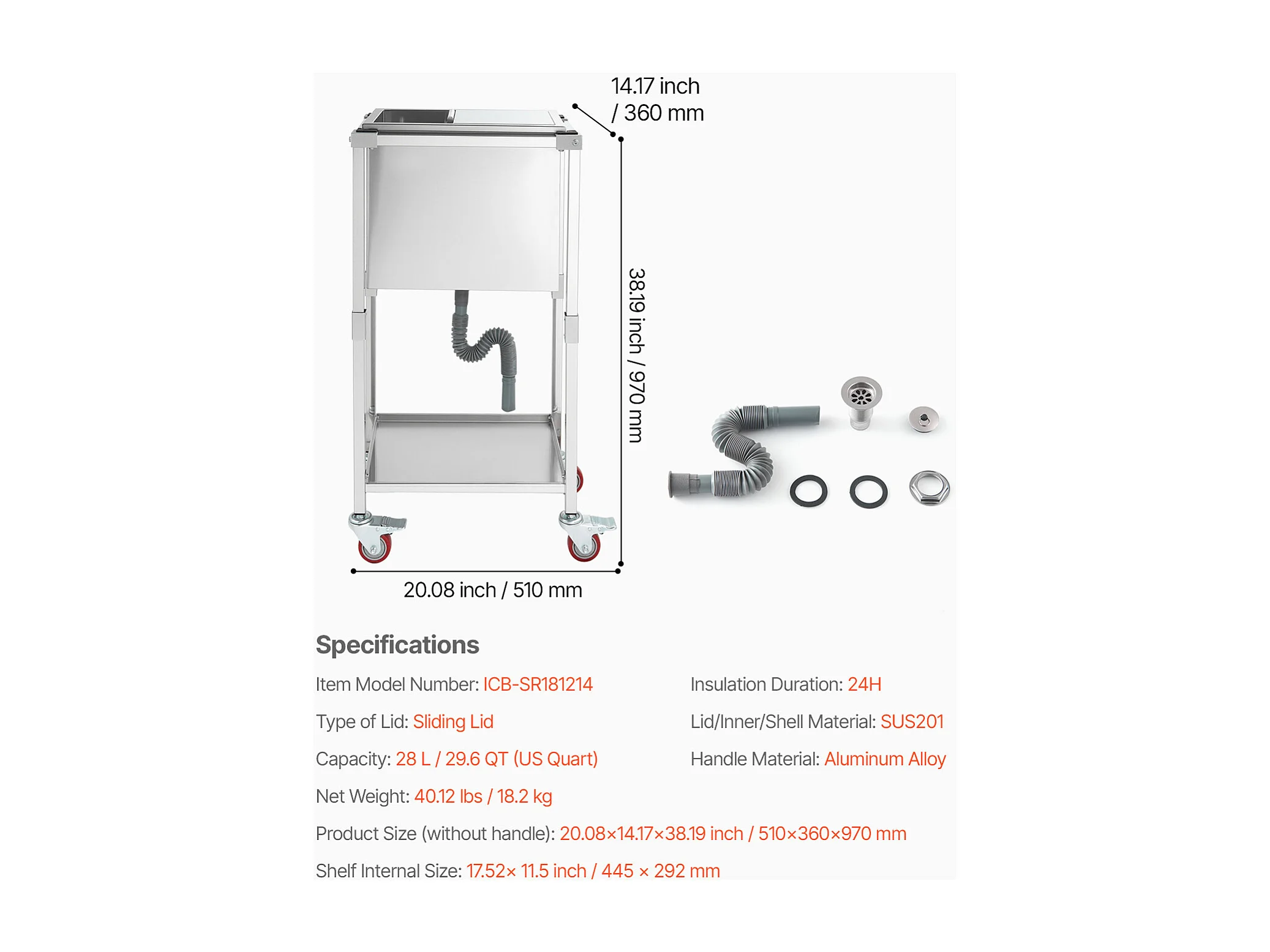 Lodówka na Kółkach SucceBuy, 51 x 36 x 97 cm, Stal Nierdzewna, Wbudowany Pojemnik na Lód z Półką, 28 L, na Patio, do Ogrodu, Baru, Restauracji